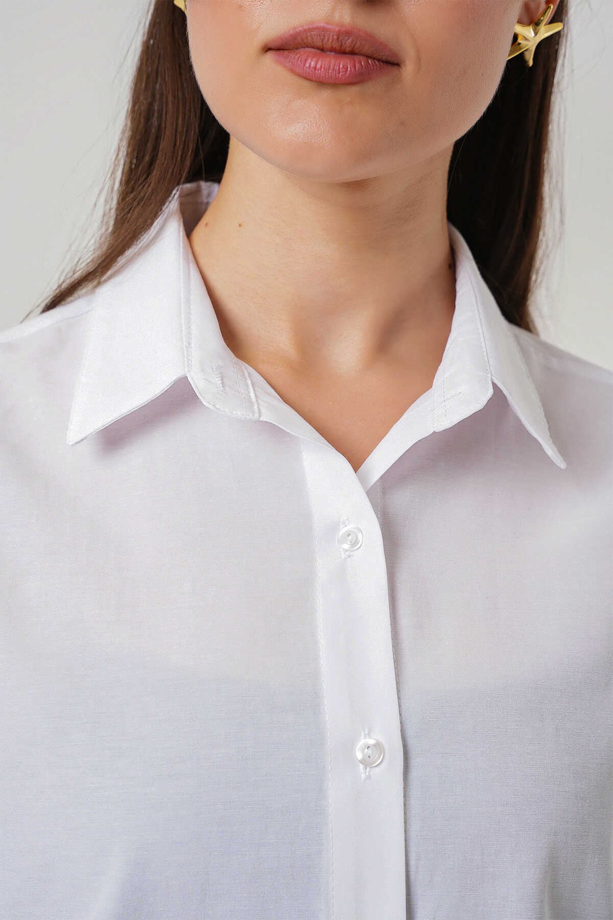 Kadın Uzun Kol Basic Gömlek 20279 - Beyaz