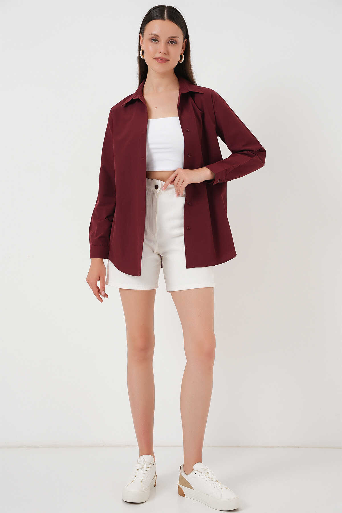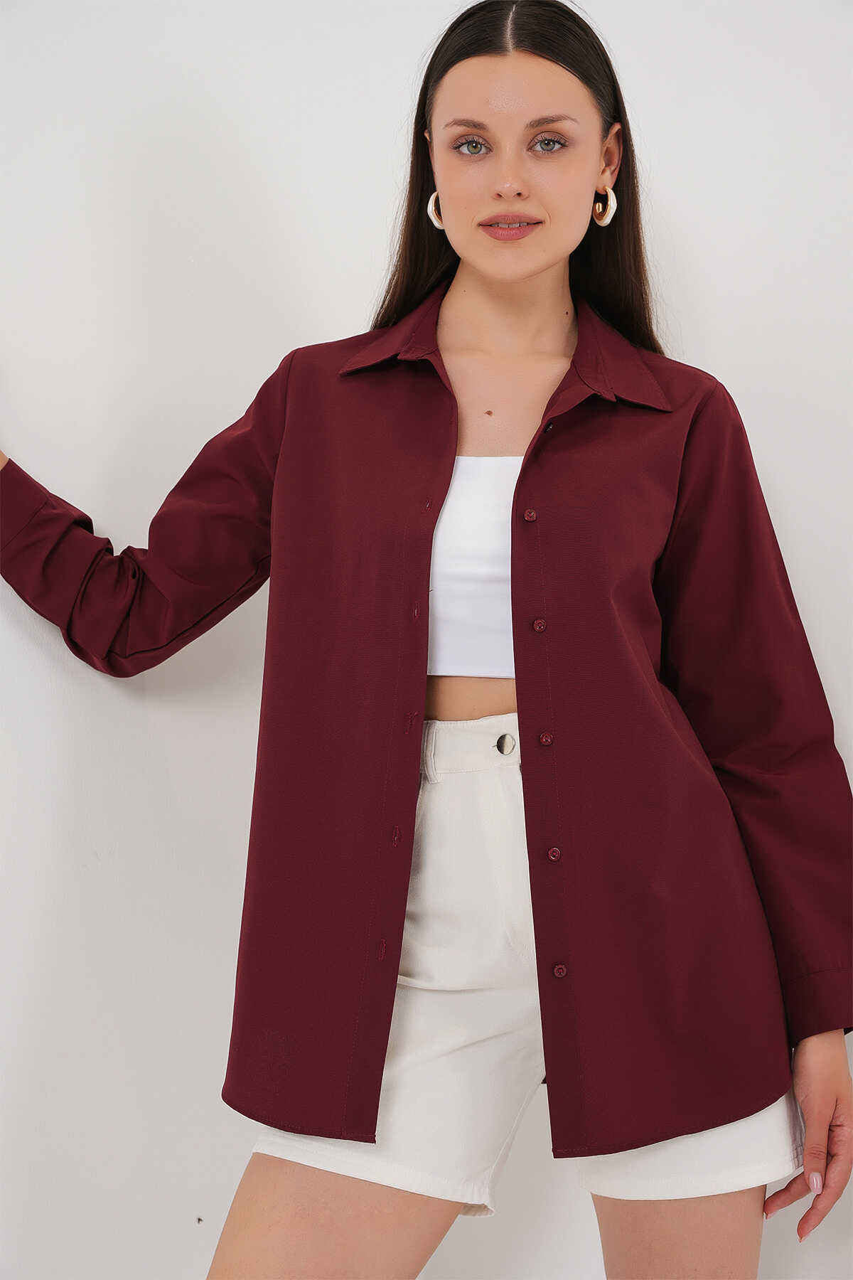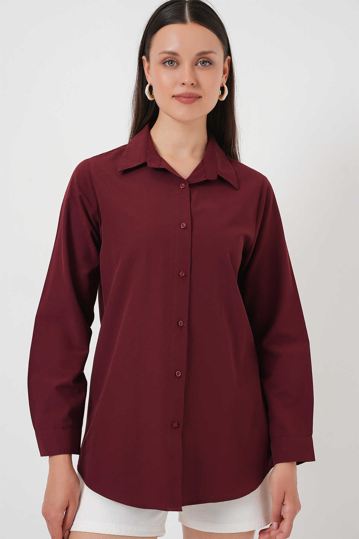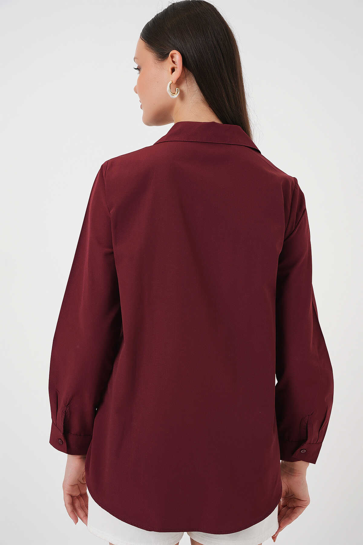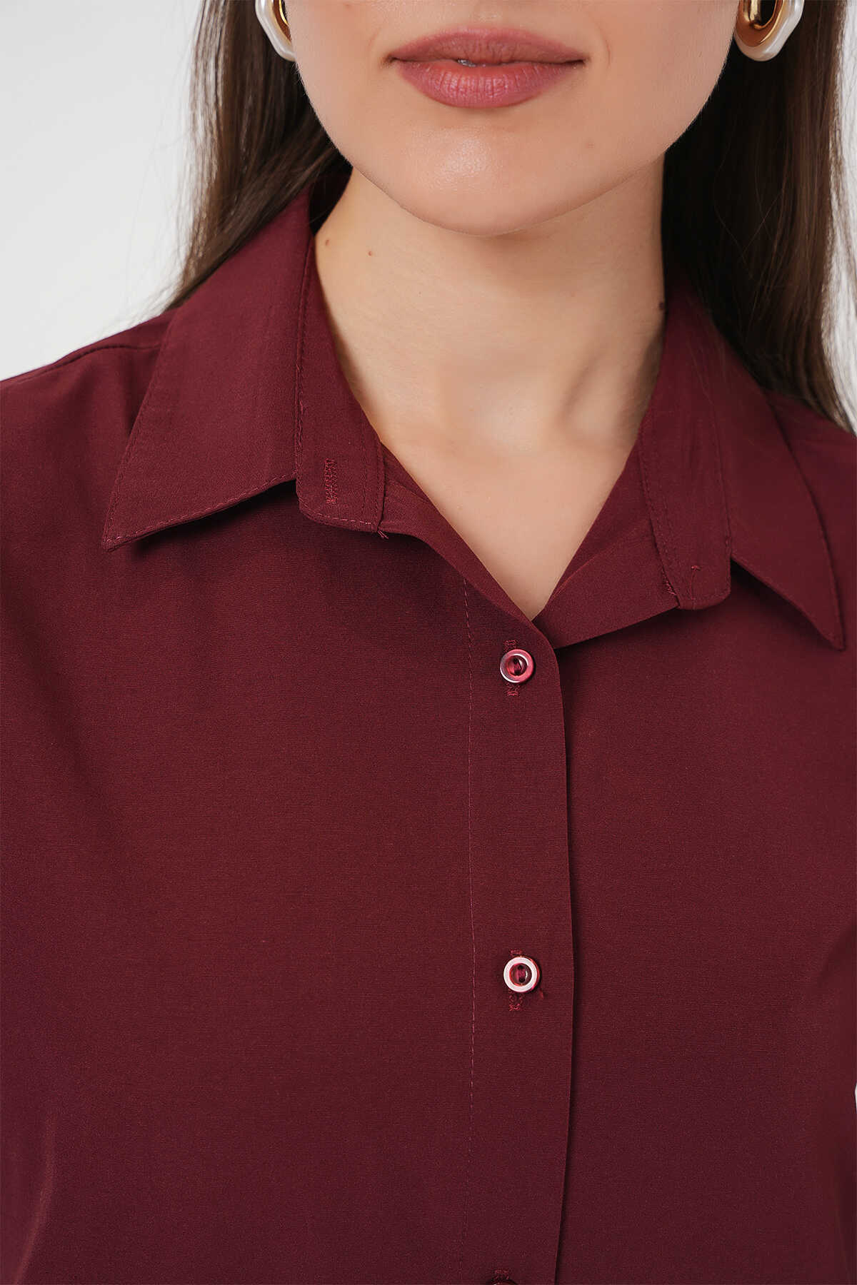 Kadın Uzun Kol Basic Gömlek 20279 - Bordo - Kombin