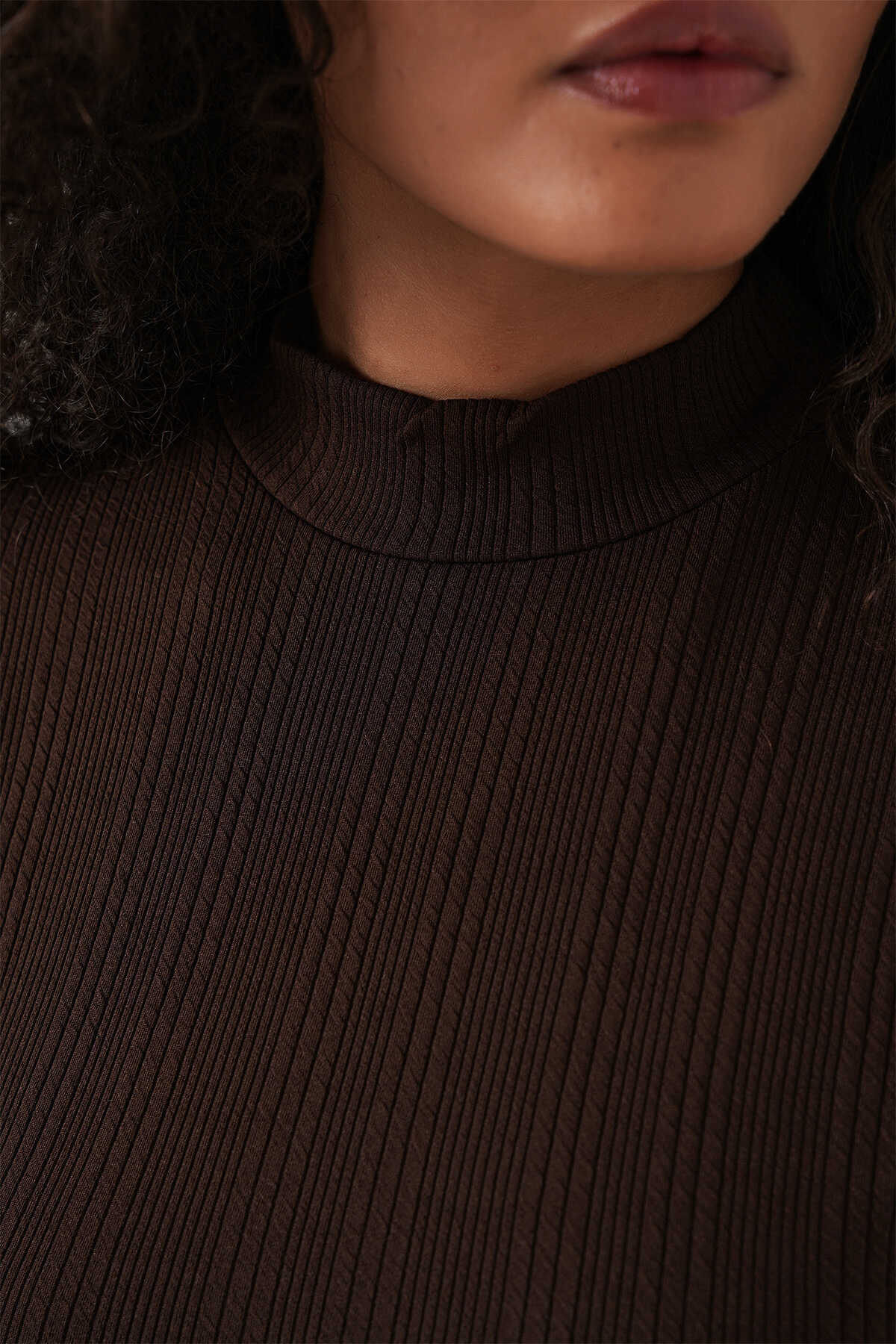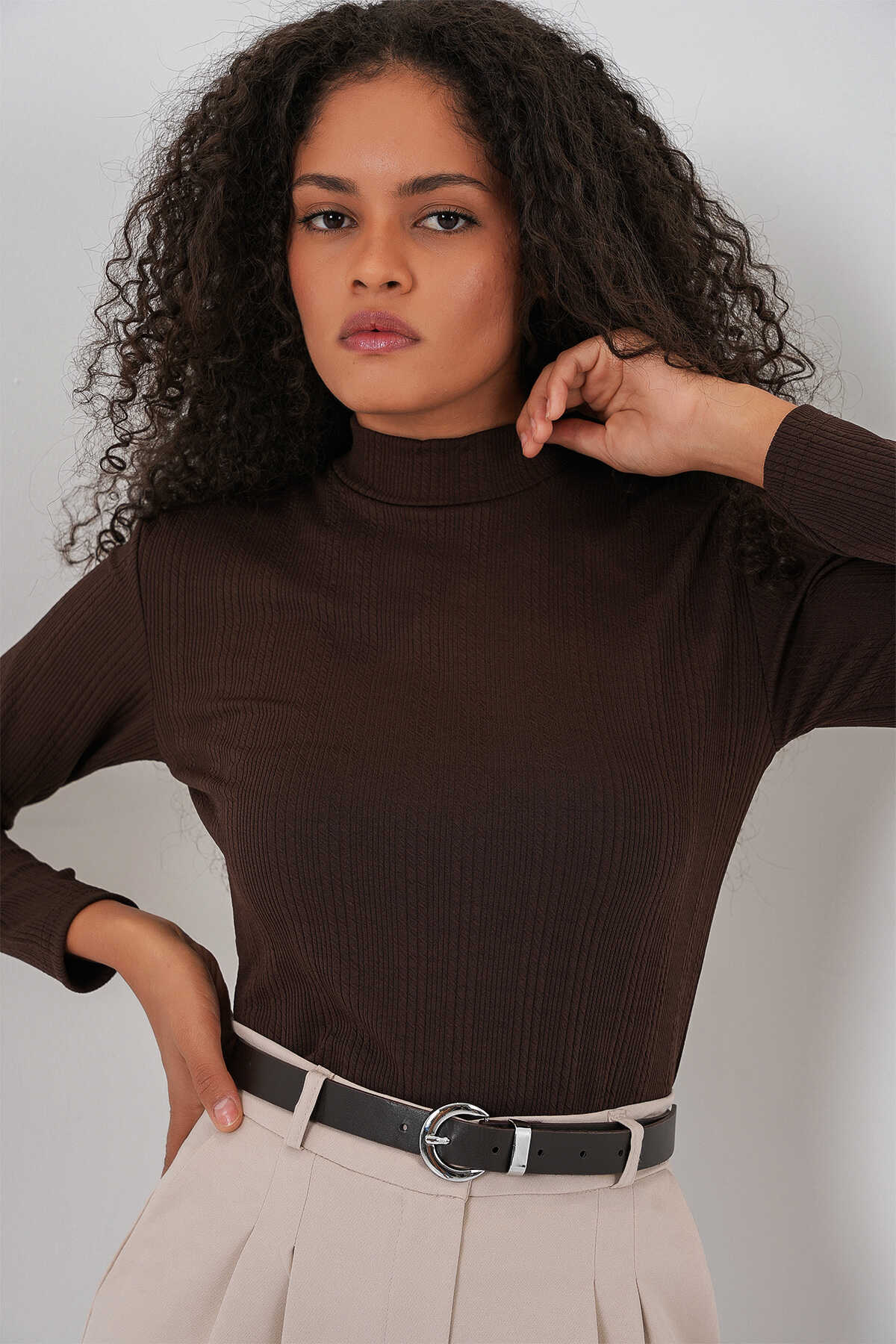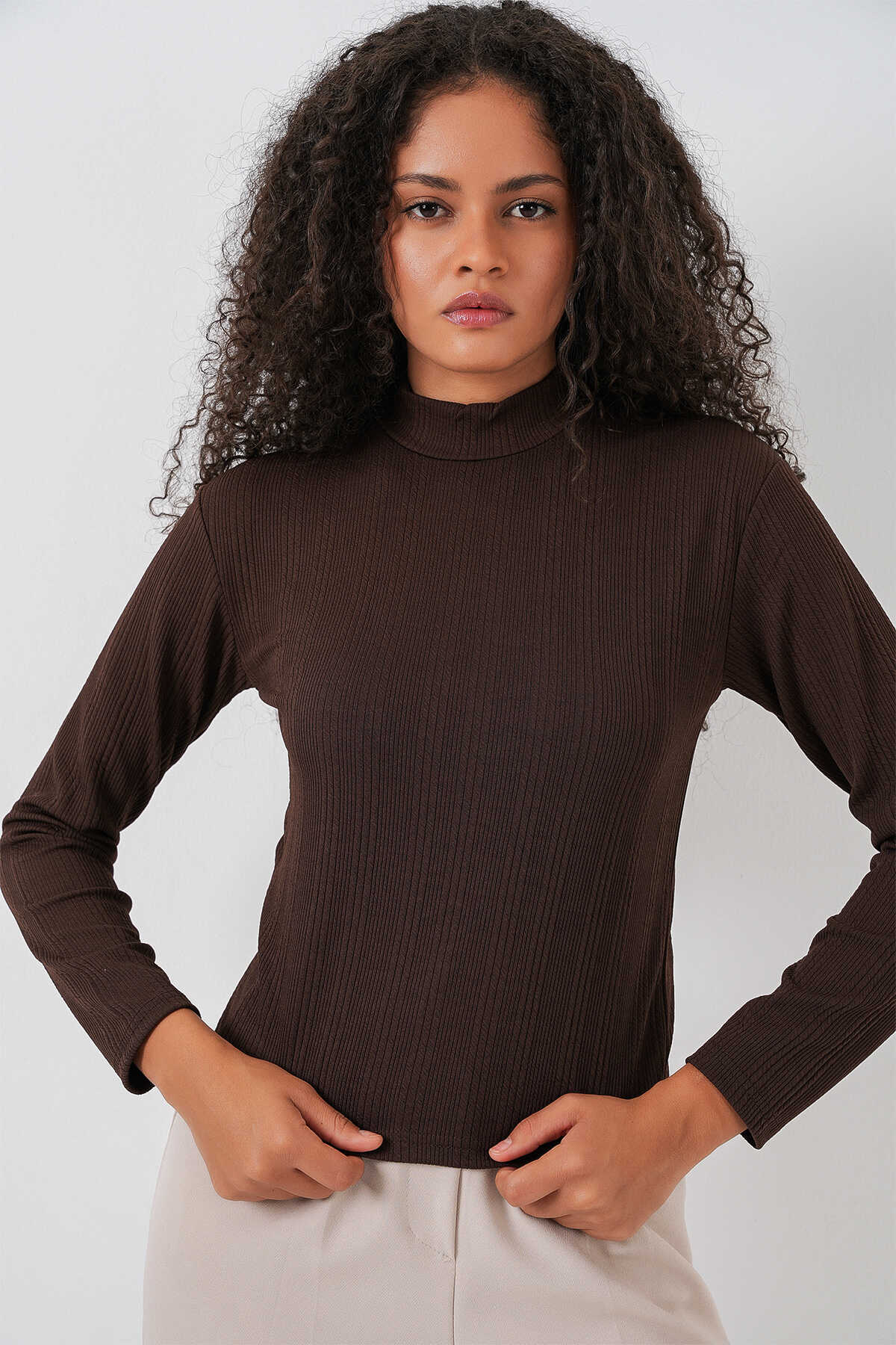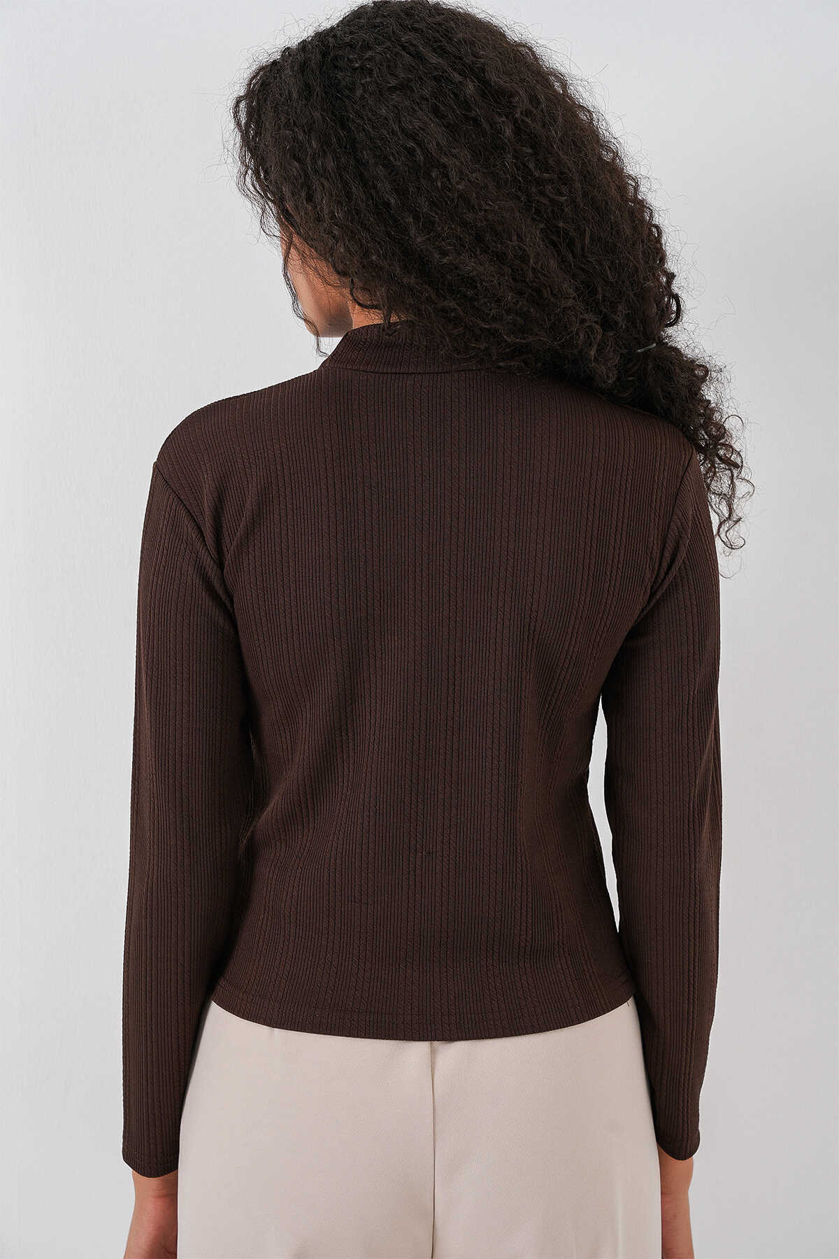 Kadın Uzun Kollu Fitilli Body 976 - Kahverengi - Kombin