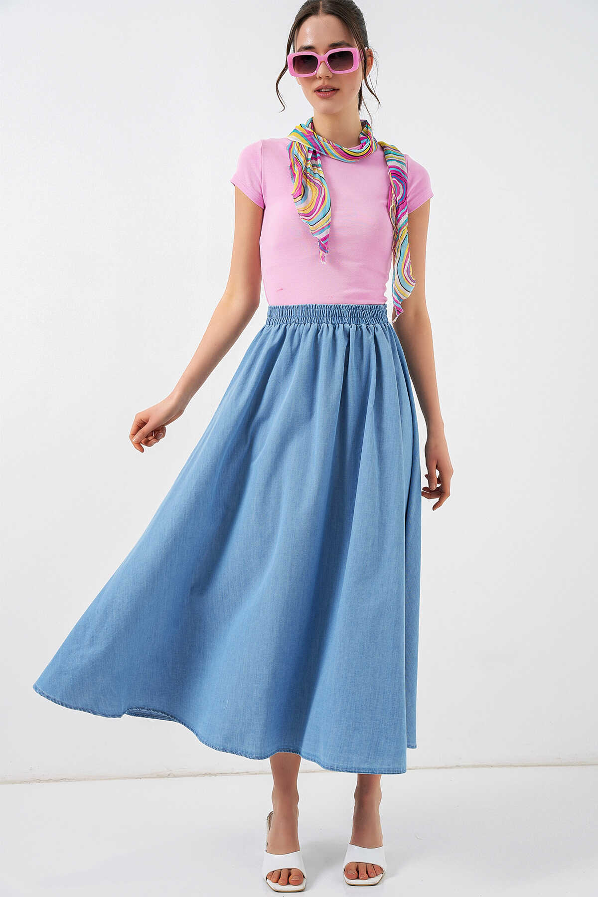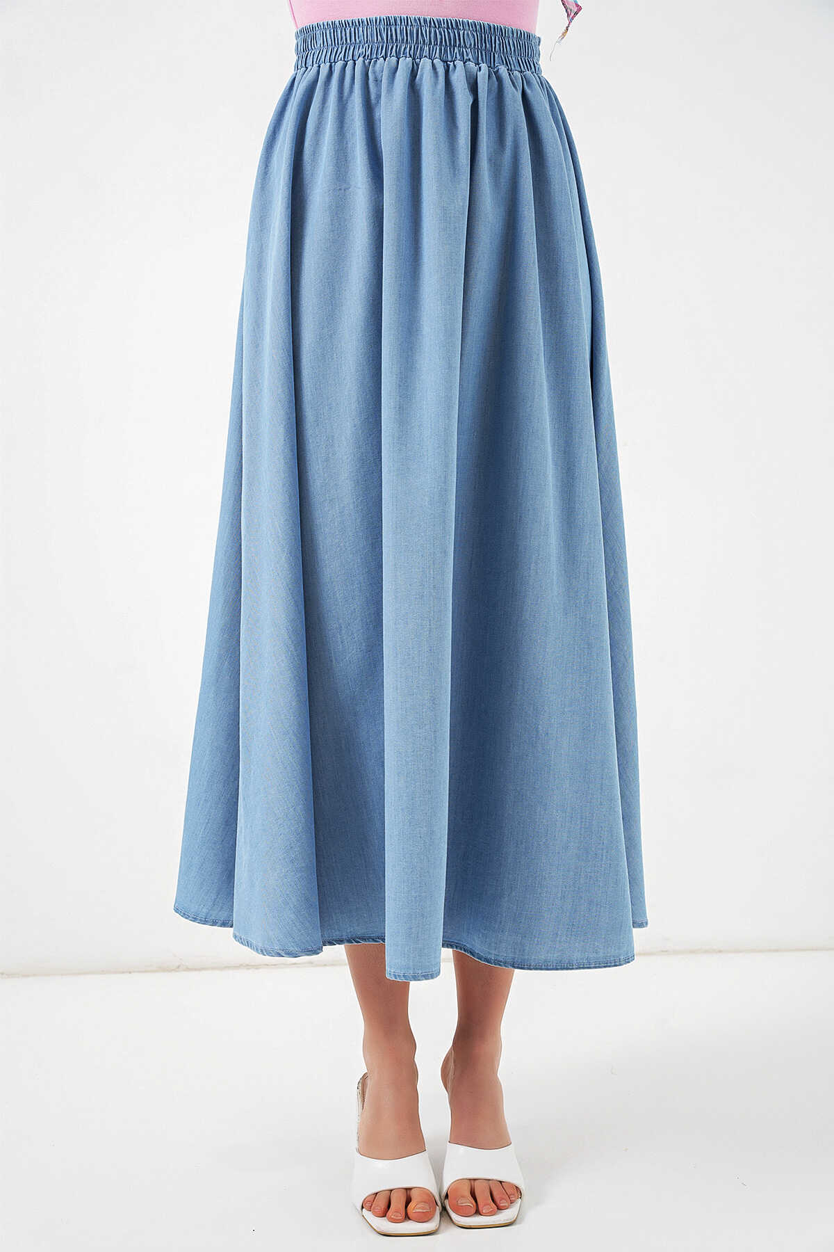 Kadın Uzun Kot Etek 8062 - Mavi - Kombin
