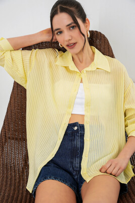 Kadın Uzun Oversize Gömlek 20320 - Sarı