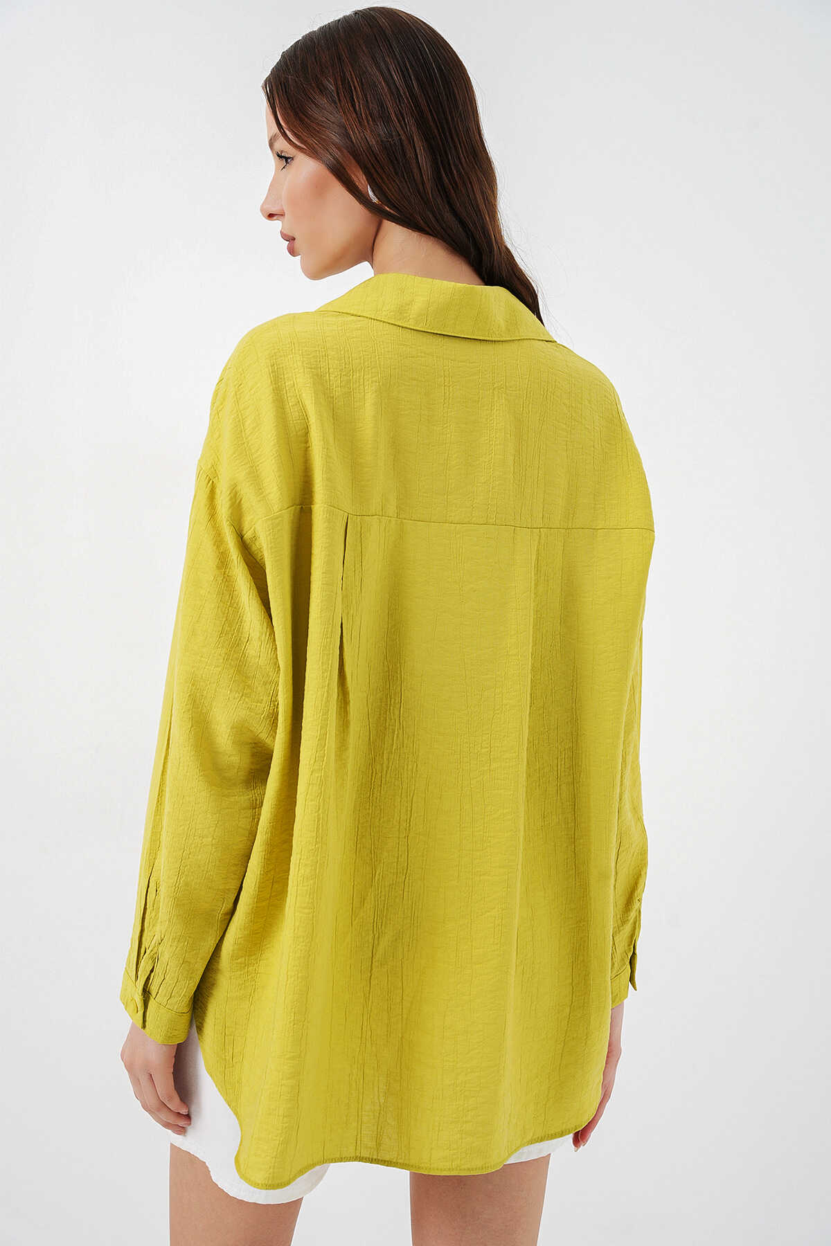 Kadın Uzun Oversize Gömlek 20334 - Hardal