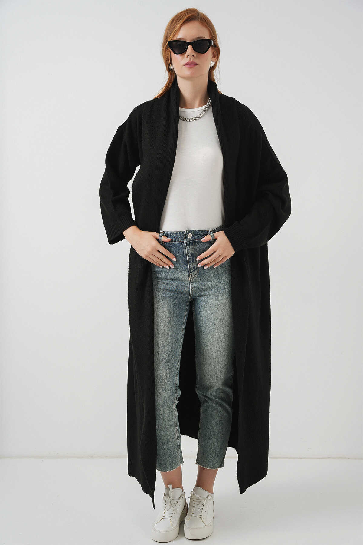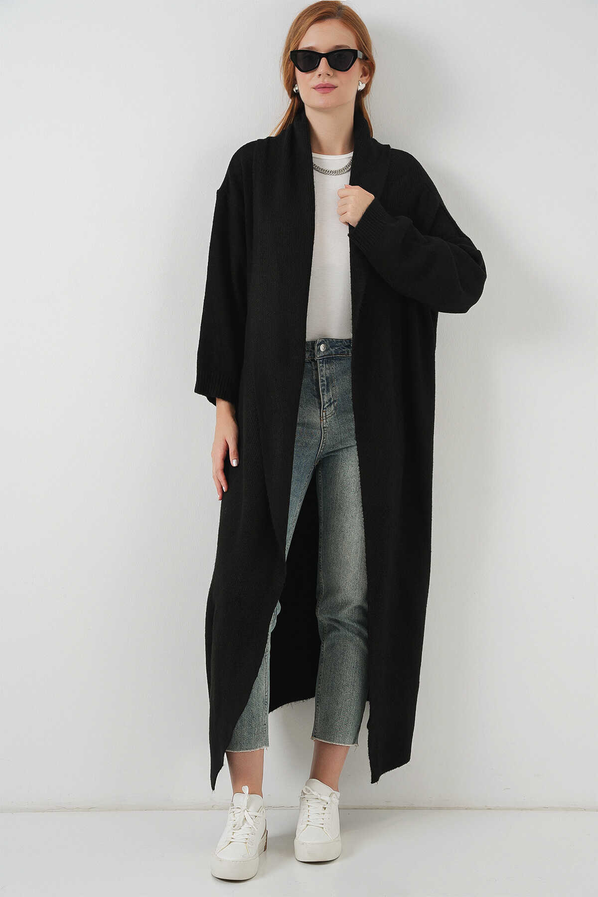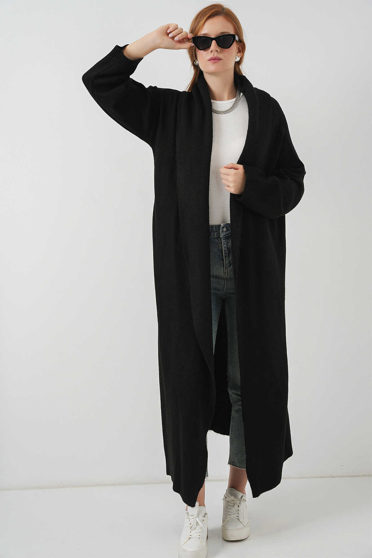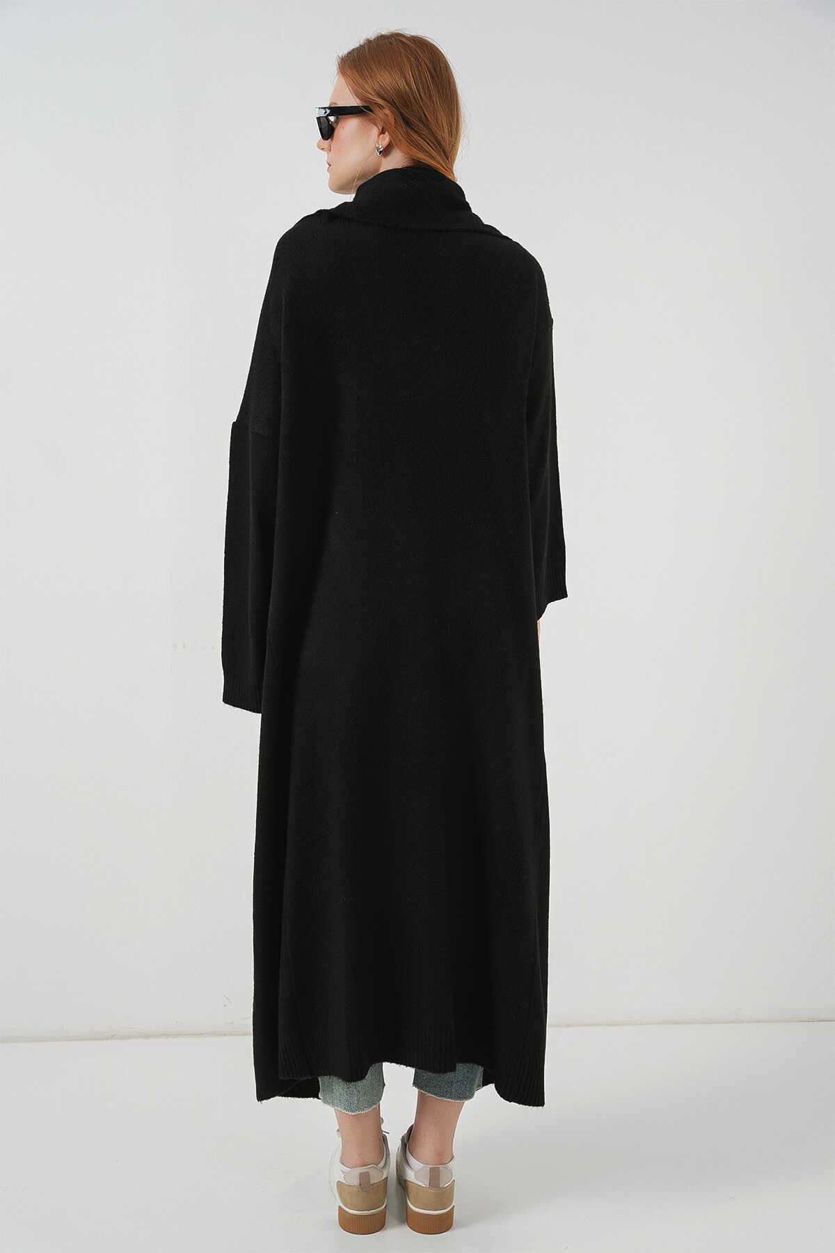 Kadin Yün Dokulu Katlama Yaka Uzun Triko Hirka