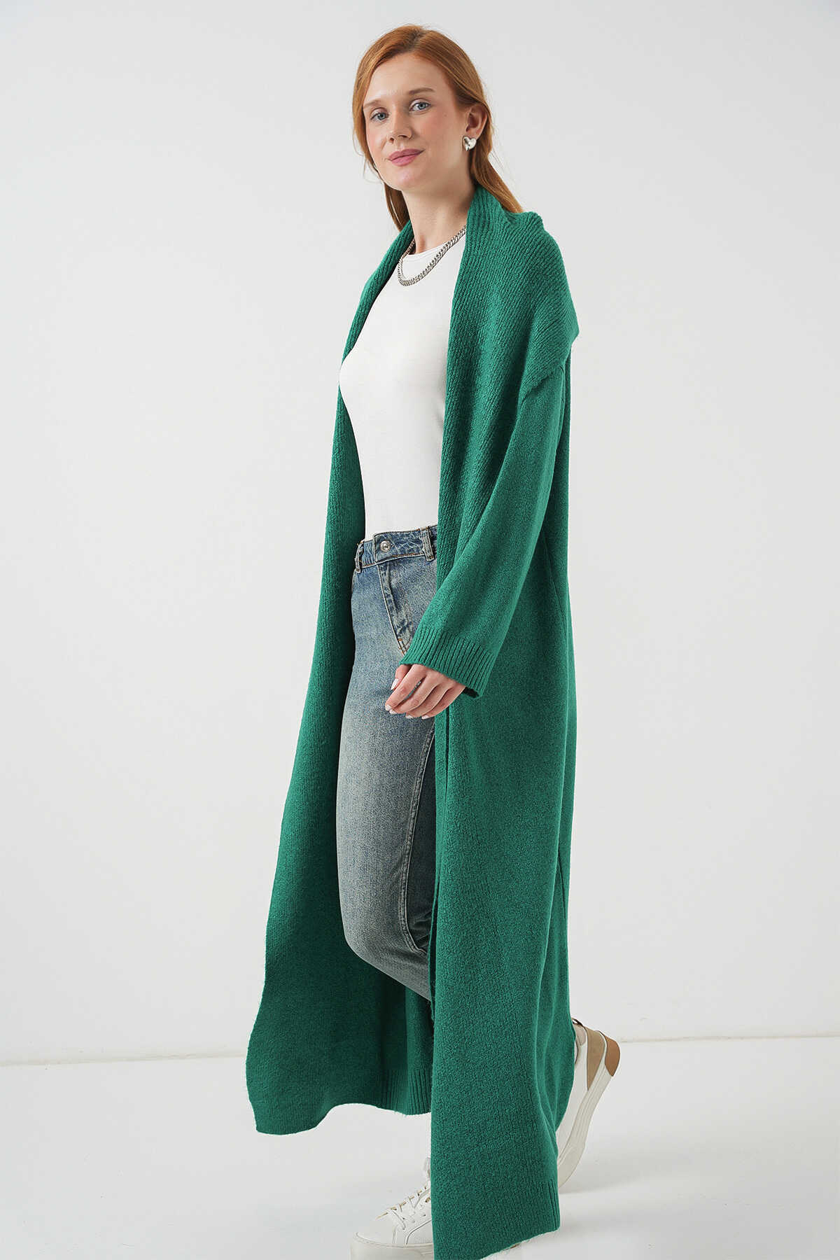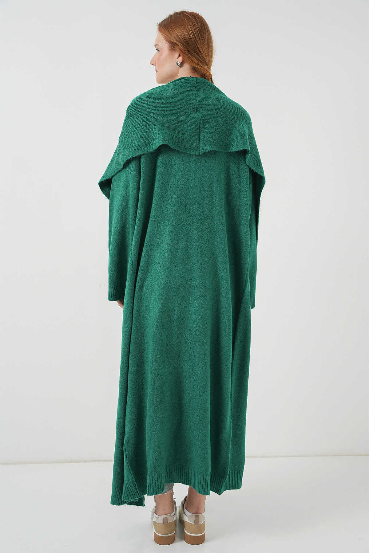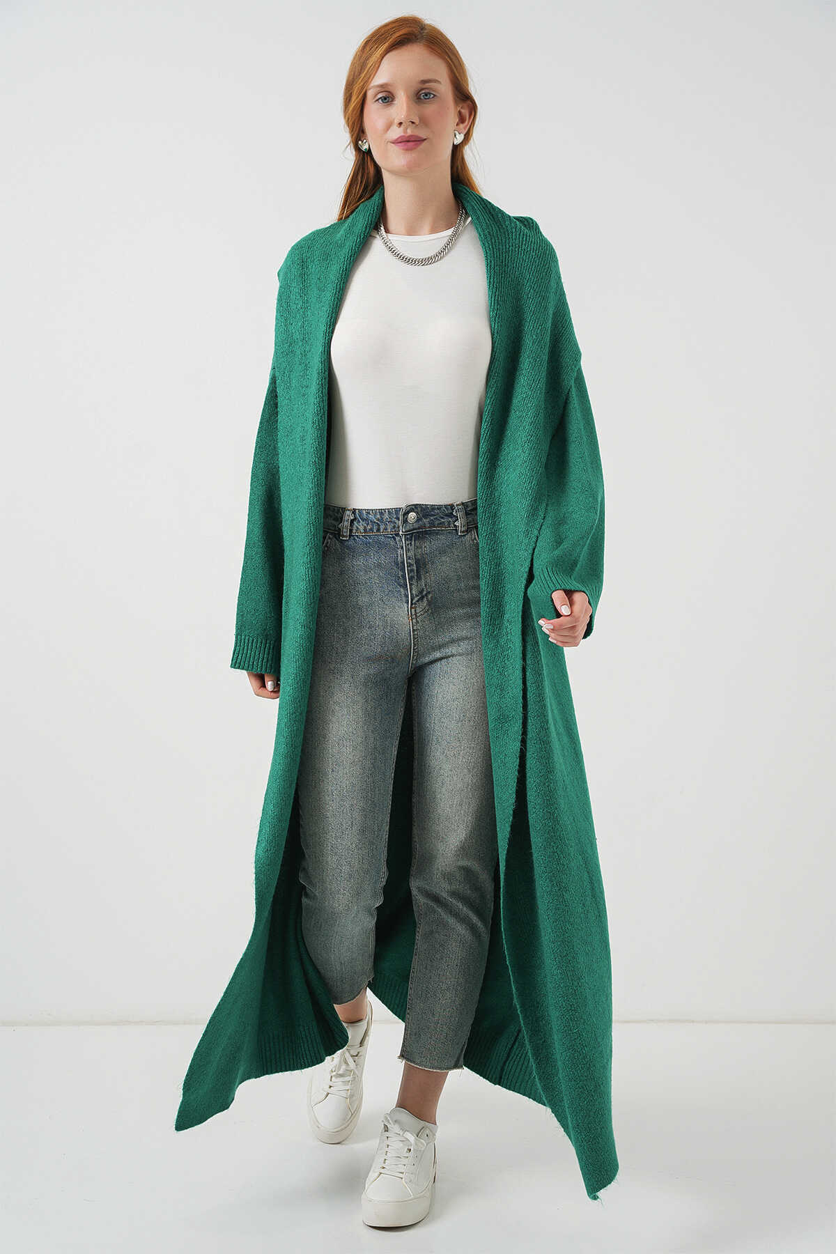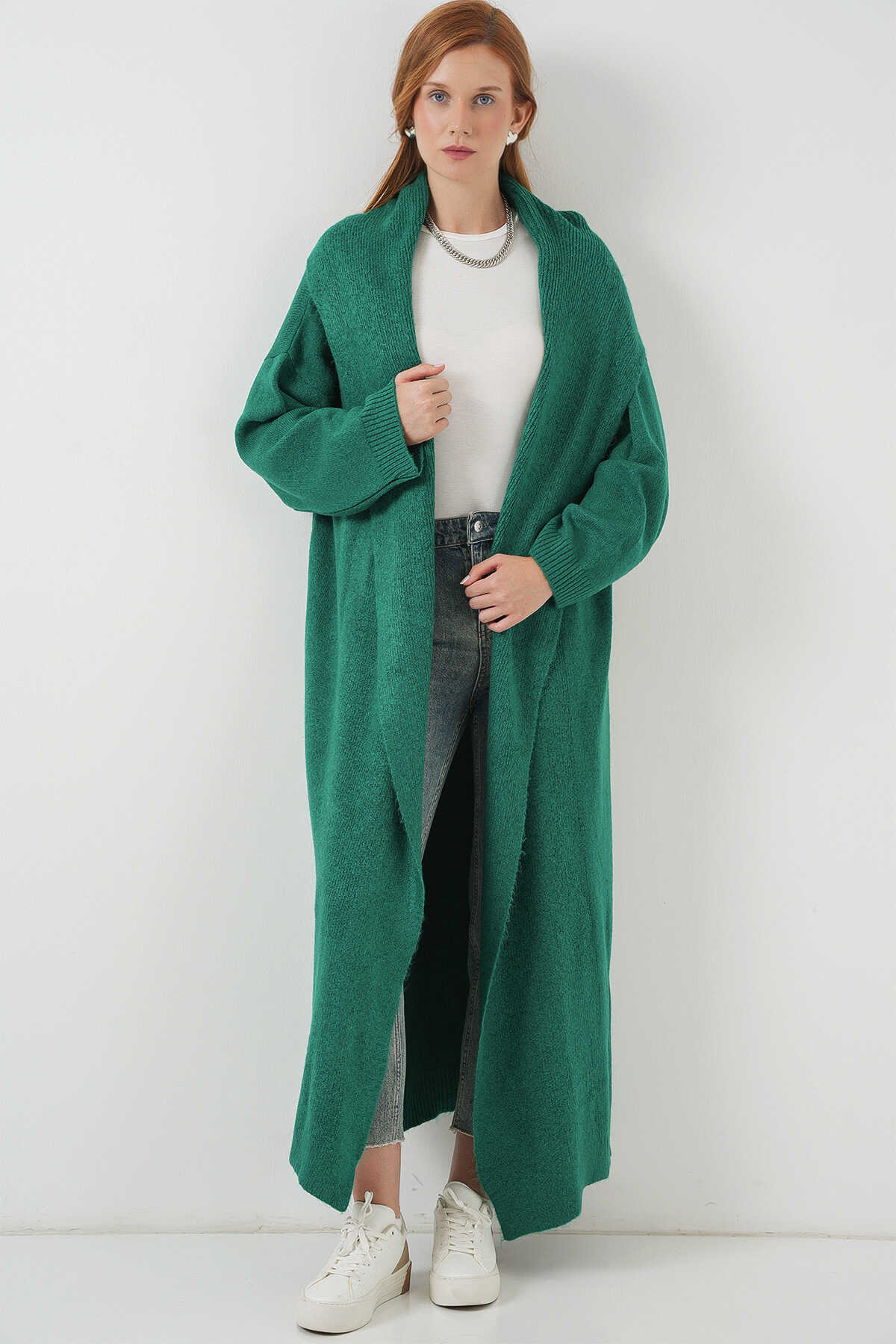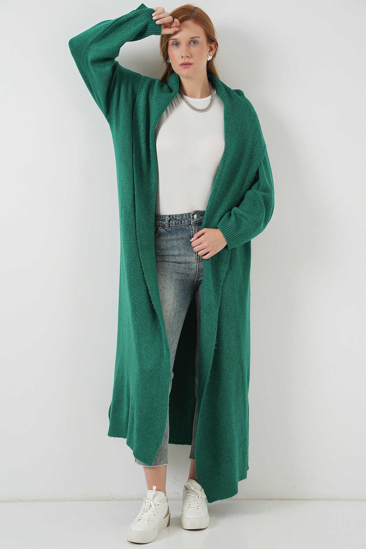 Kadın Uzun Oversize Triko Hırka 15924 - Zümrüt Yeşili - Kombin