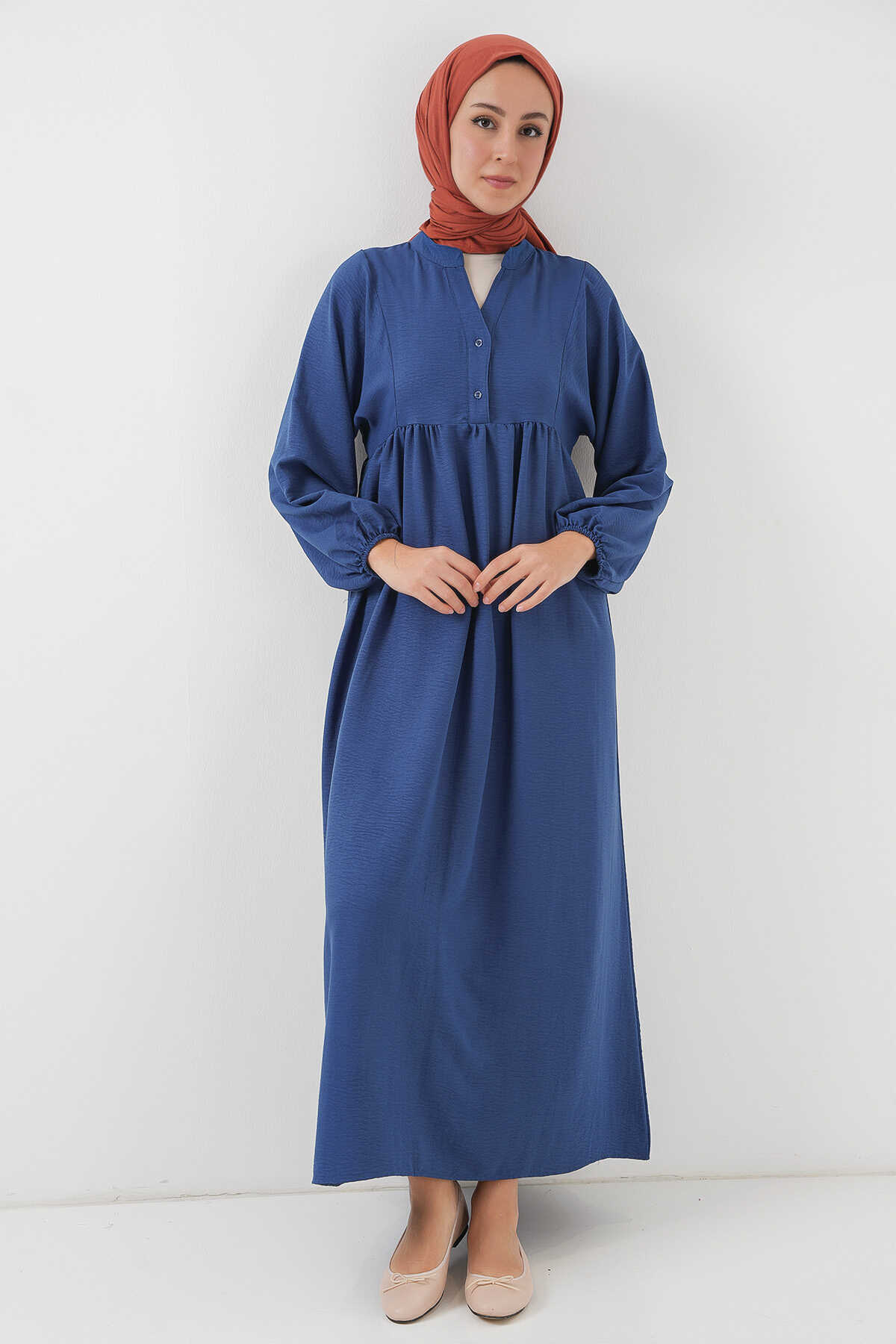 Kadın Uzun Tesettür Elbise 2525 - İndigo