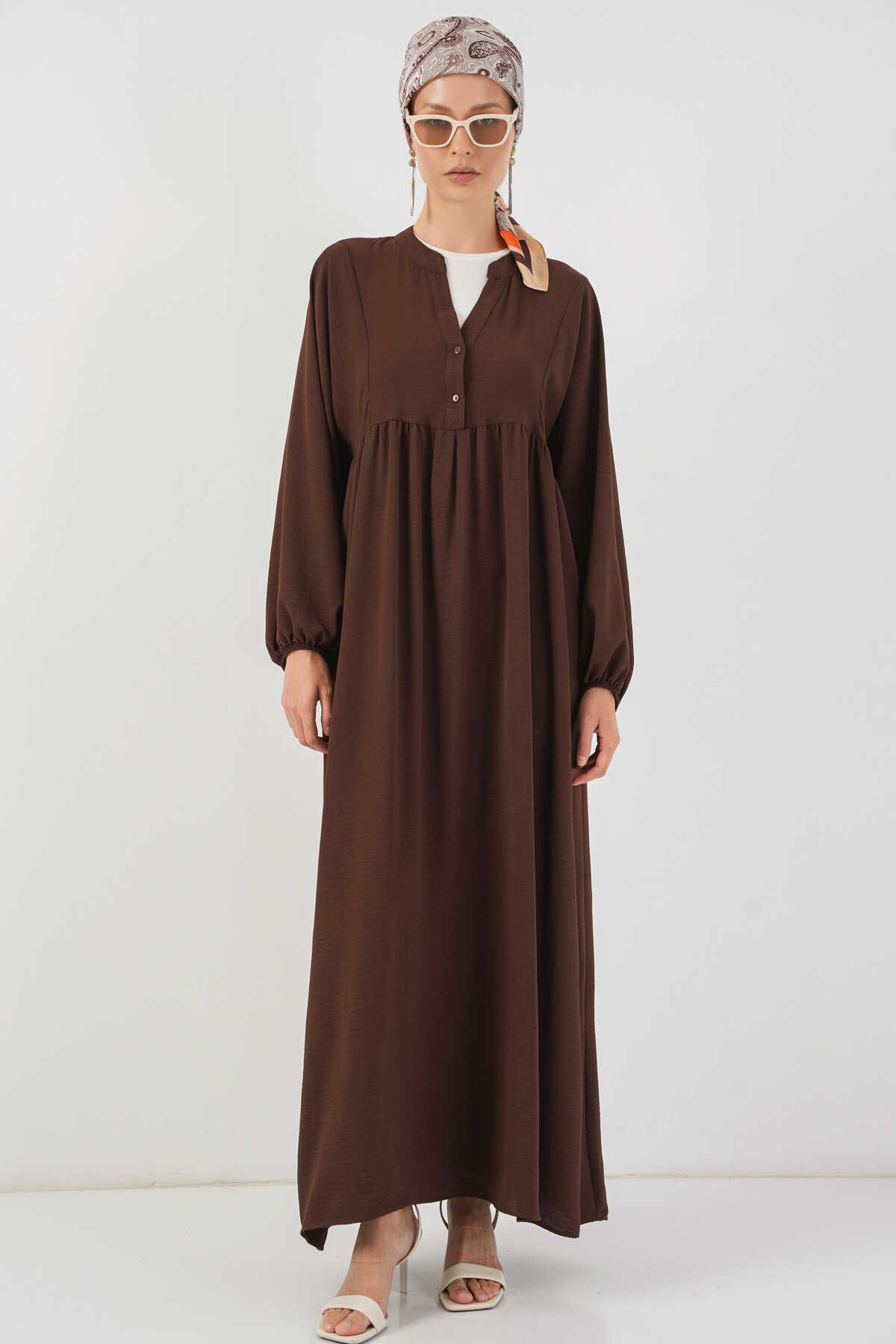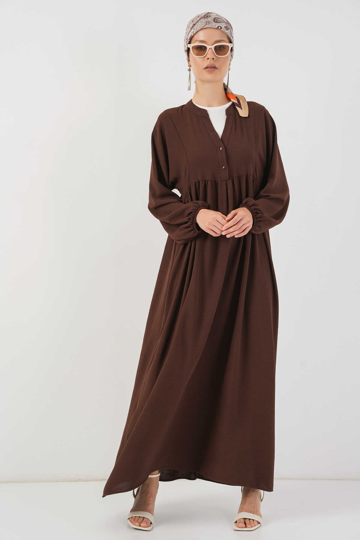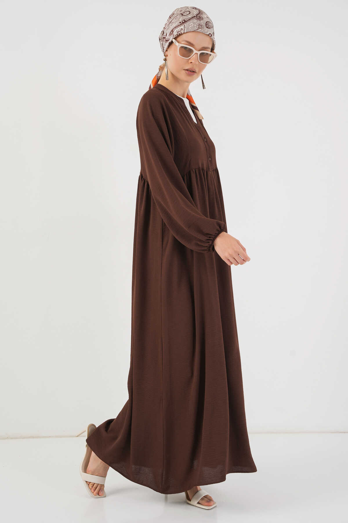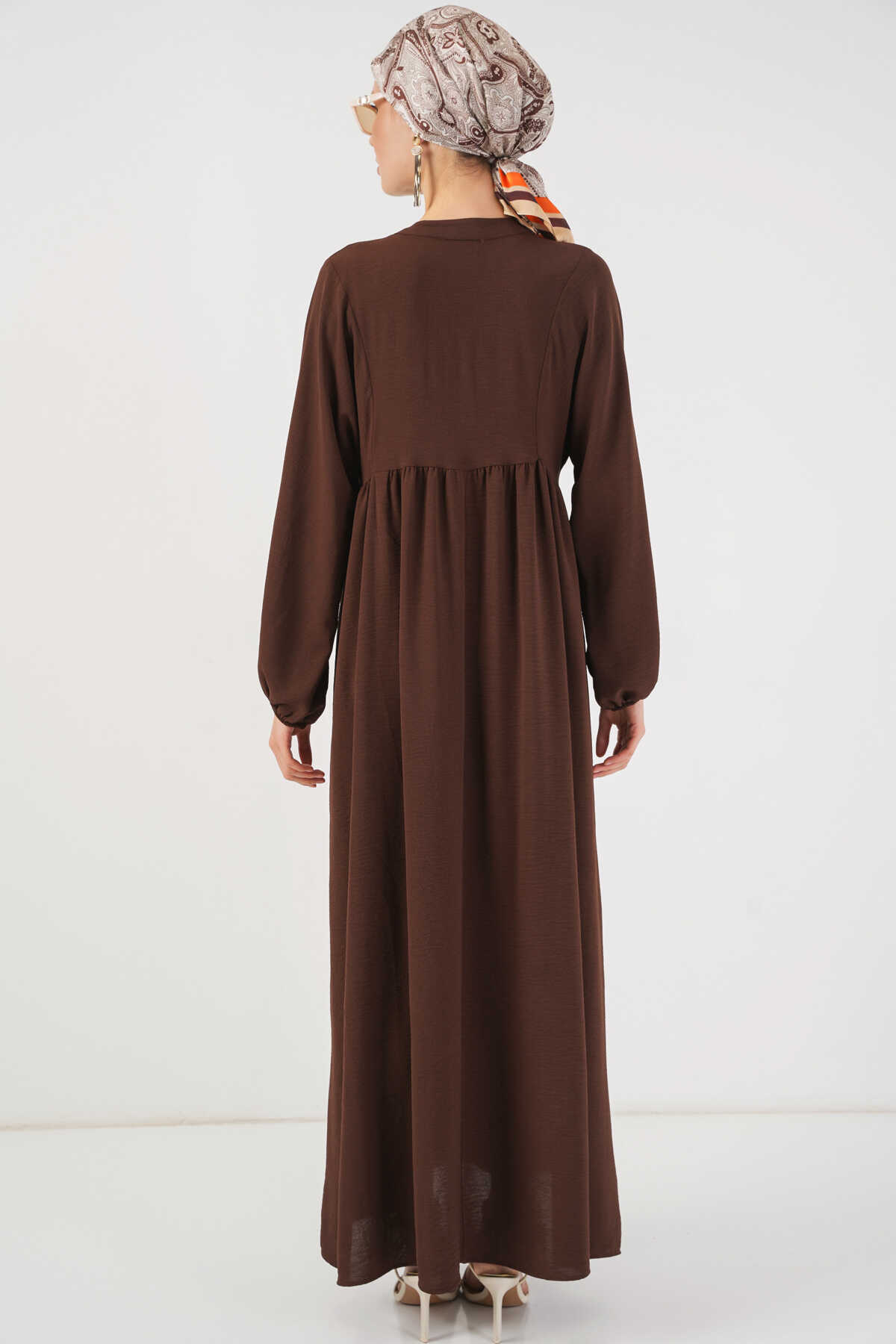 Kadın Uzun Tesettür Elbise 2525 - Kahverengi - Kombin