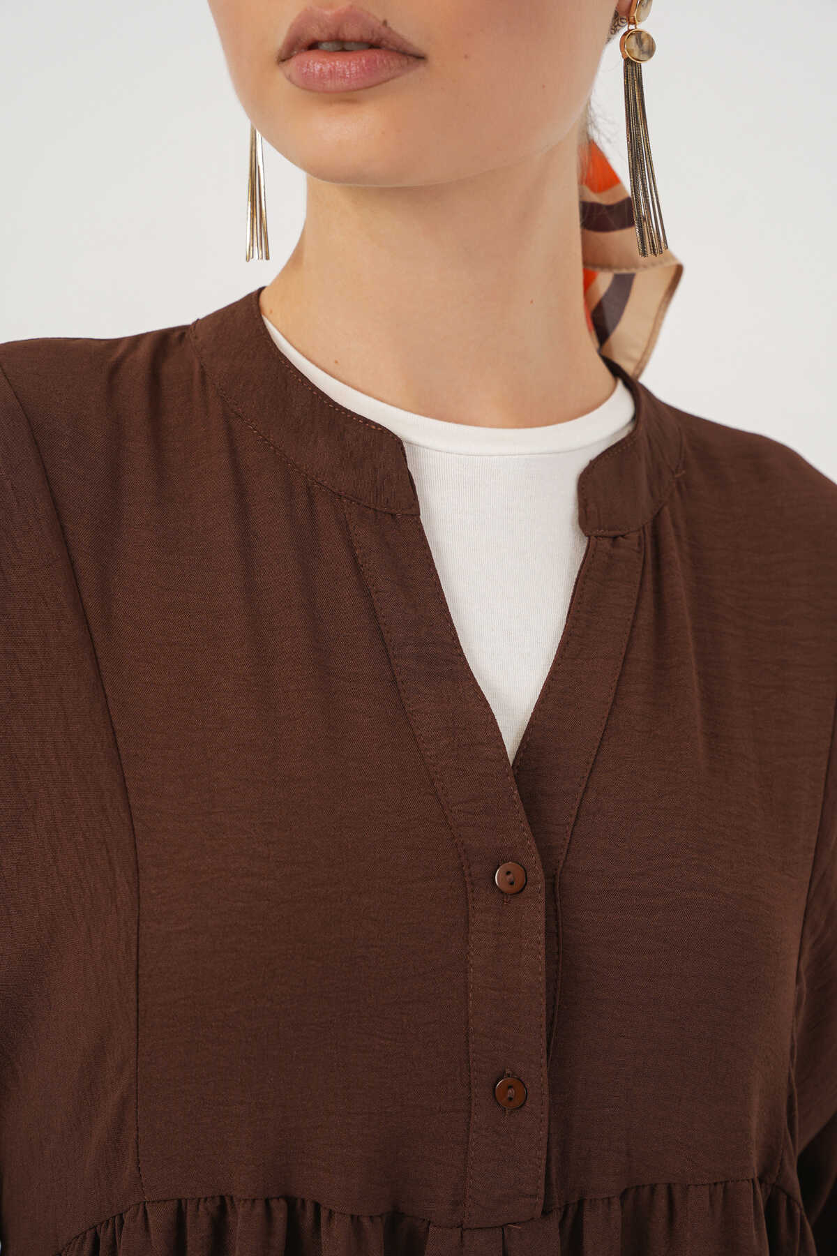 Kadın Uzun Tesettür Elbise 2525 - Kahverengi
