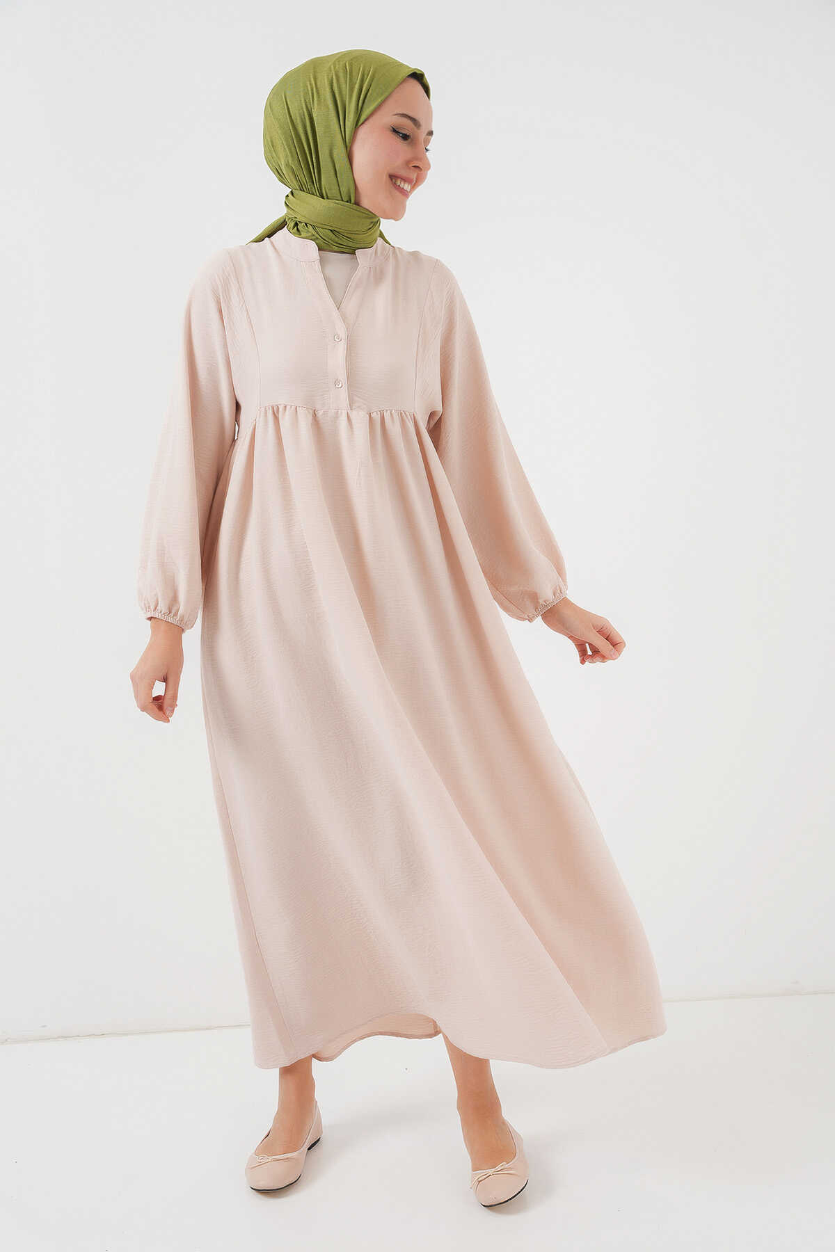 Kadın Uzun Tesettür Elbise 2525 - Krem