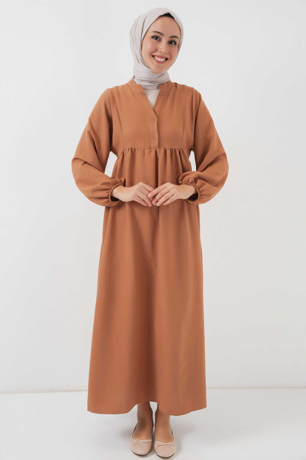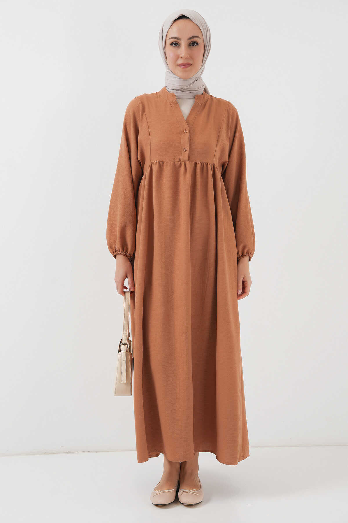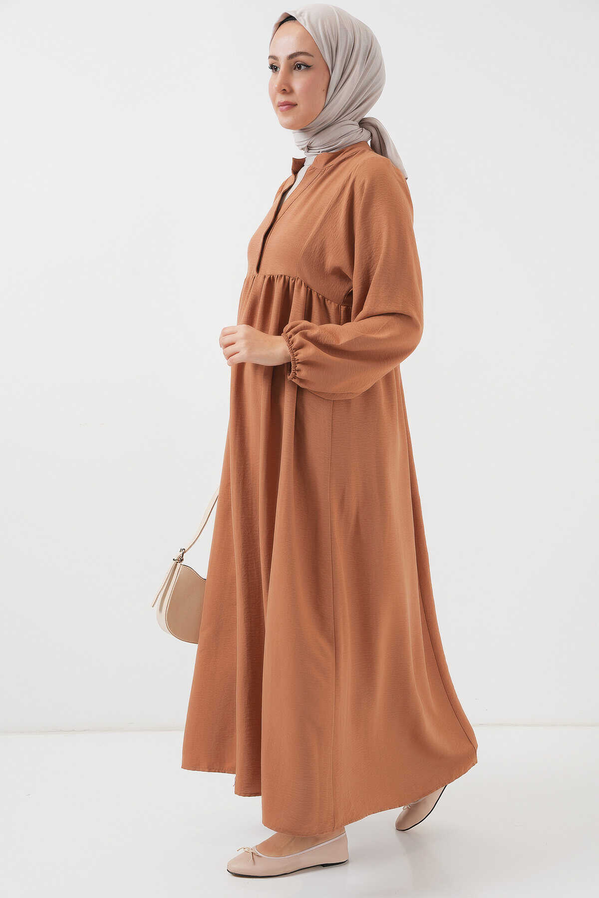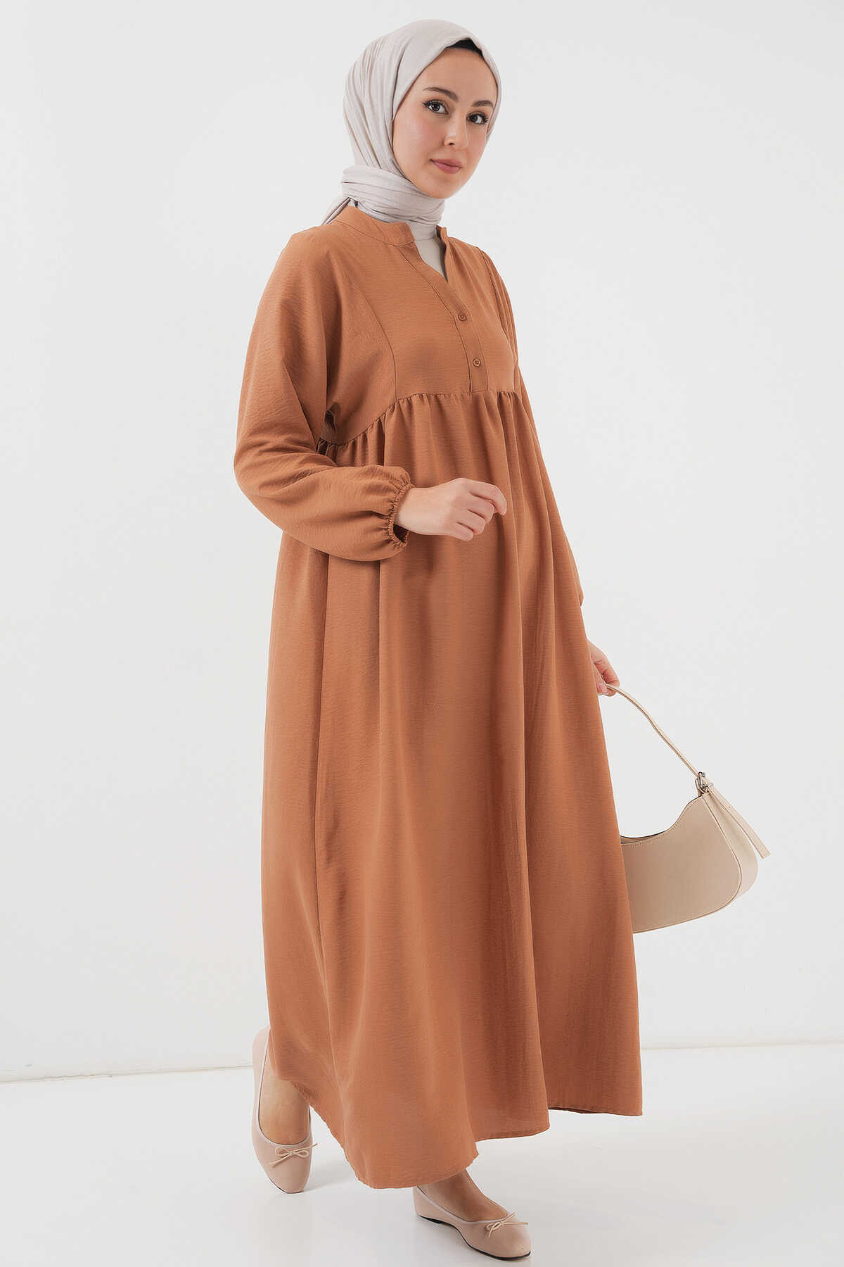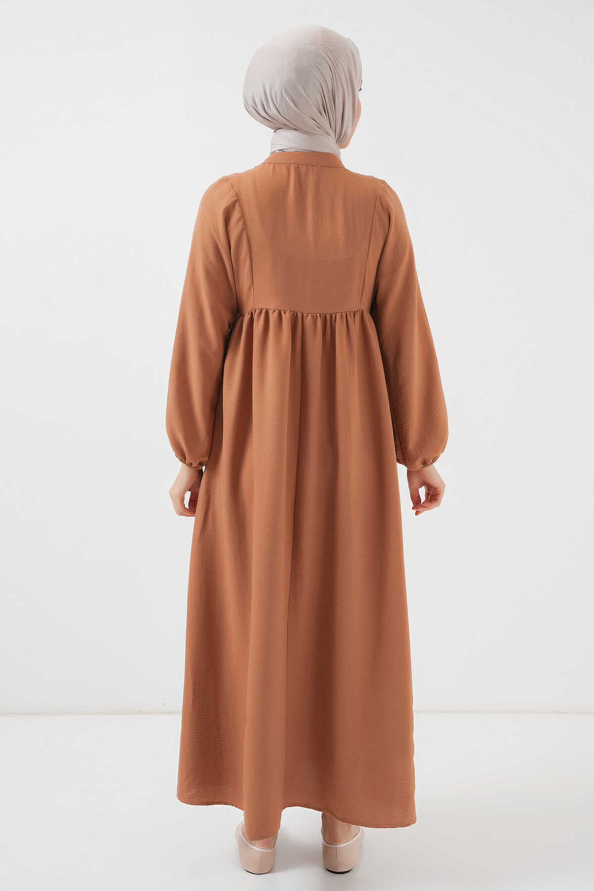 Kadın Uzun Tesettür Elbise 2525 - Taba - Kombin