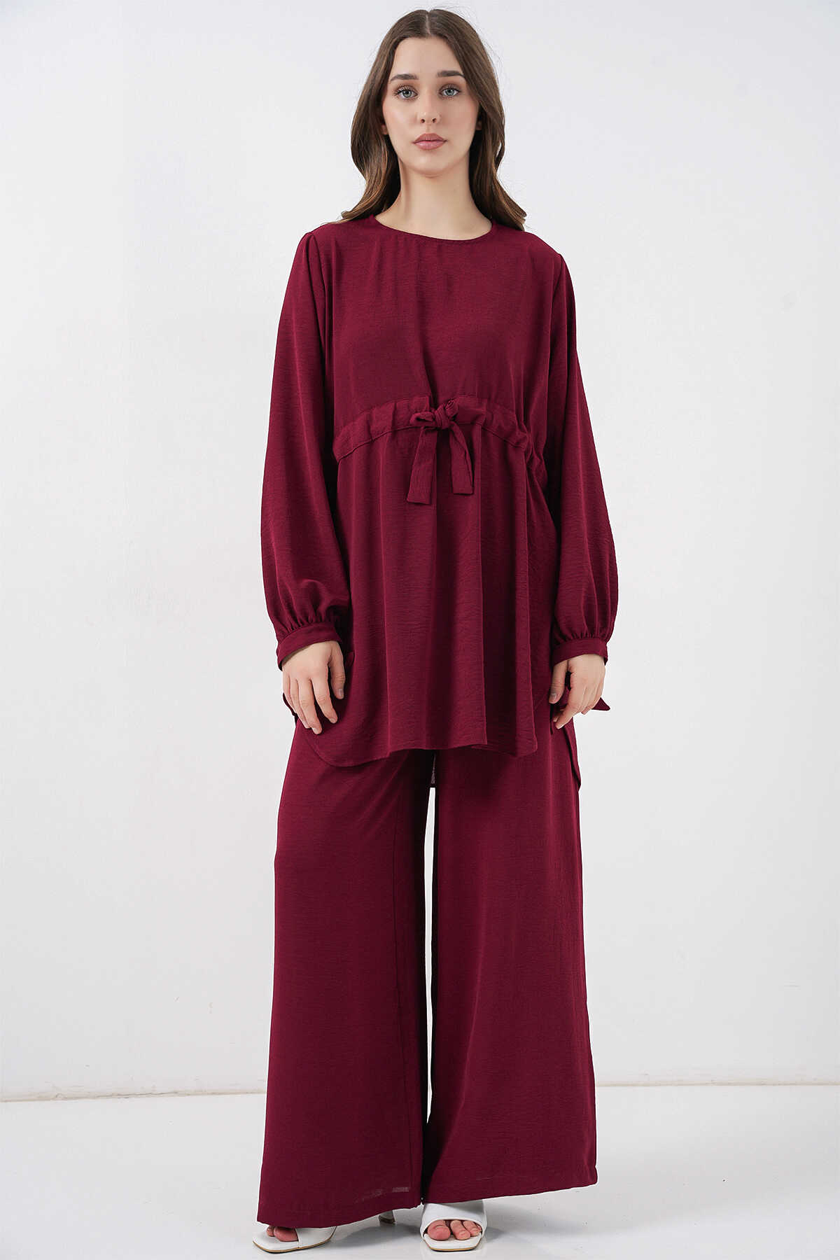 Kadın Uzun Tunik Pantolon İkili Takım 6719 - Bordo