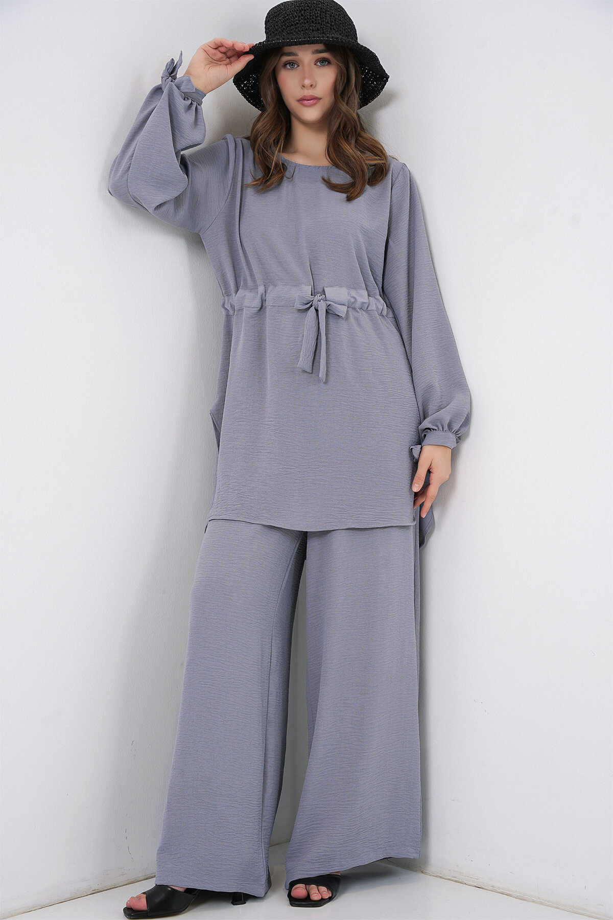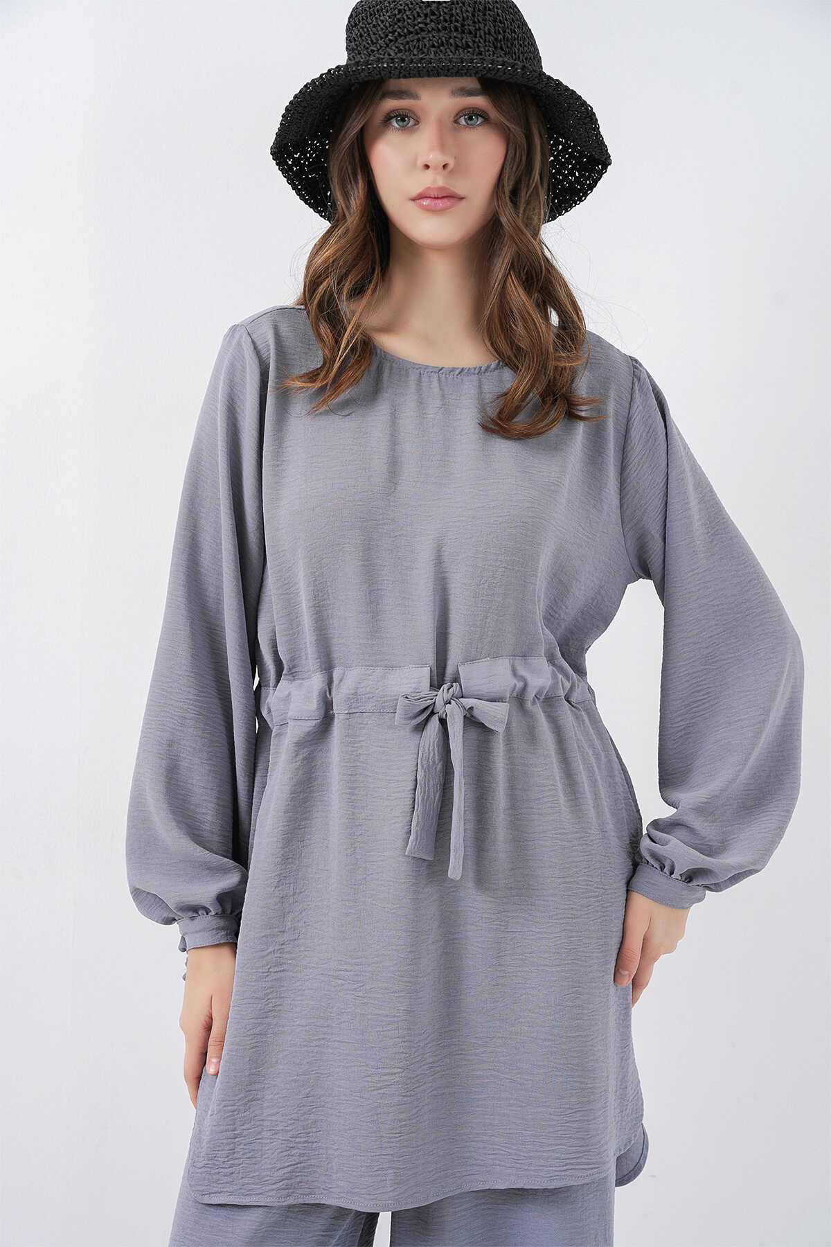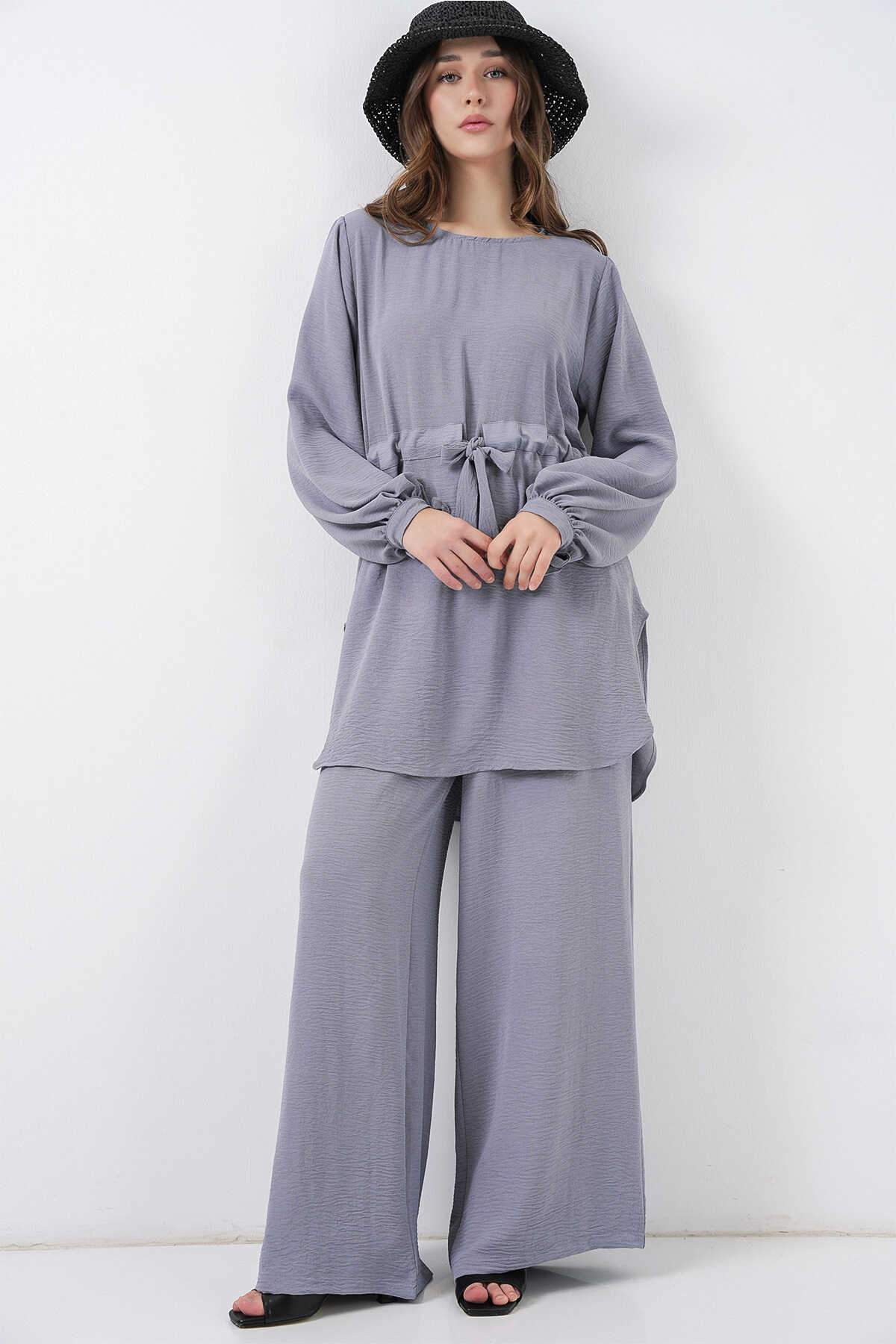 Kadın Uzun Tunik Pantolon İkili Takım 6719 - Gri - Kombin