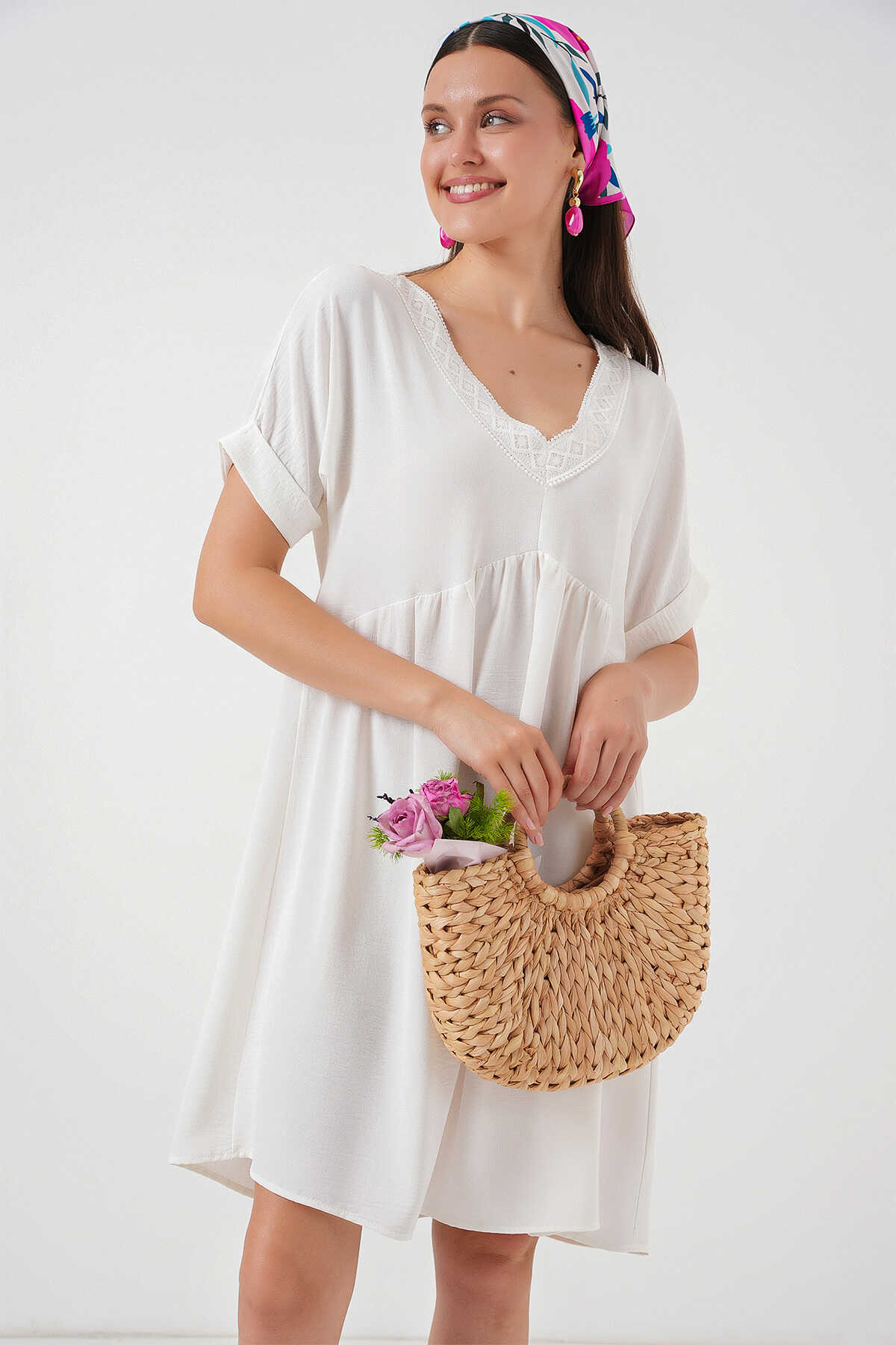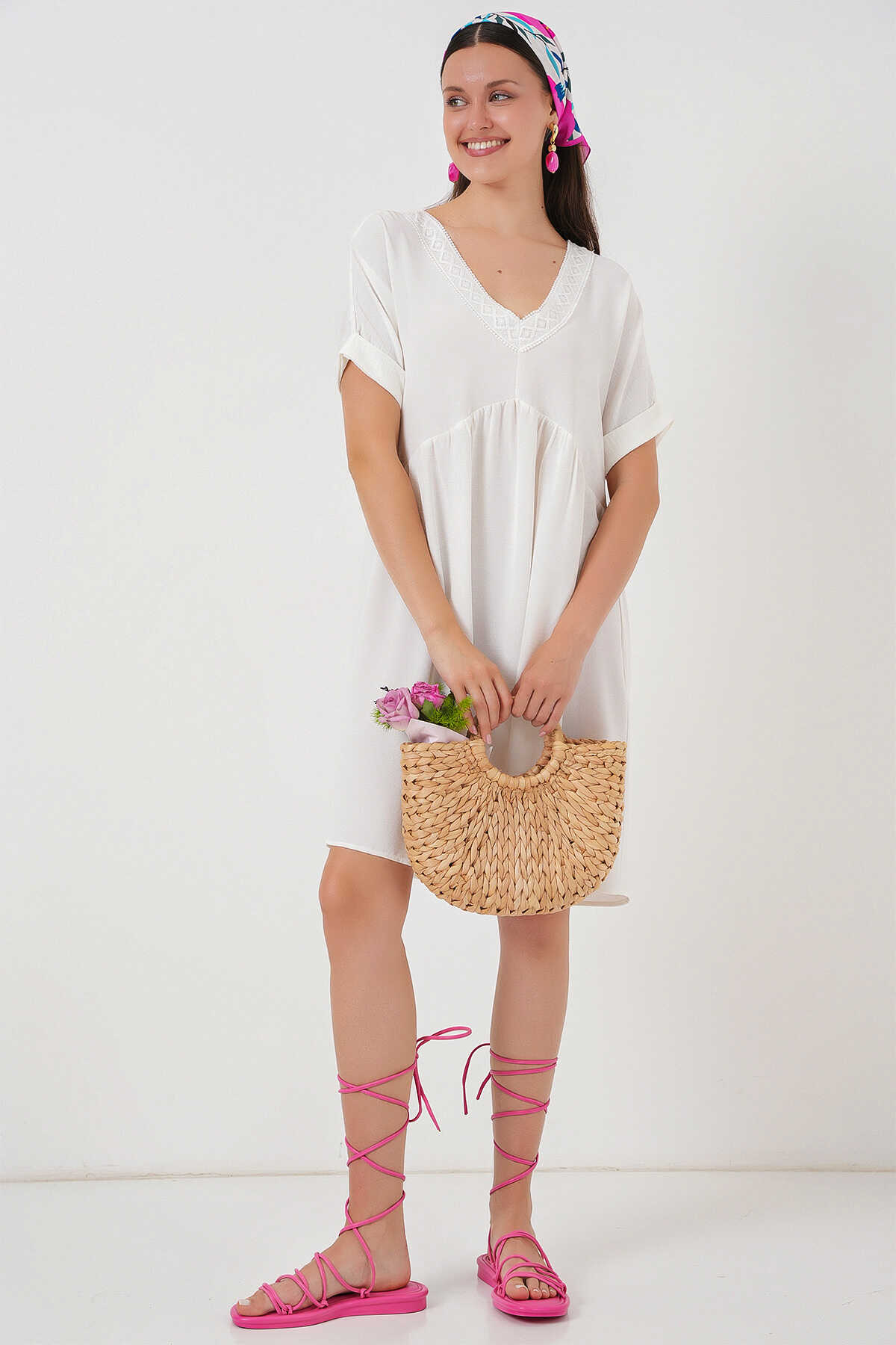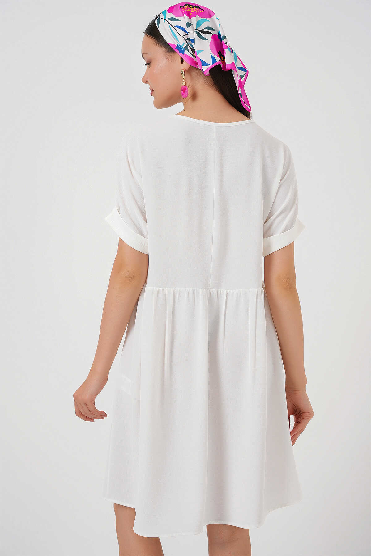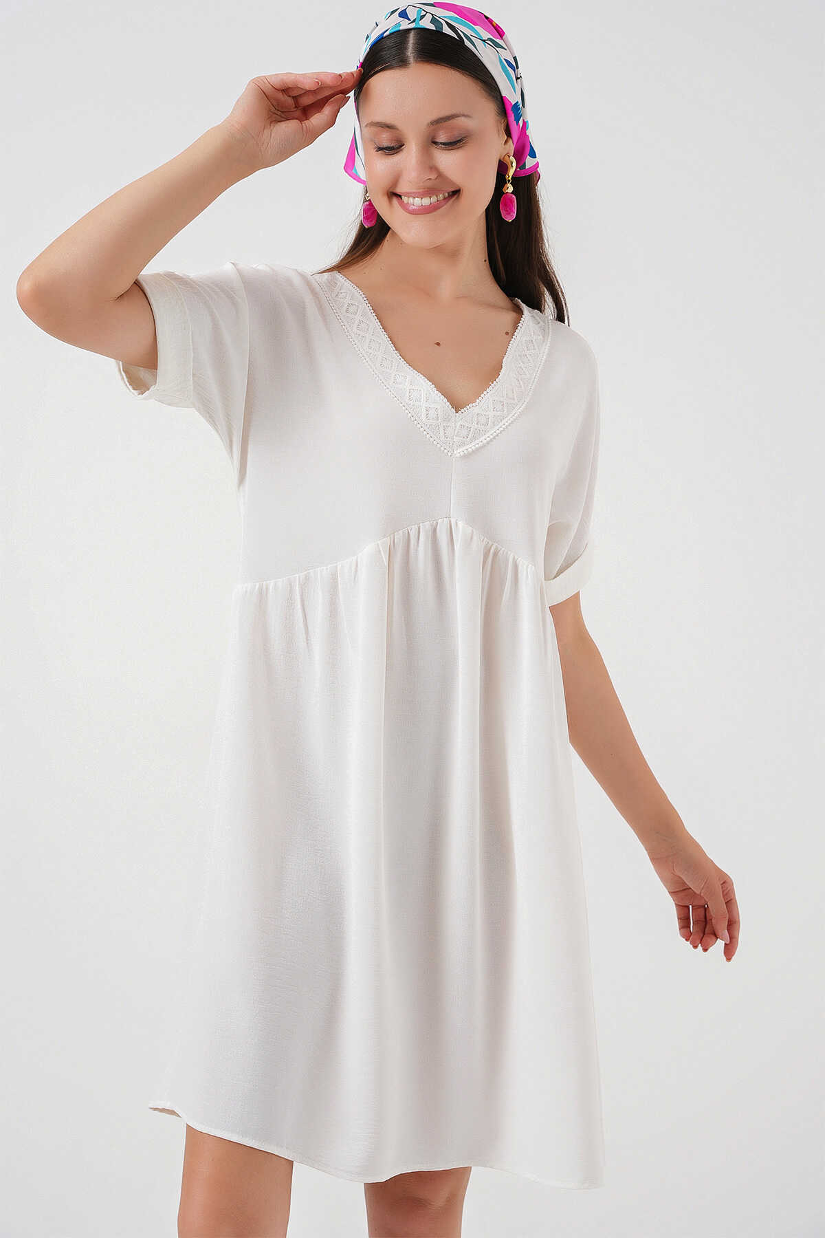 Kadin V Yaka Kisa Kol Elbise