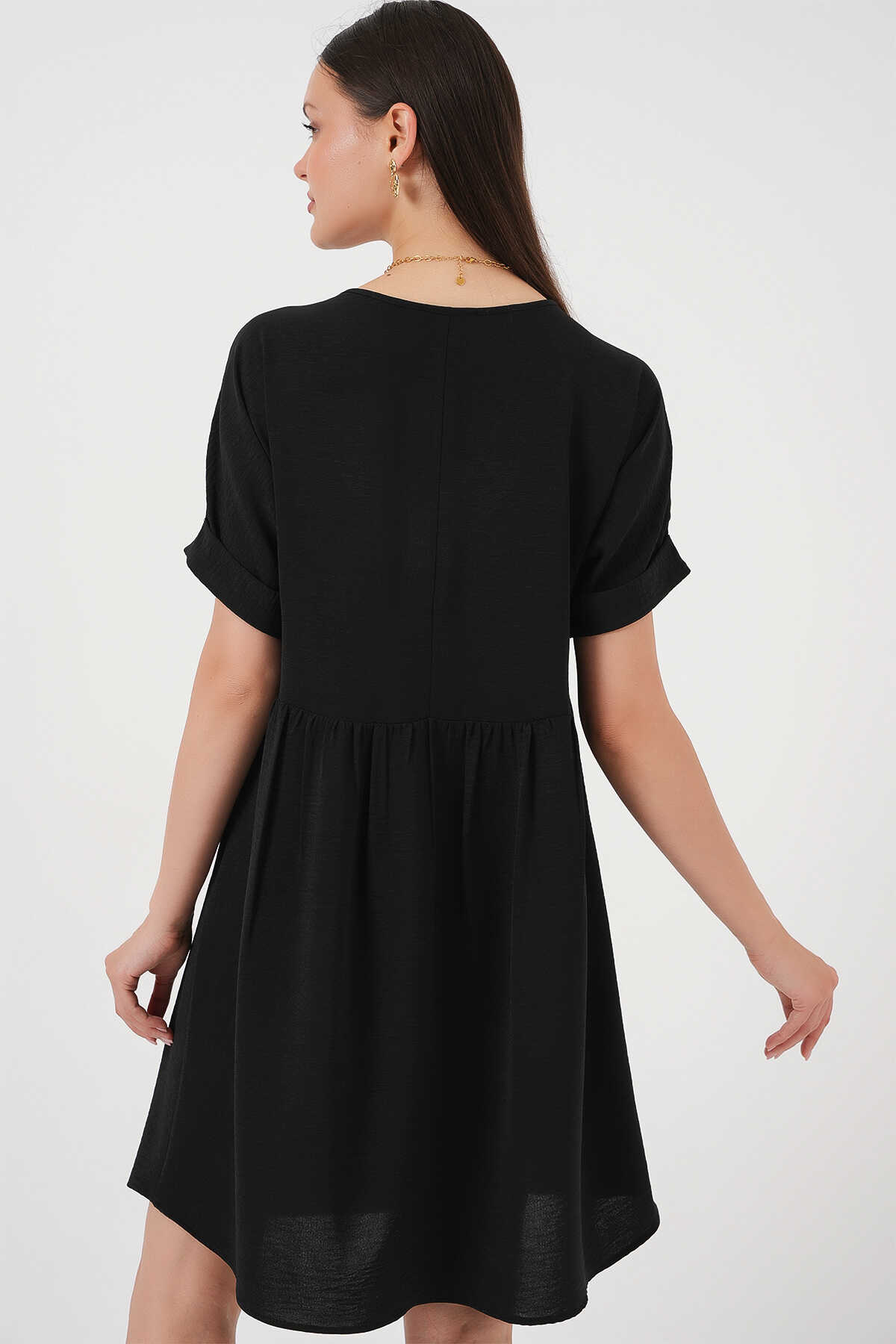 Kadin V Yaka Kisa Kol Elbise