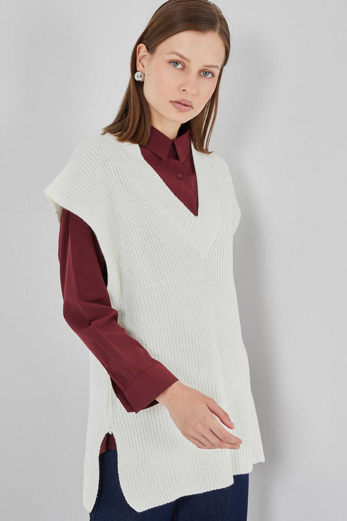 V Yaka Triko Süveter
