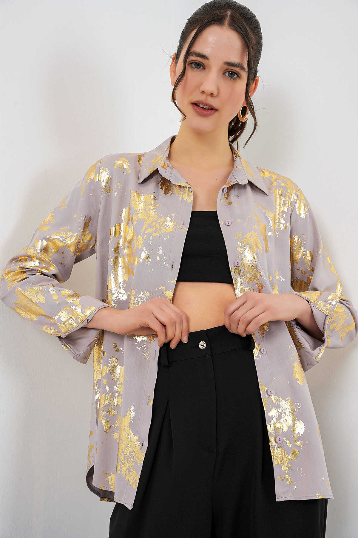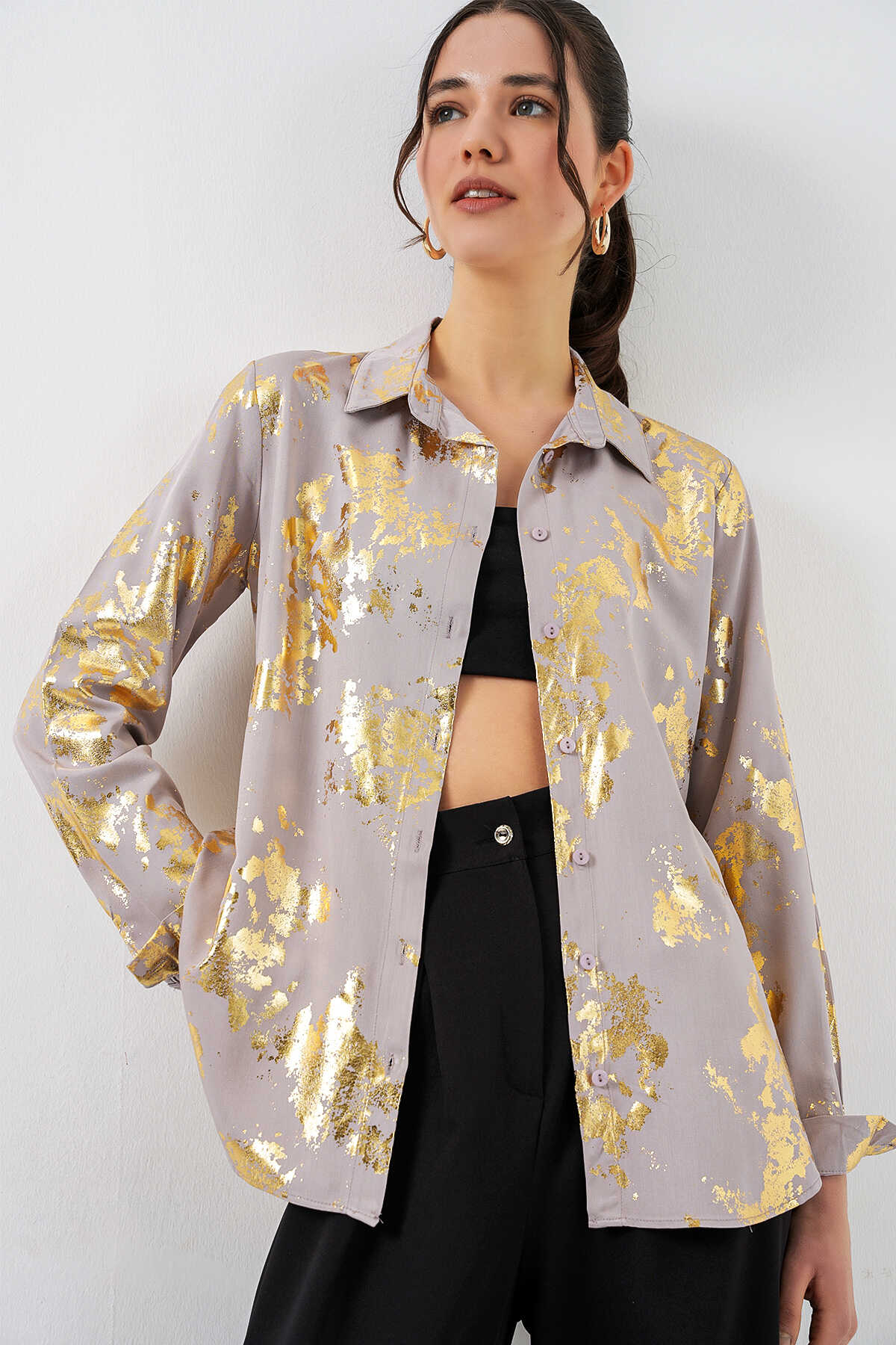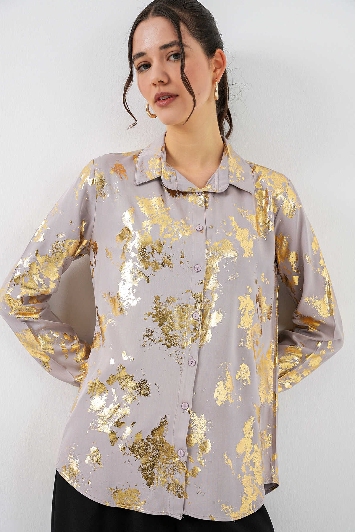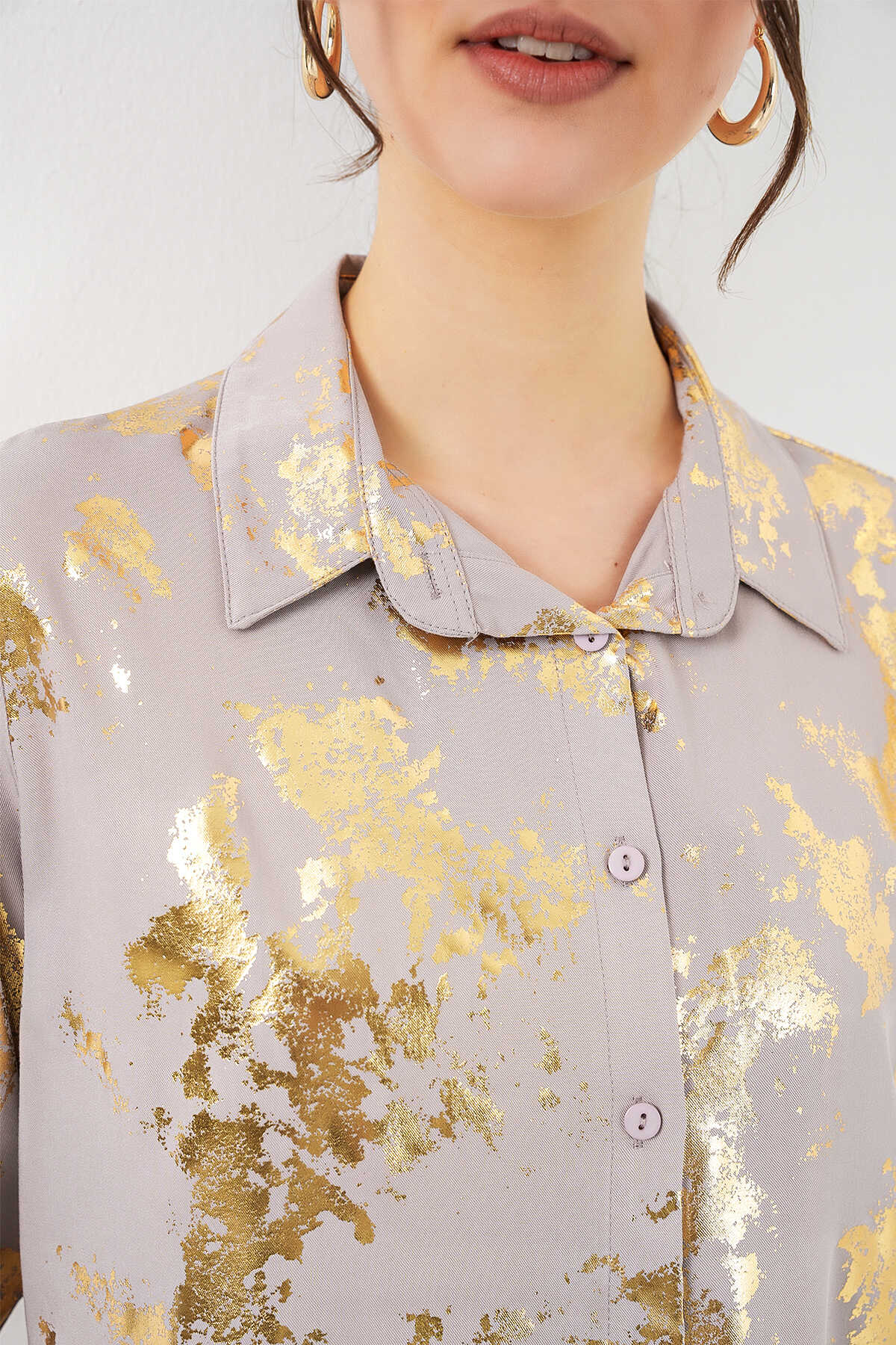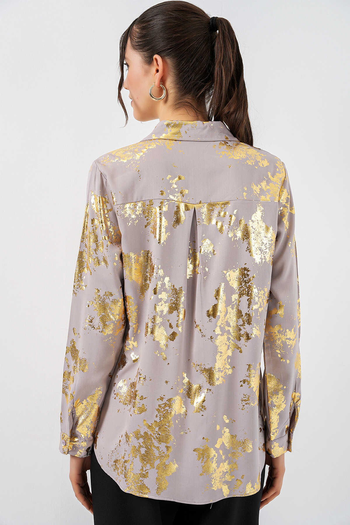 Kadın Varak Desenli Gömlek 20253 - Altın Sarısı