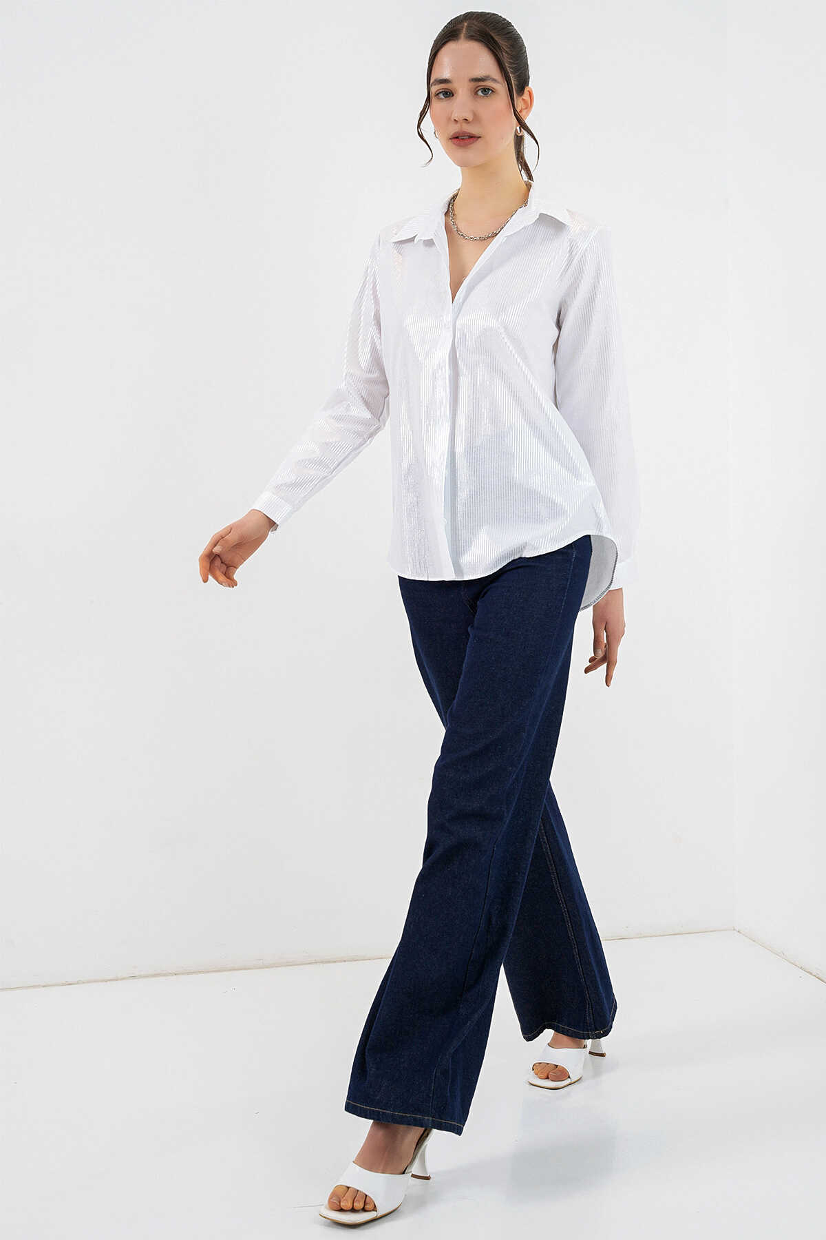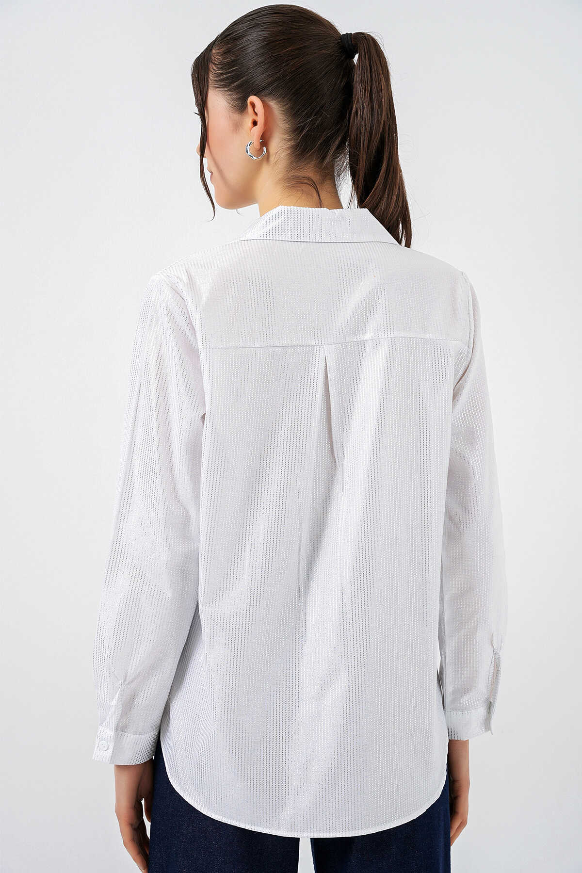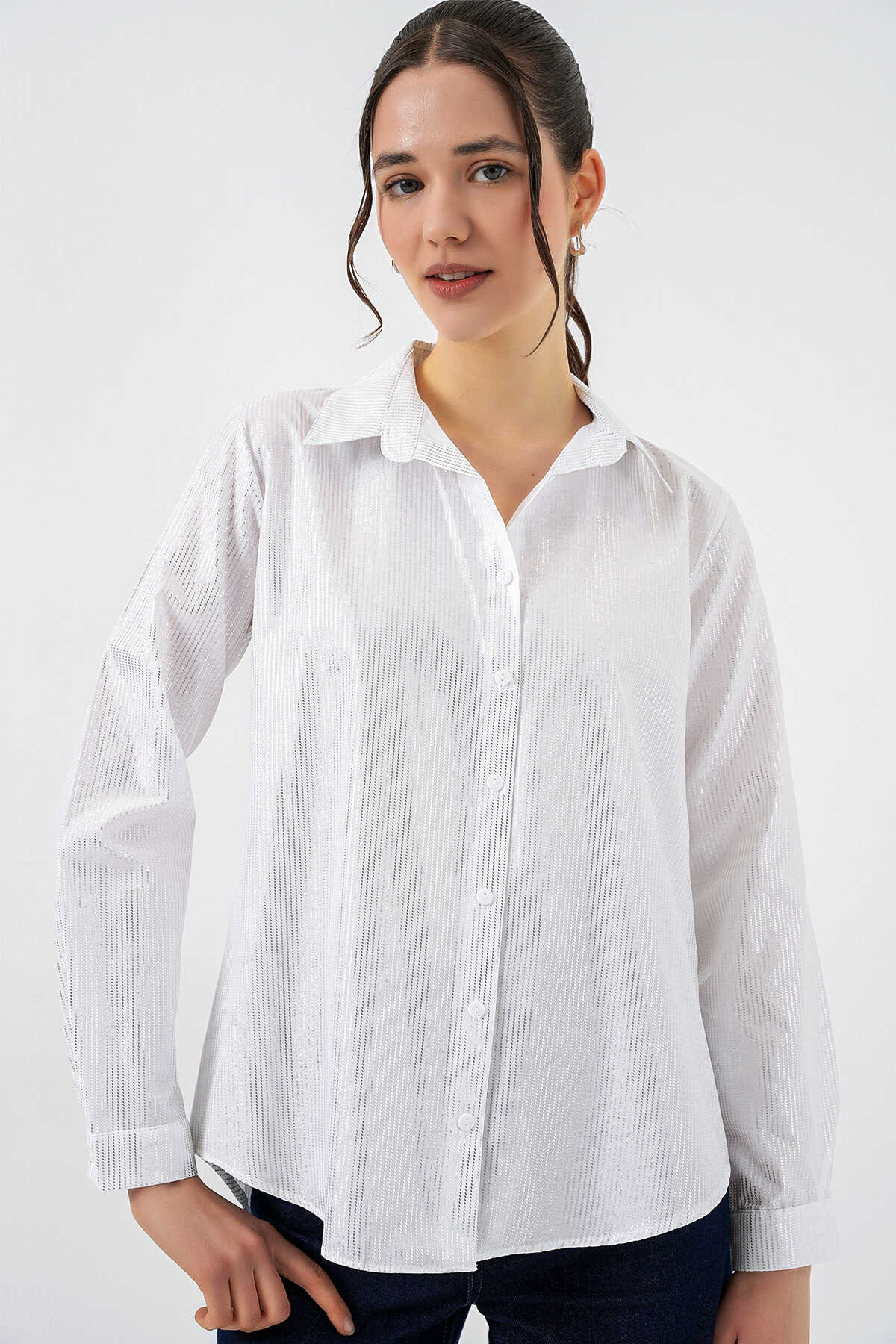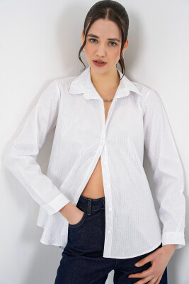 Kadın Varak Desenli Gömlek 20253 - B.Beyaz - Kombin