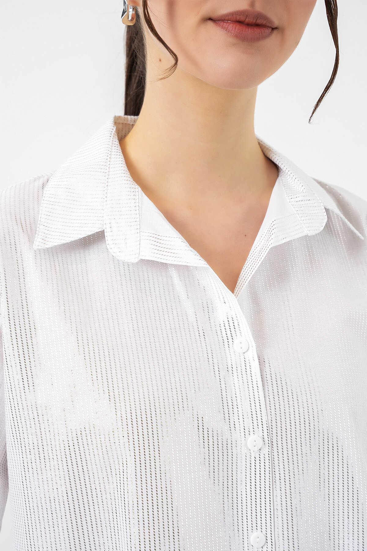 Kadın Varak Desenli Gömlek 20253 - B.Beyaz
