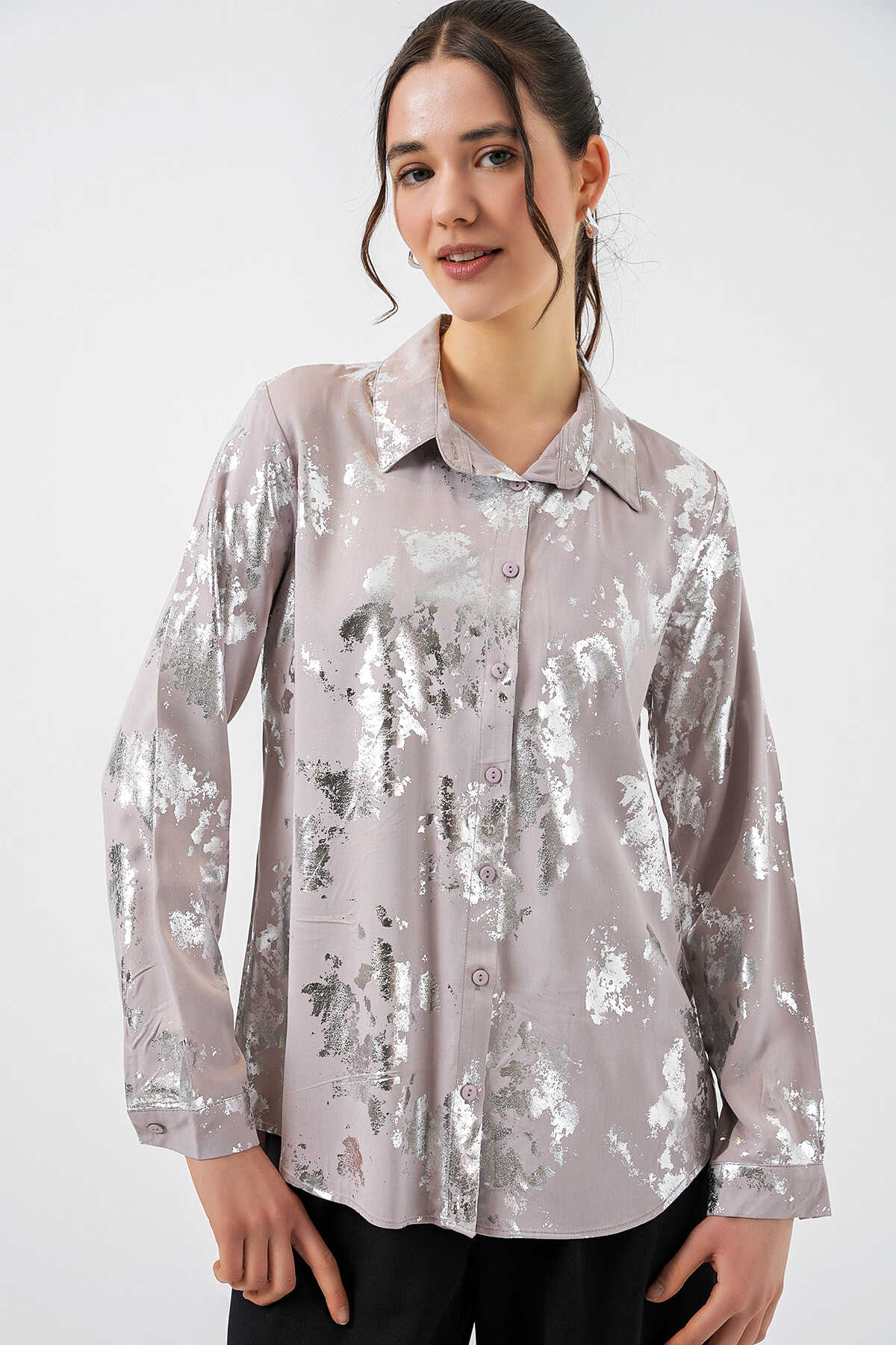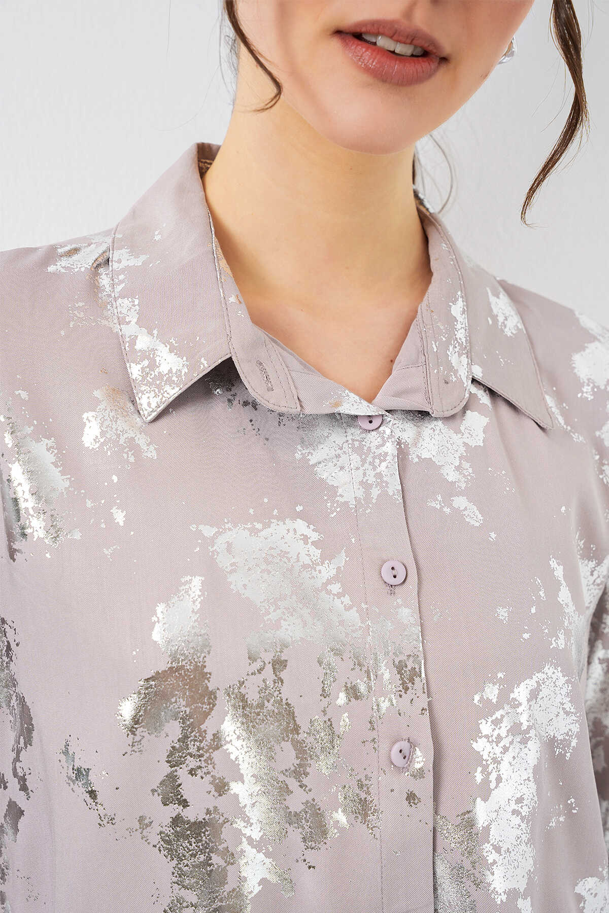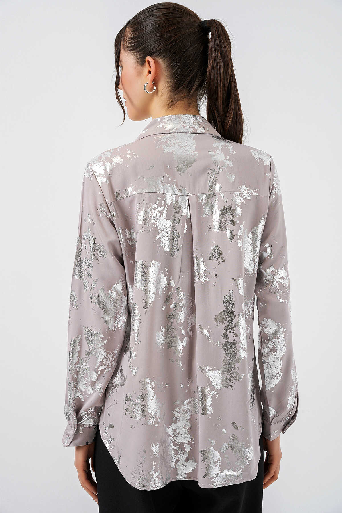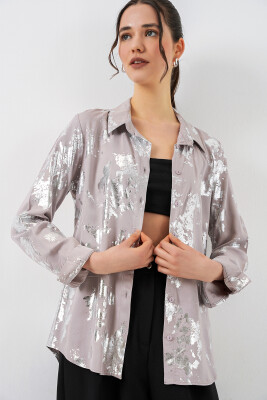Kadın Varak Desenli Gömlek 20253 - Gümüş