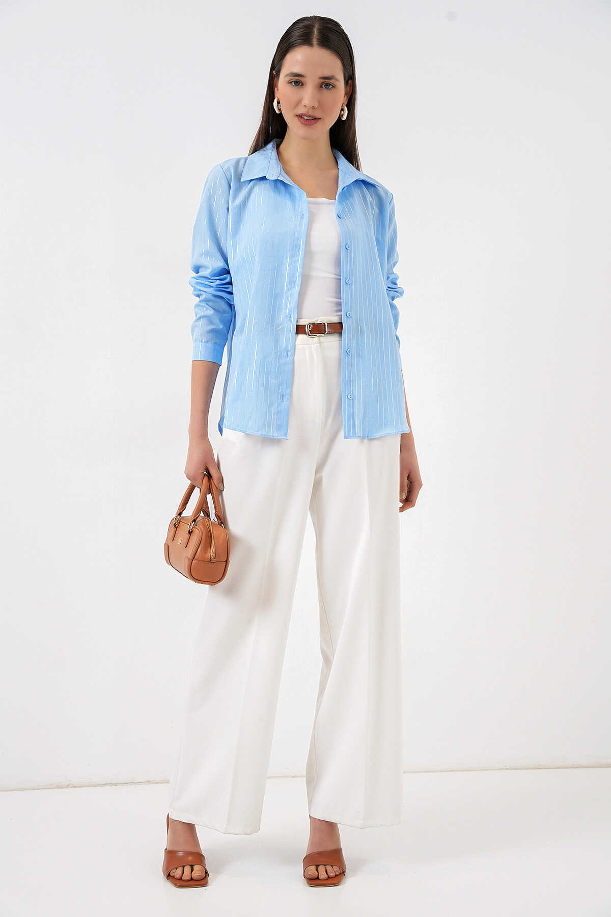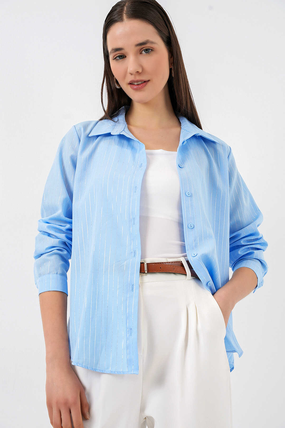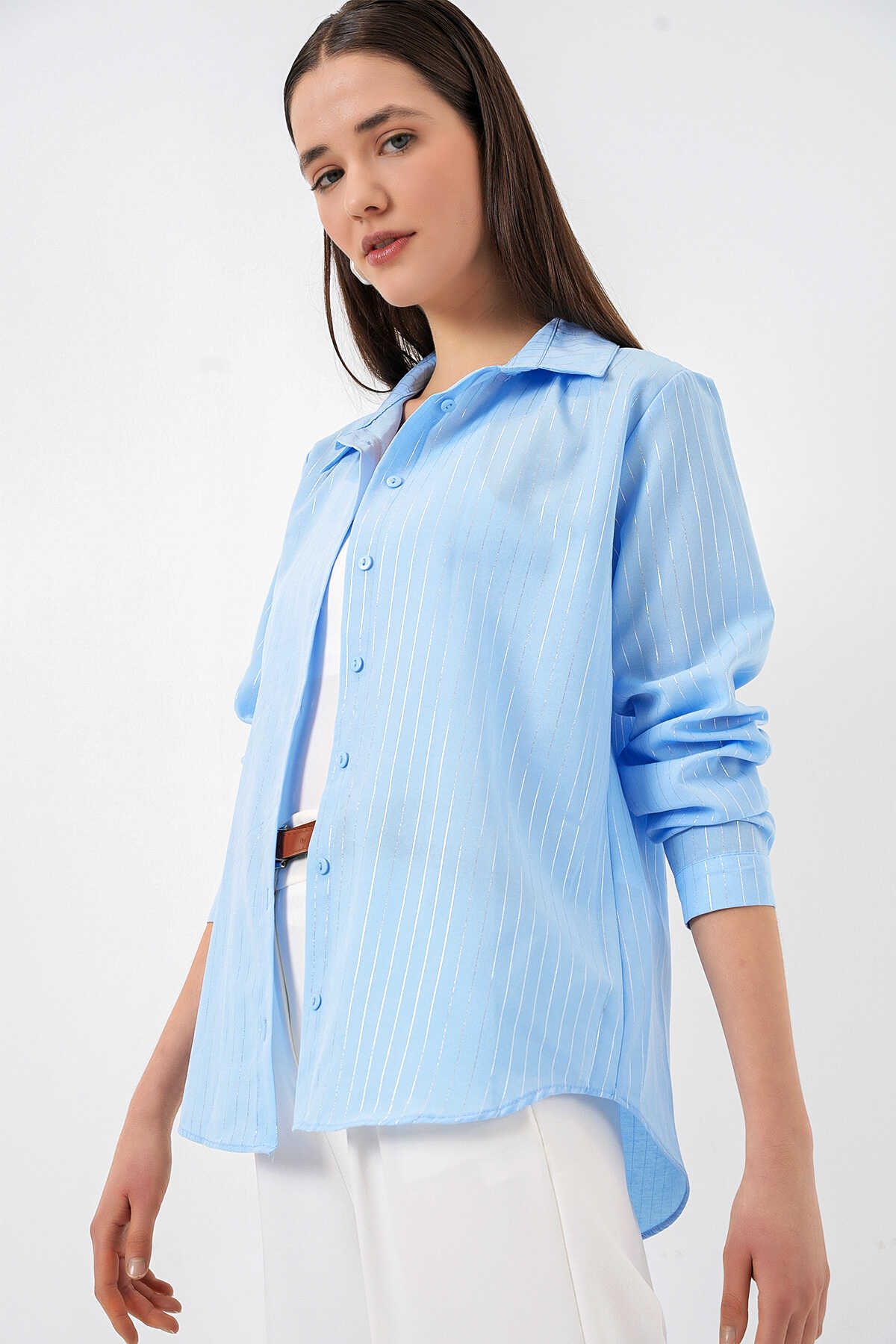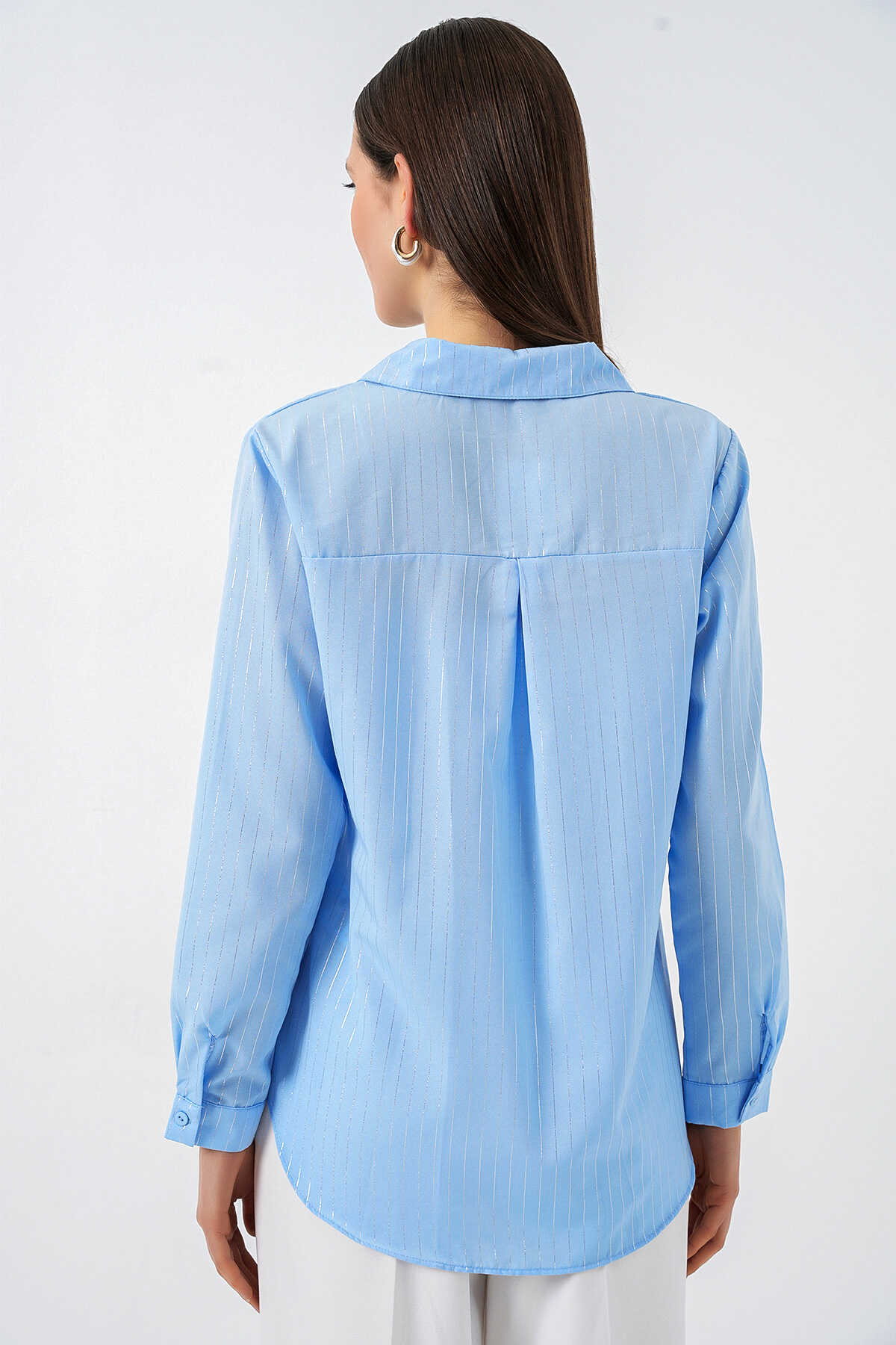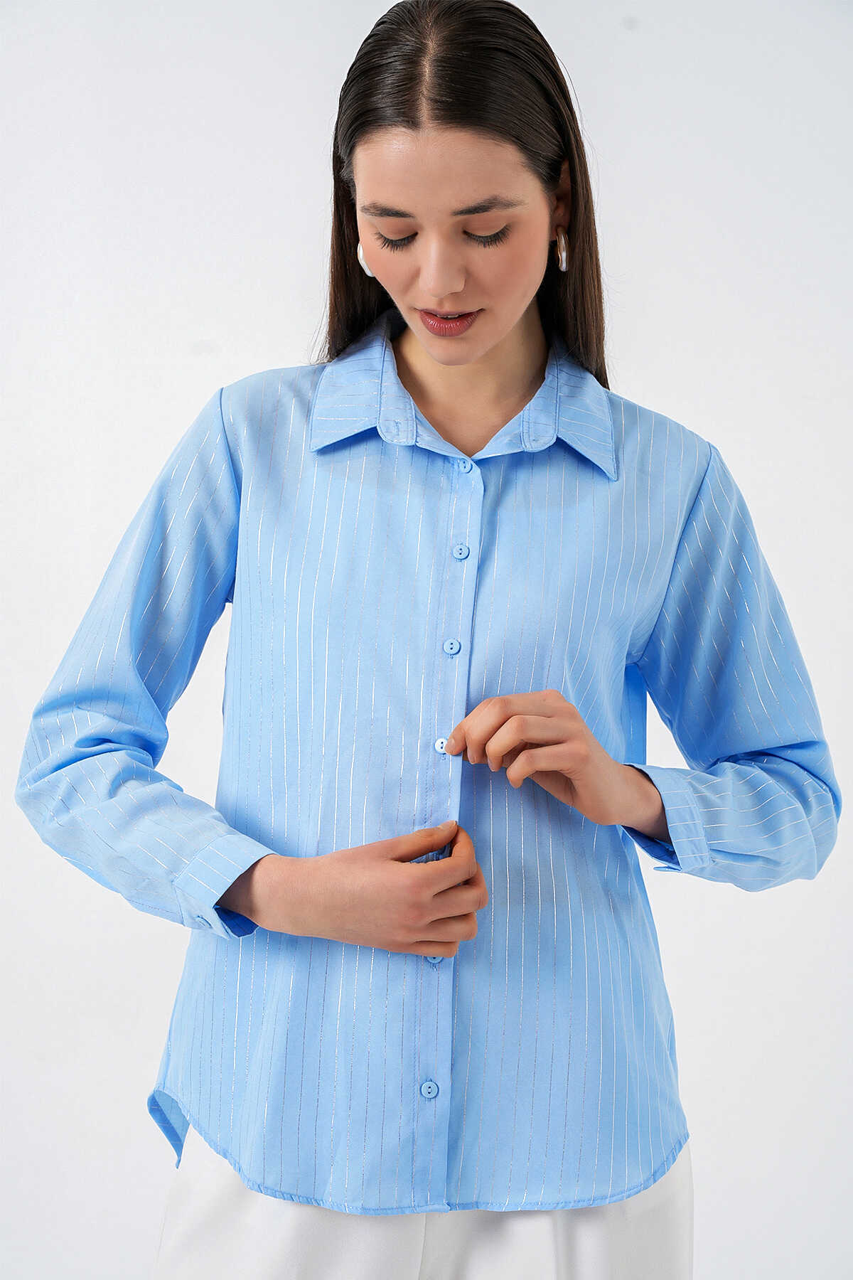 Kadın Varak Desenli Gömlek 20253 - Mavi - Kombin