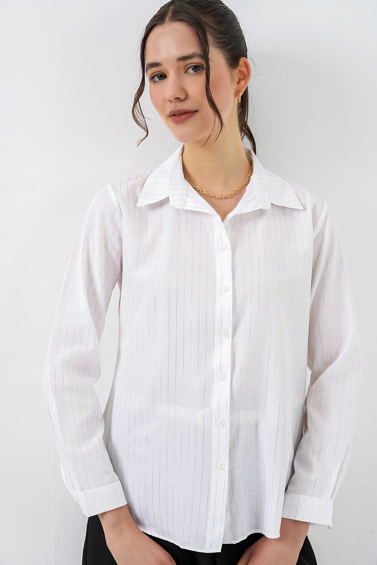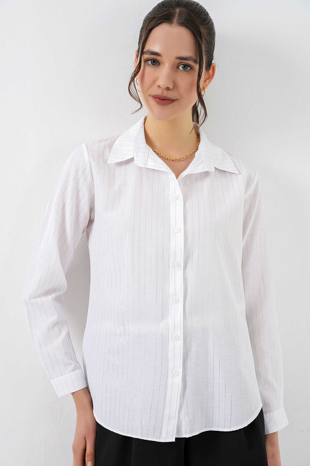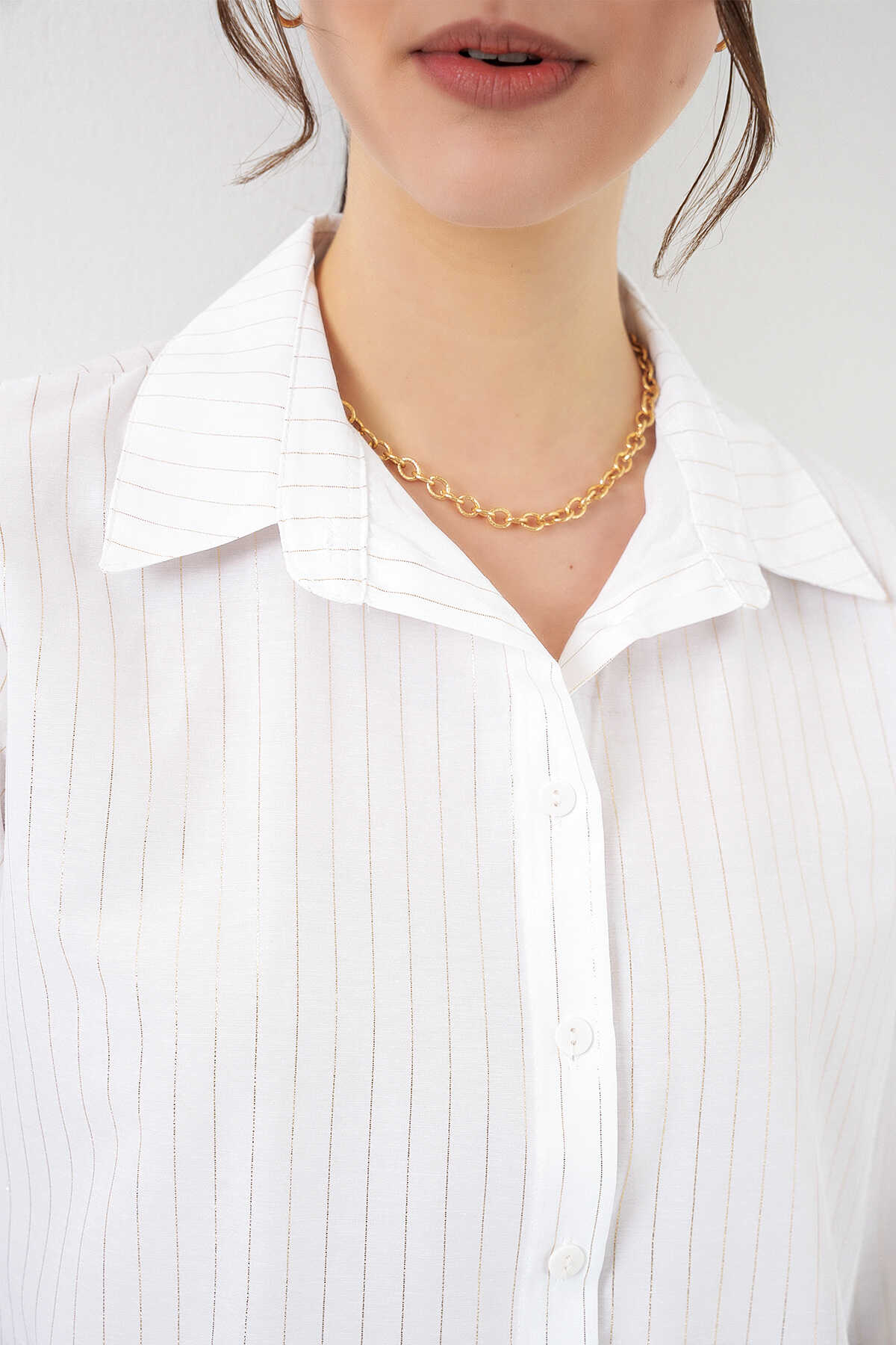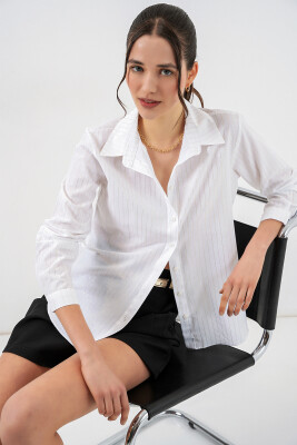 Kadın Varak Desenli Gömlek 20253 - P. Beyaz