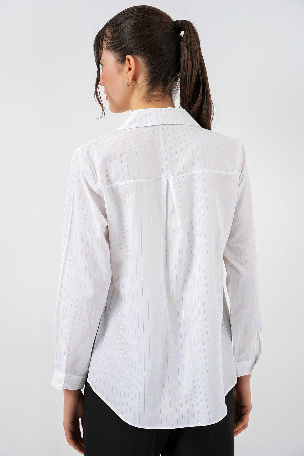 Kadın Varak Desenli Gömlek 20253 - P. Beyaz - Kombin