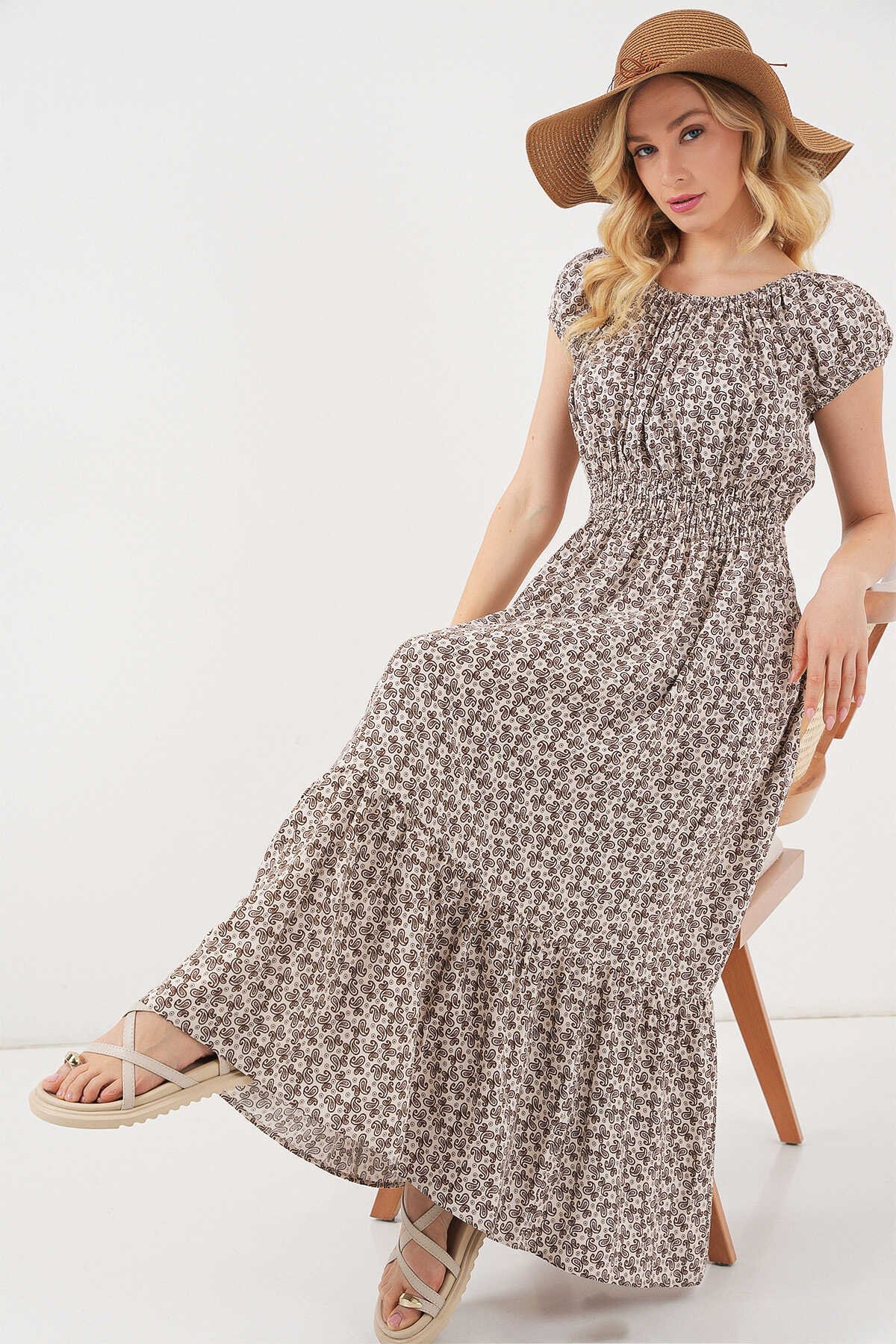 Kadın Yakası Büzgü Detaylı Elbise 2544 - Kahverengi - Kombin