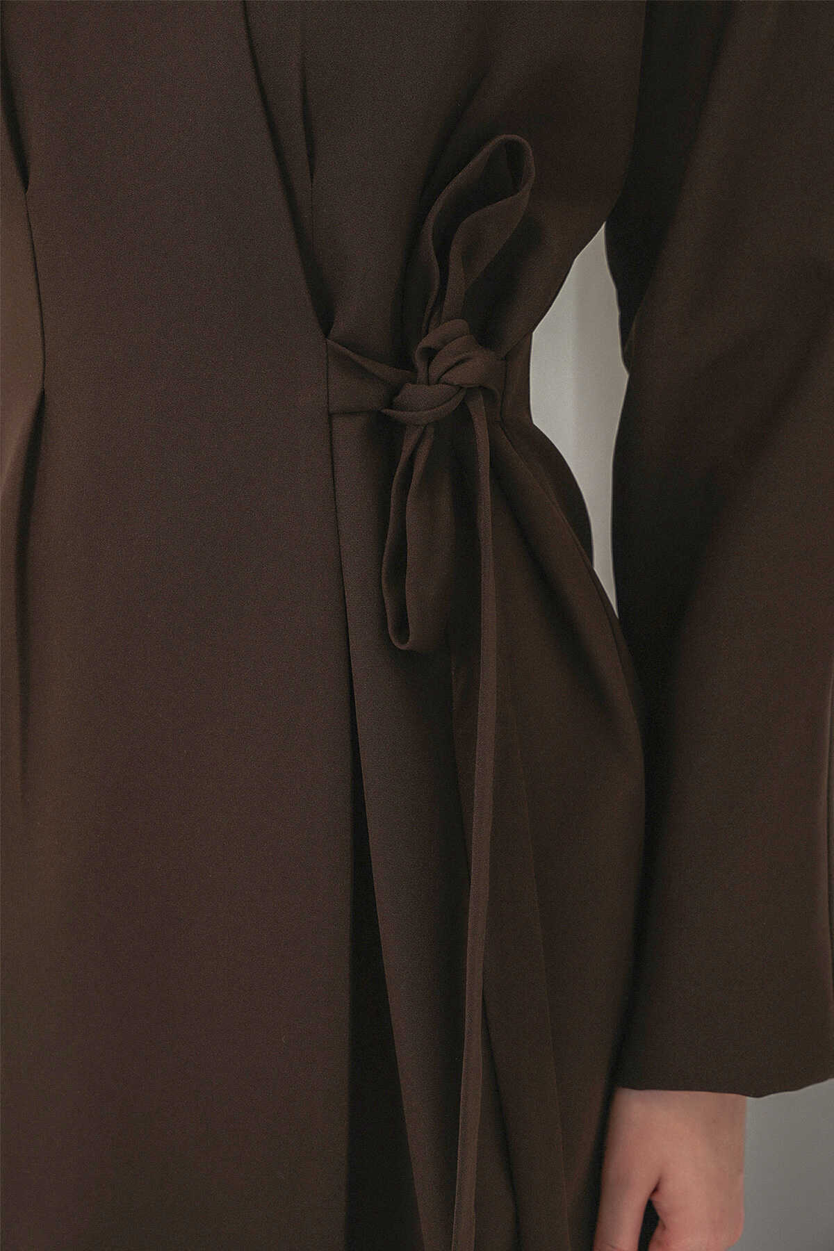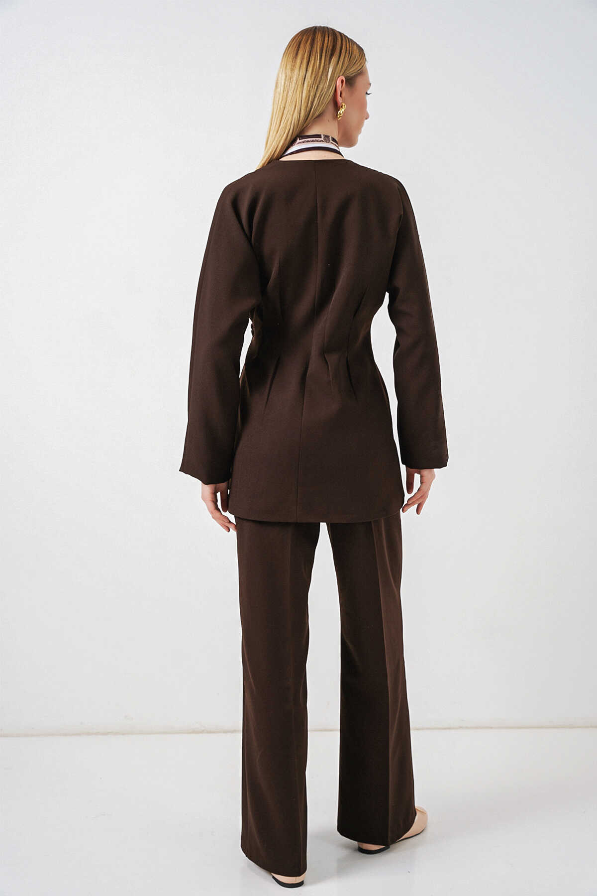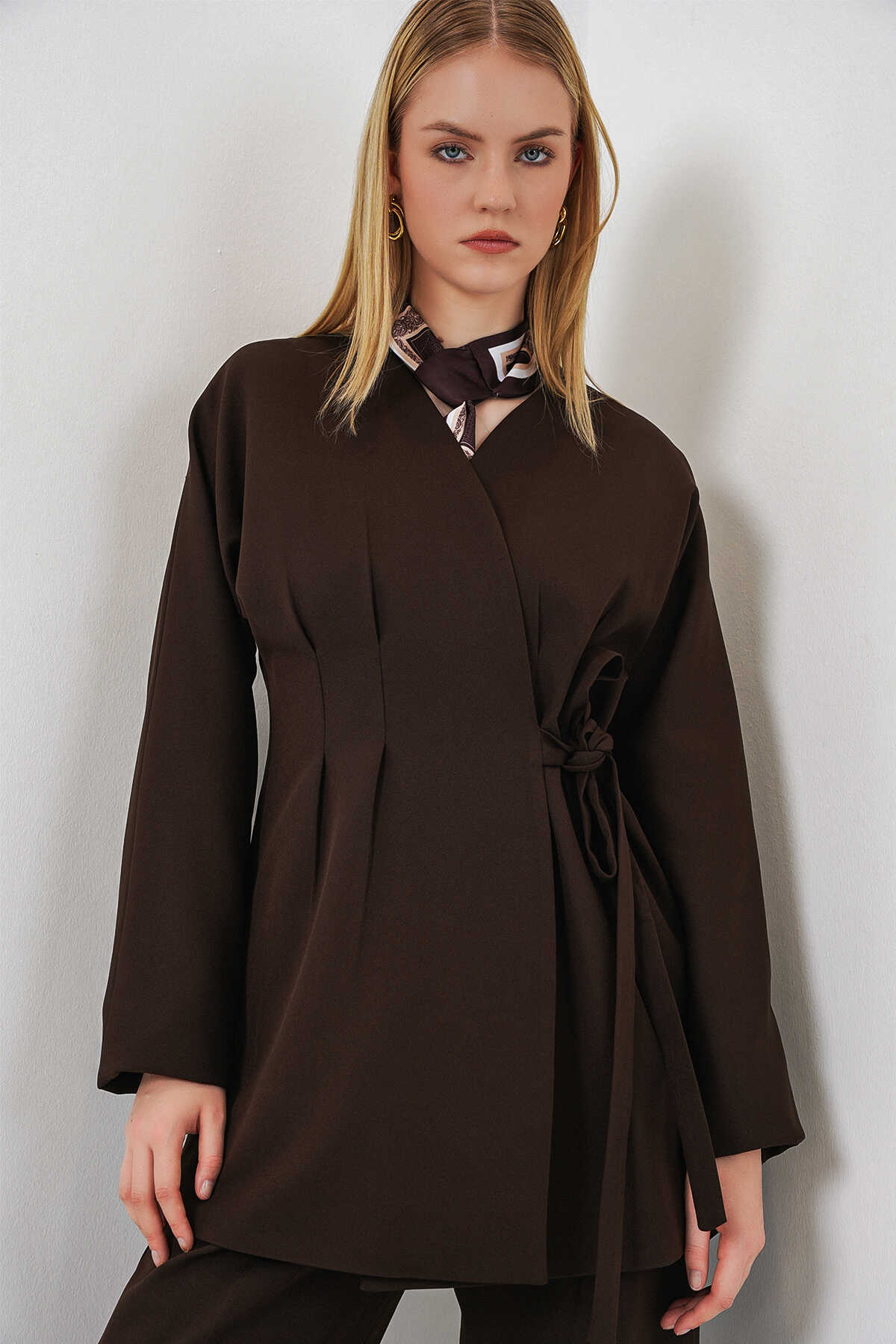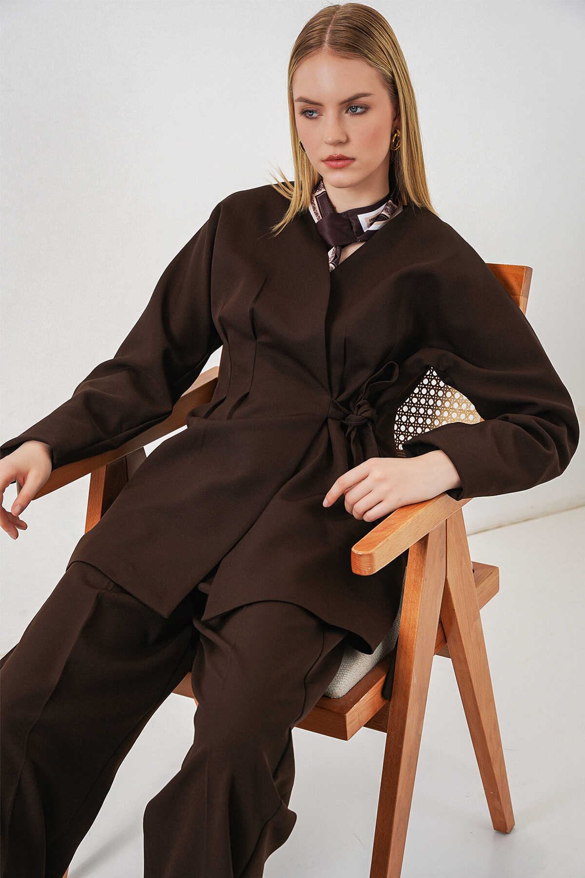 Kadın Yandan Bağlamalı Ceket Pantolon İkili Takım 30099 - Kahverengi - Kombin