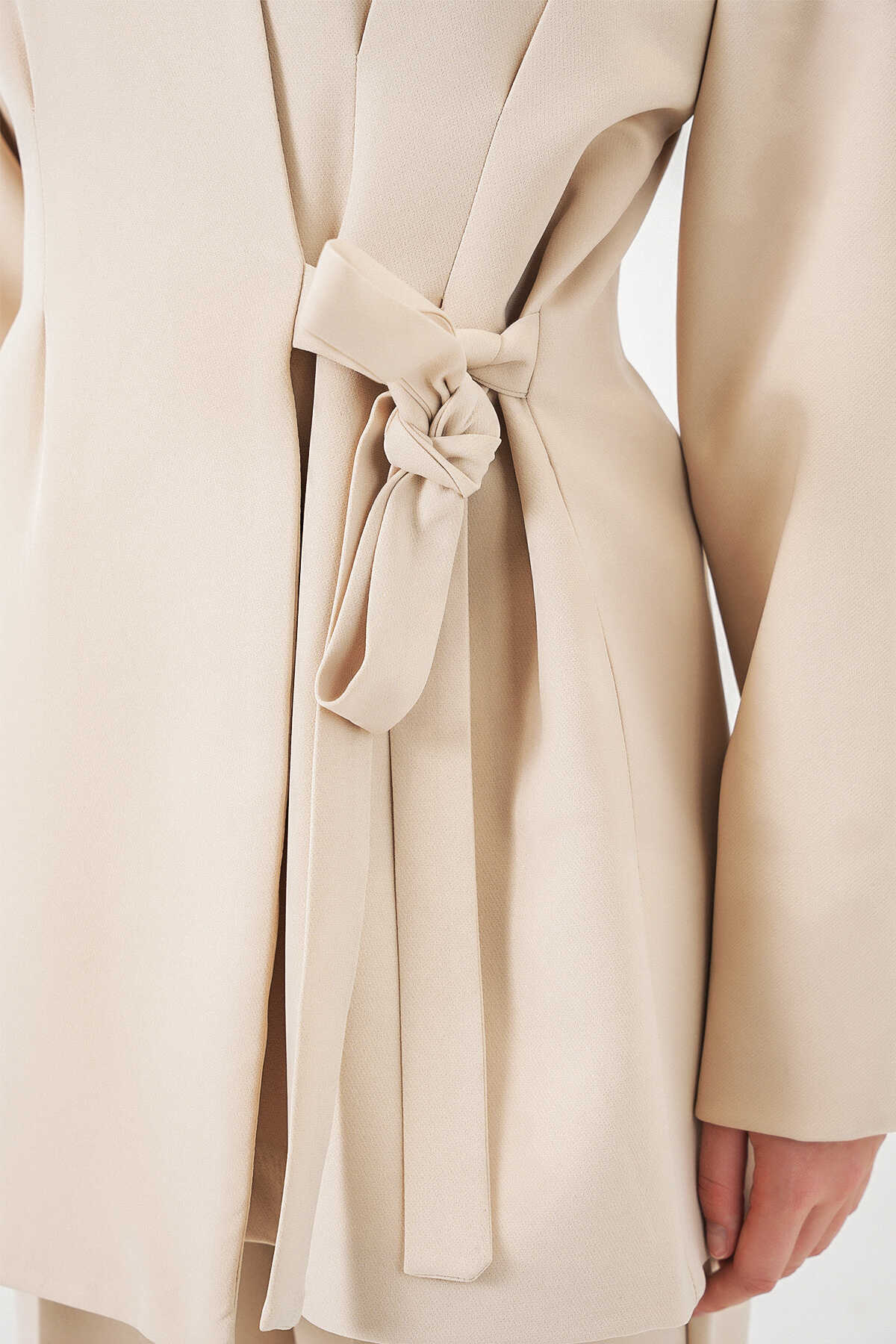 Kadın Yandan Bağlamalı Ceket Pantolon İkili Takım 30099 - Krem