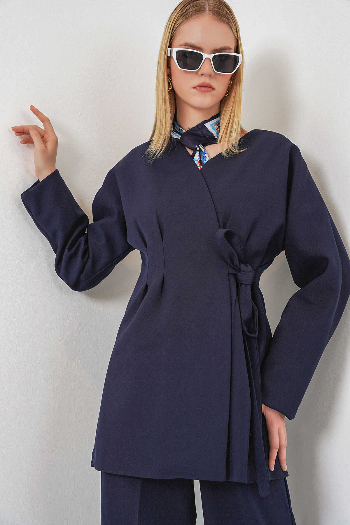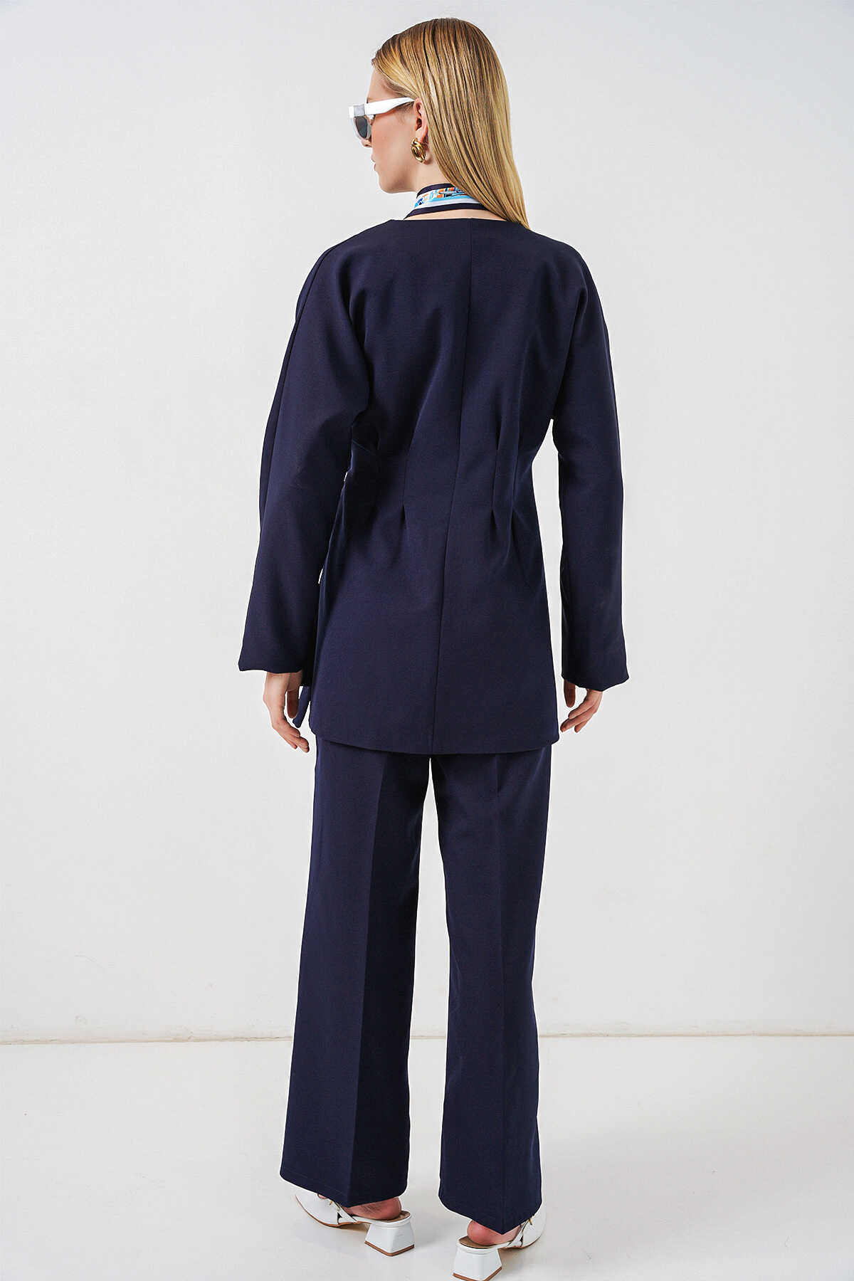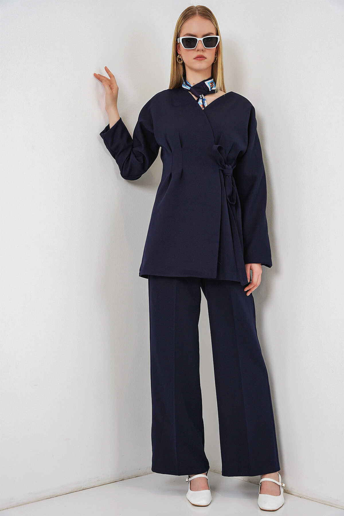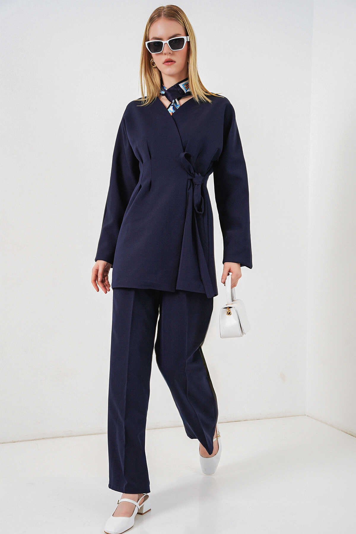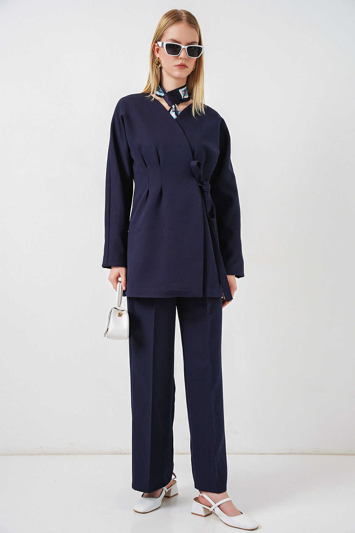 Kadın Yandan Bağlamalı Ceket Pantolon İkili Takım 30099 - Lacivert - Kombin