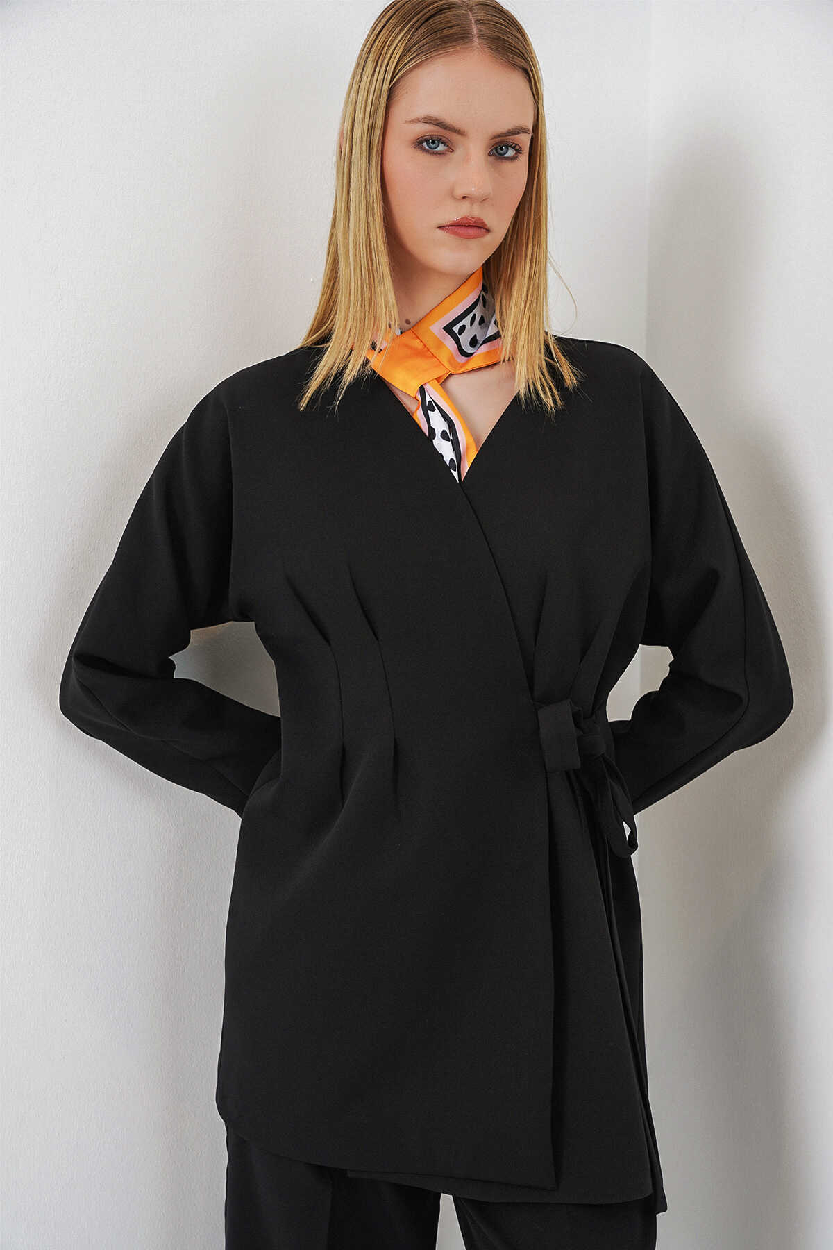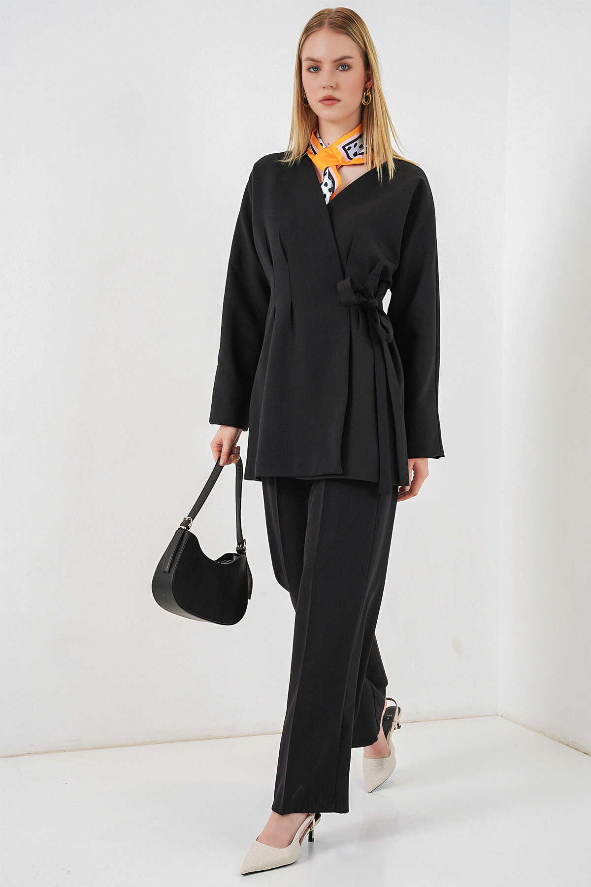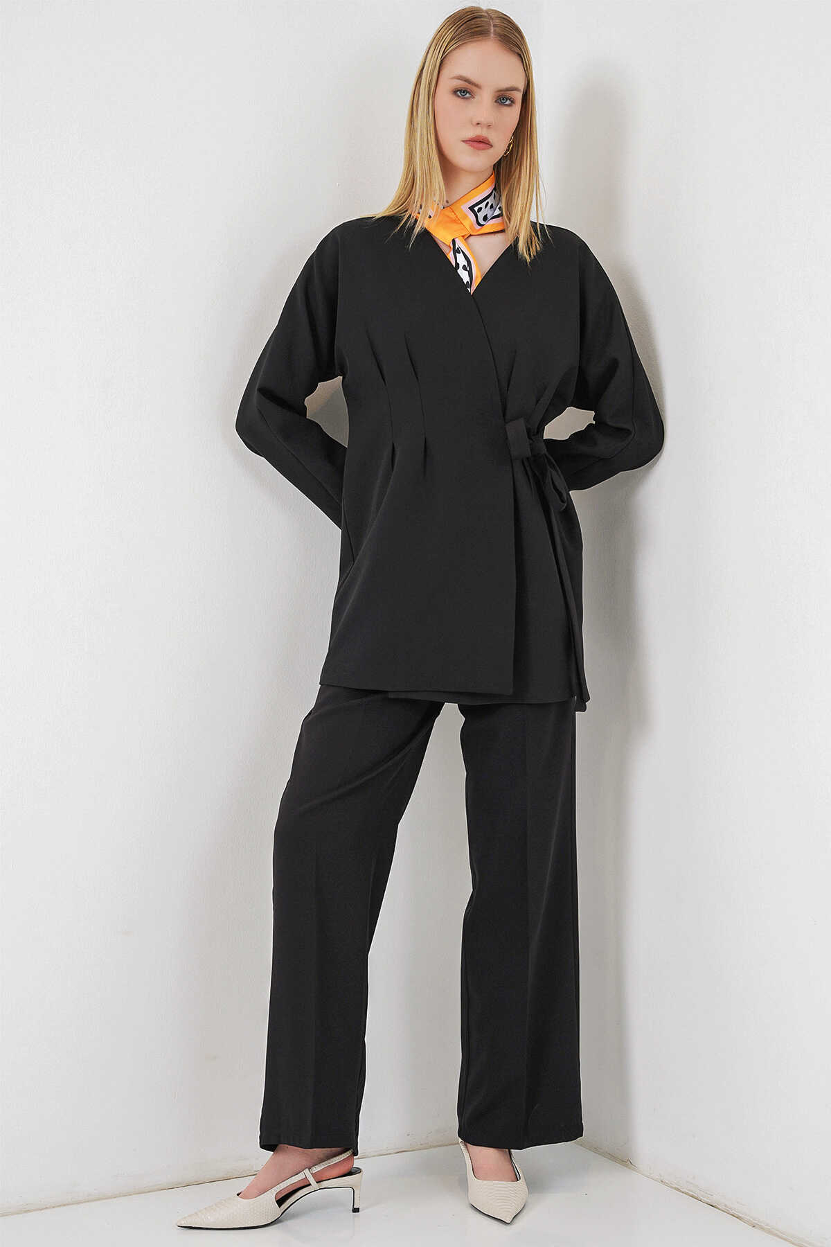 Kadin Yandan Baglamali Ceket Pantolon Ikili Takim 30099