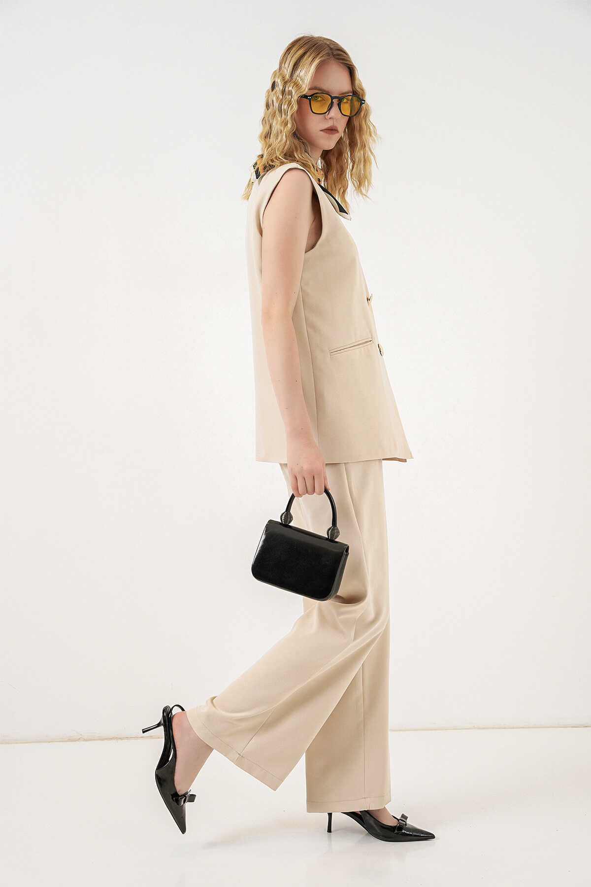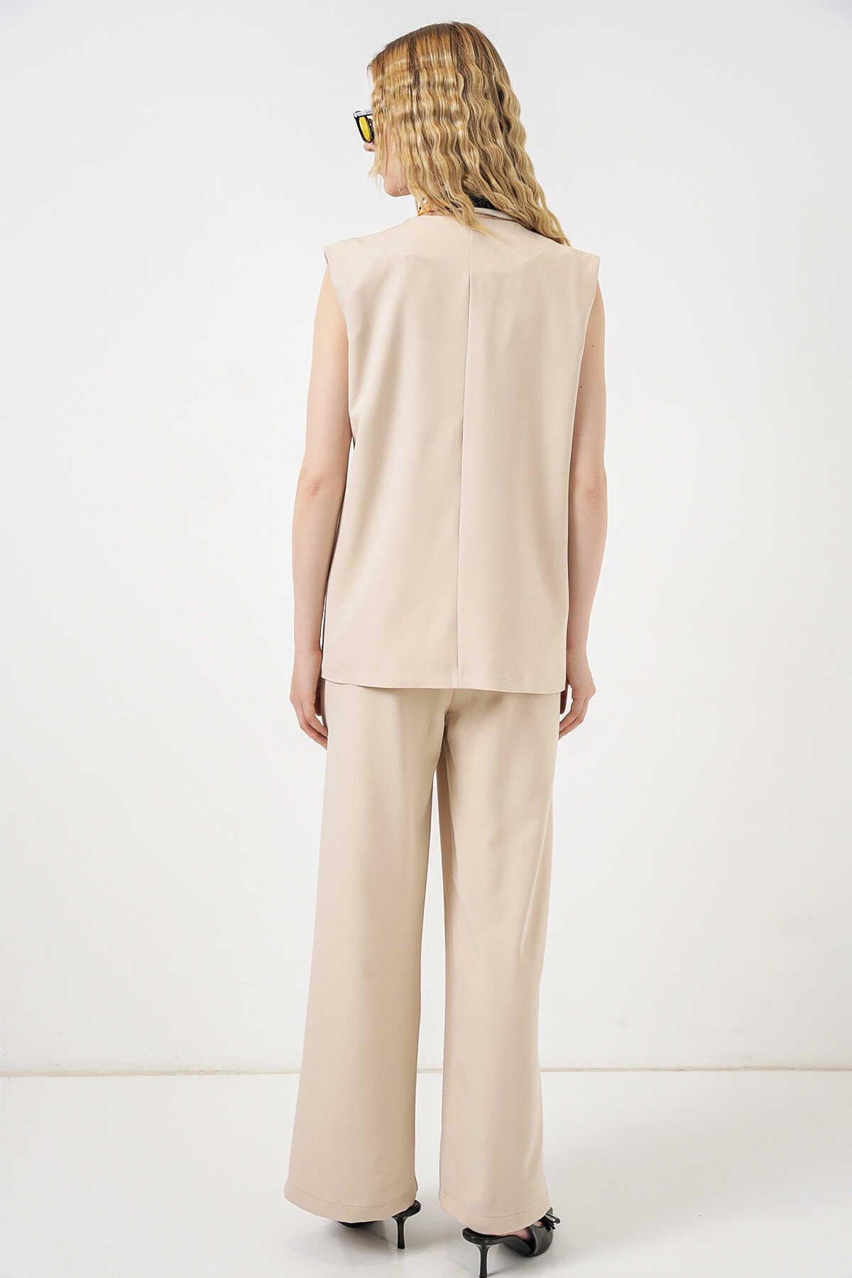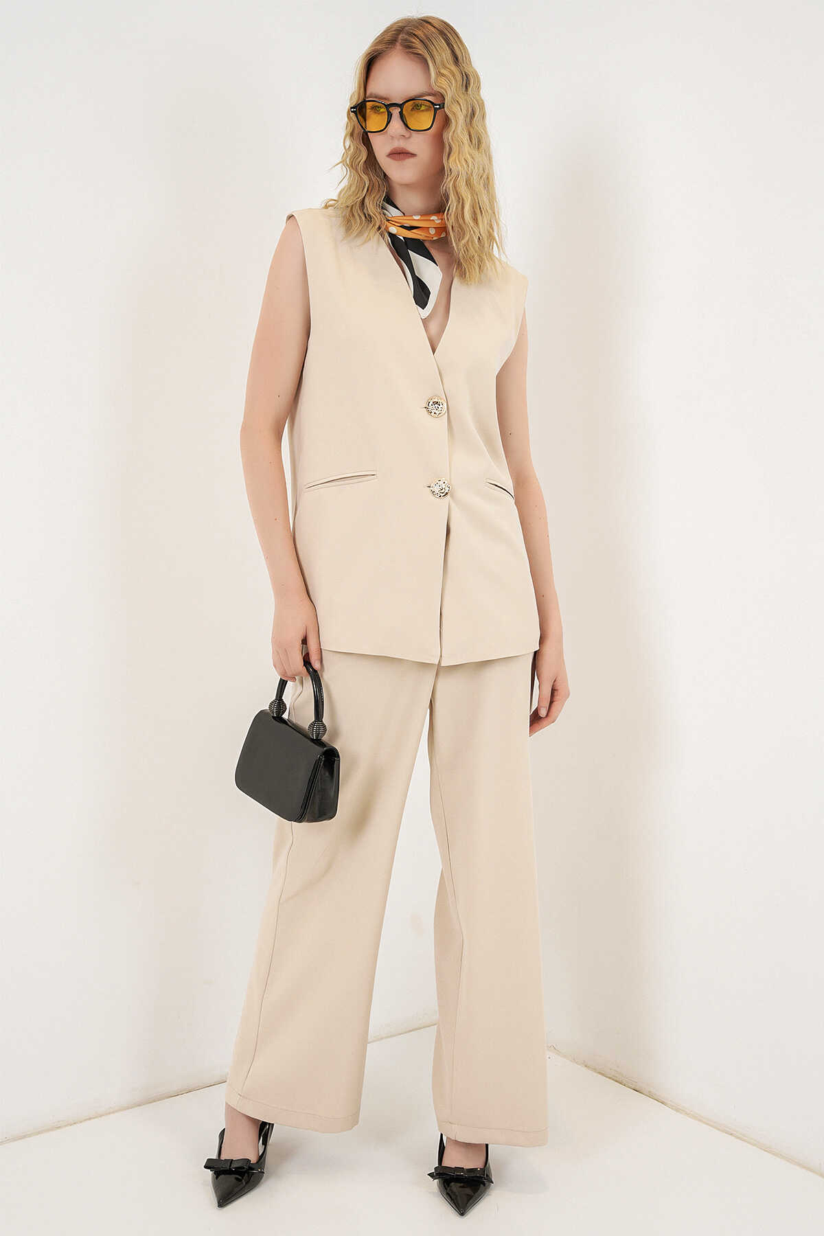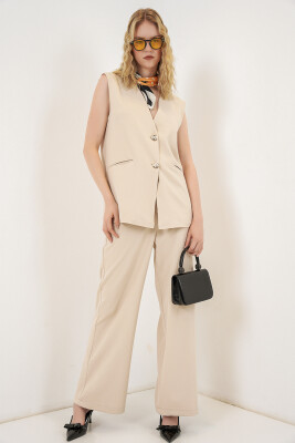 Kadın Yelek Pantolon İkili Takım 30086 - Bej - Kombin