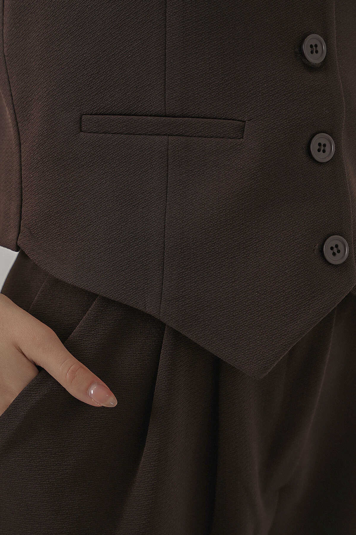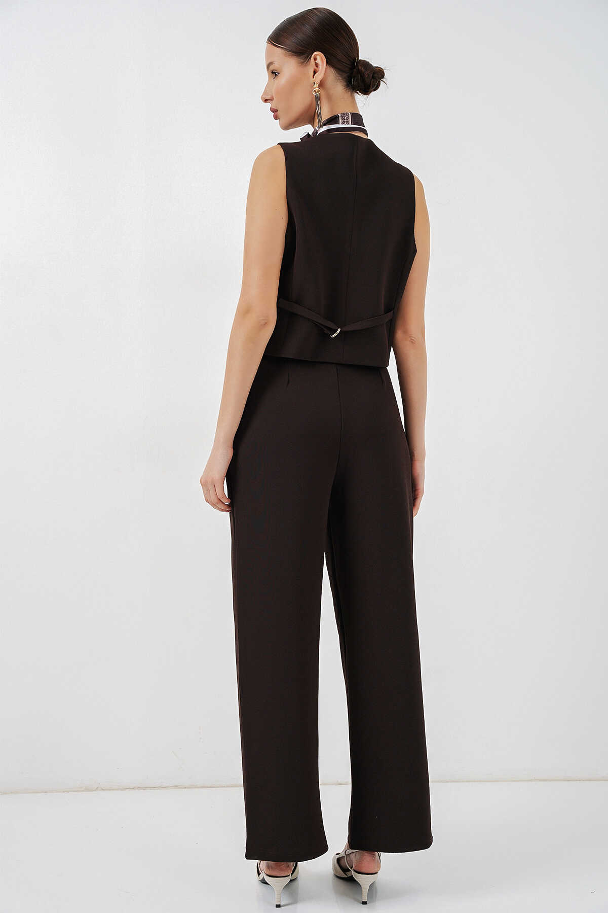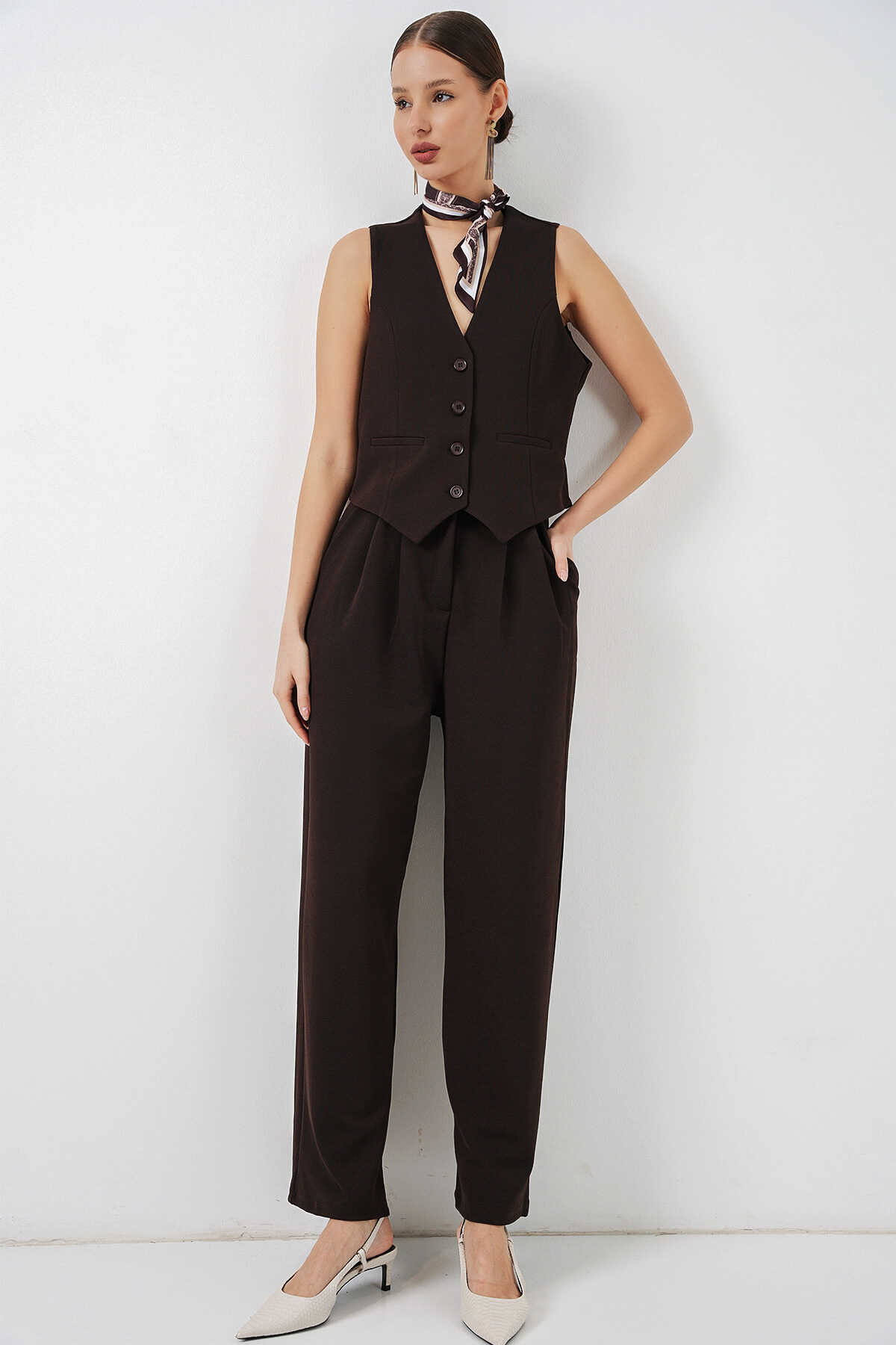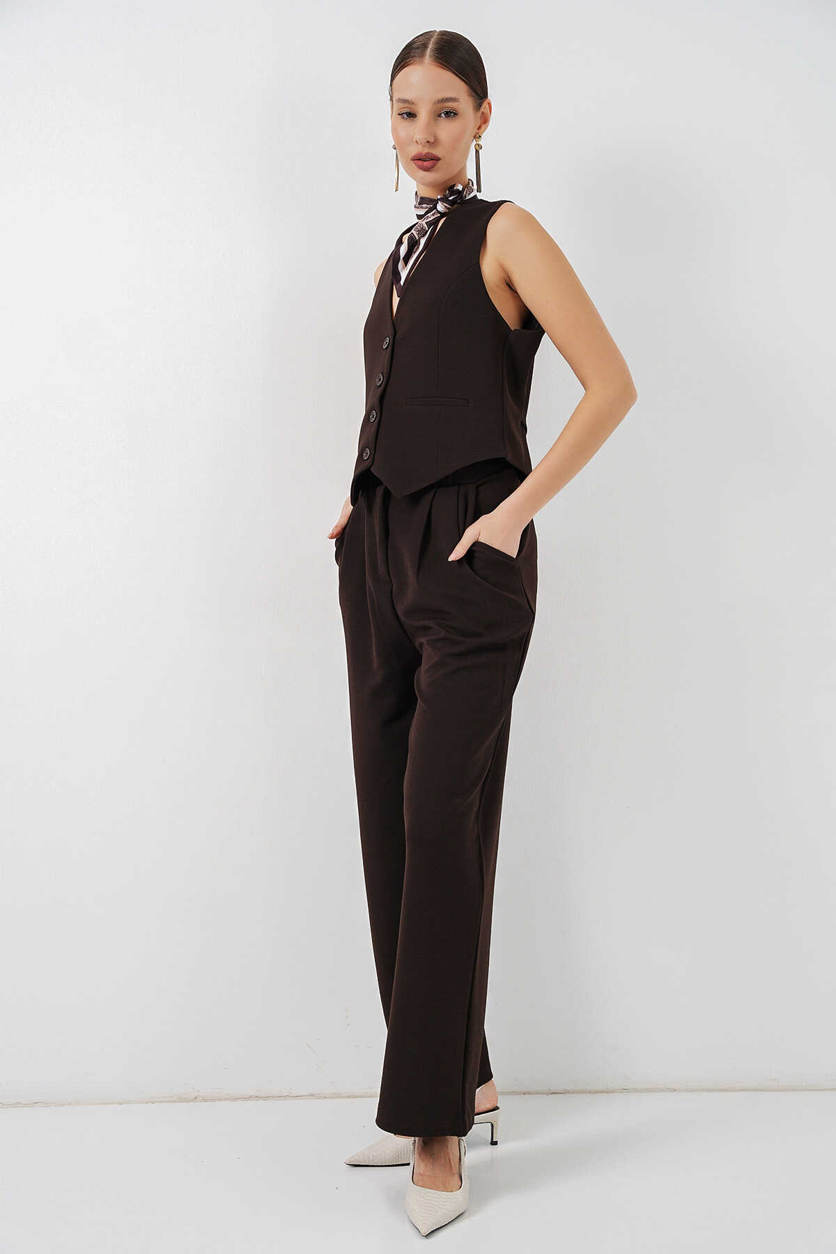 Kadın Yelek Pantolon İkili Takım 30091 - Kahverengi - Kombin
