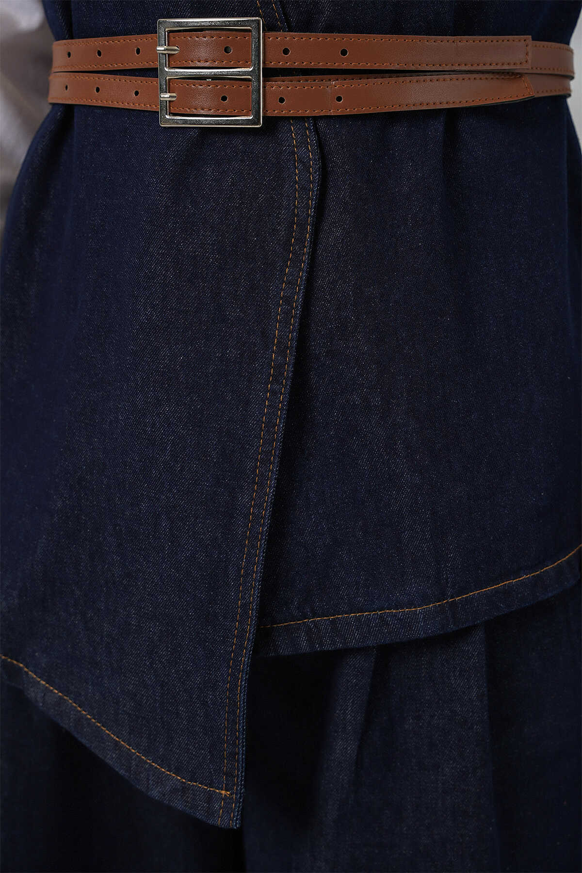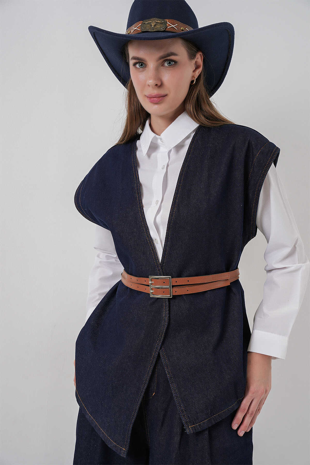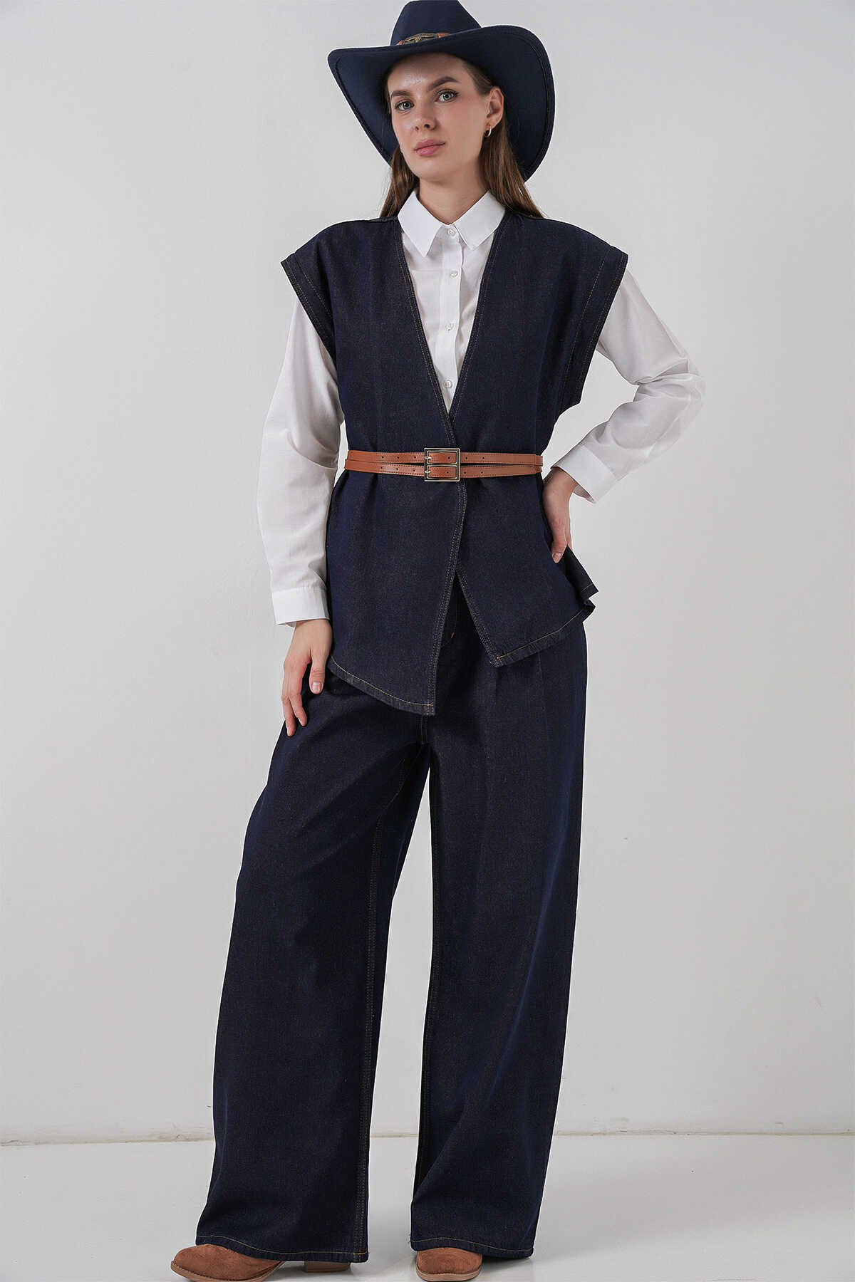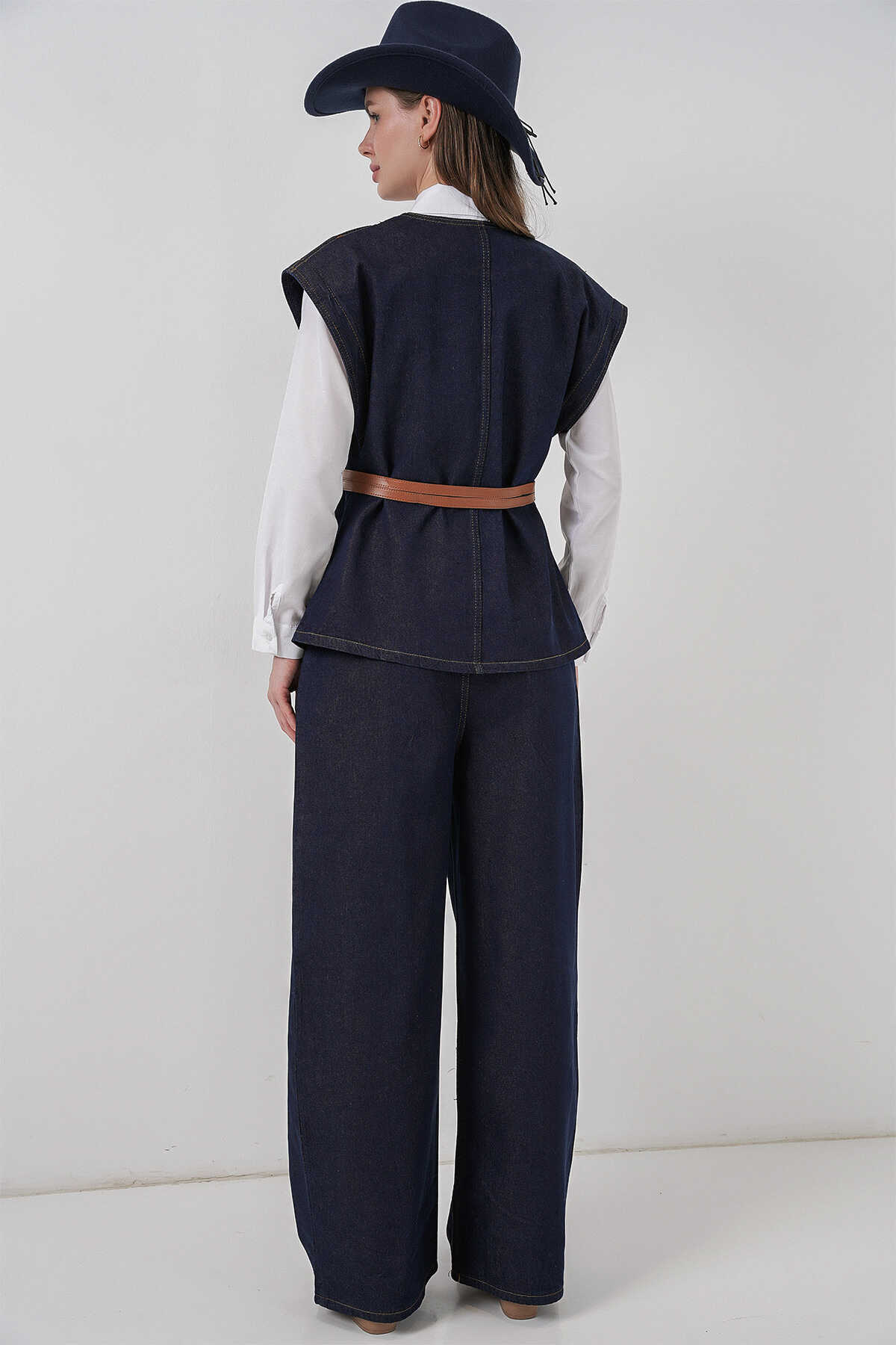 Kadın Yelek Pantolon Kot İkili Takım 30062 - Koyu Mavi - Kombin