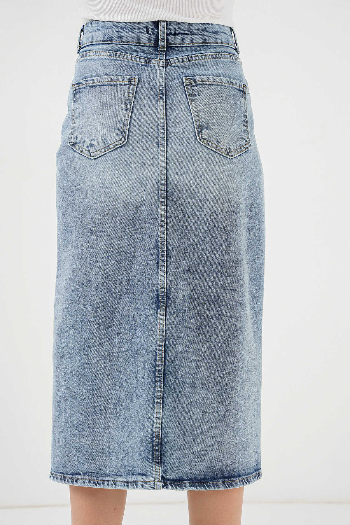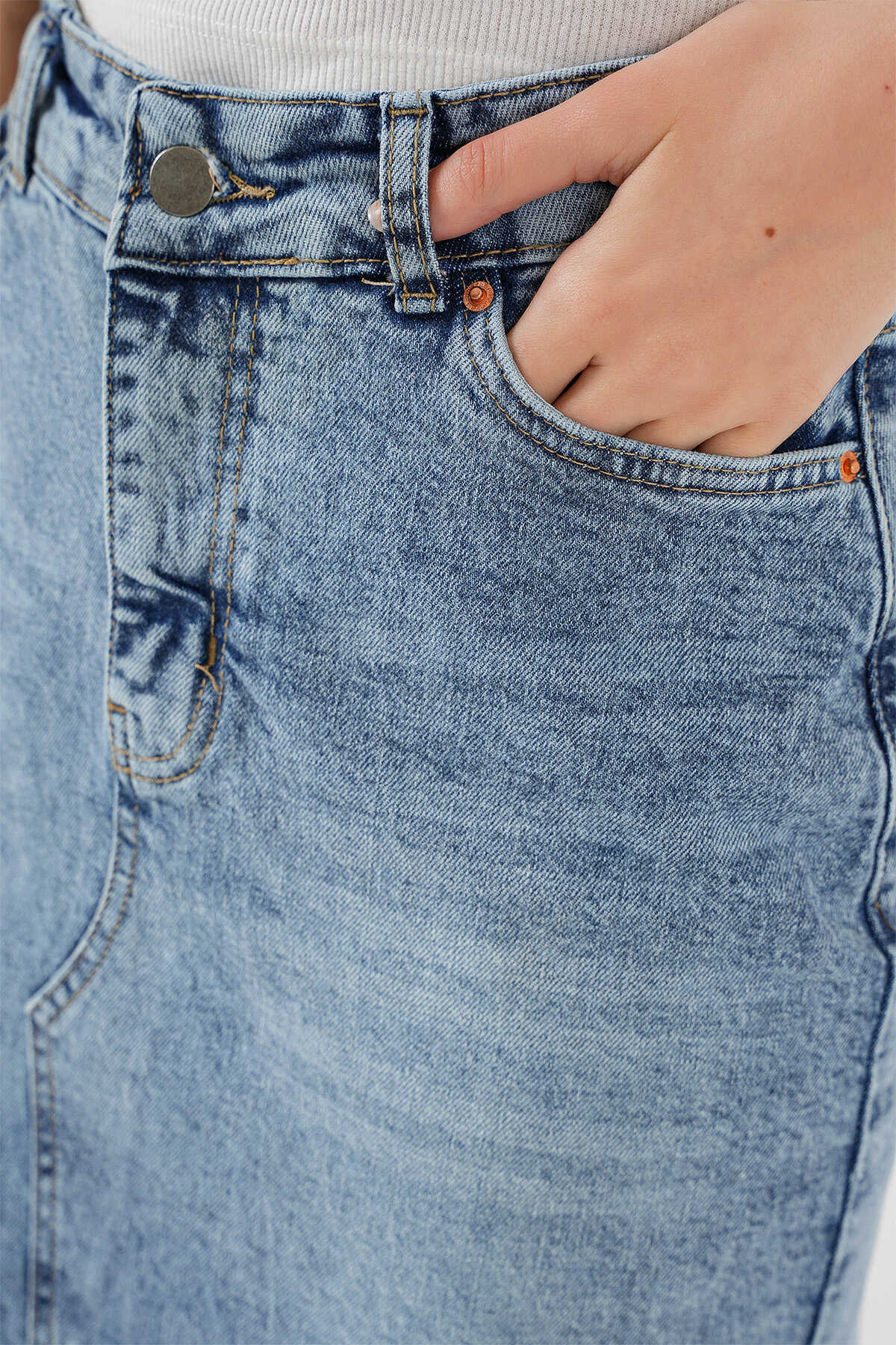 Kadın Yırtmaçlı Midi Kot Etek 8038 - Mavi