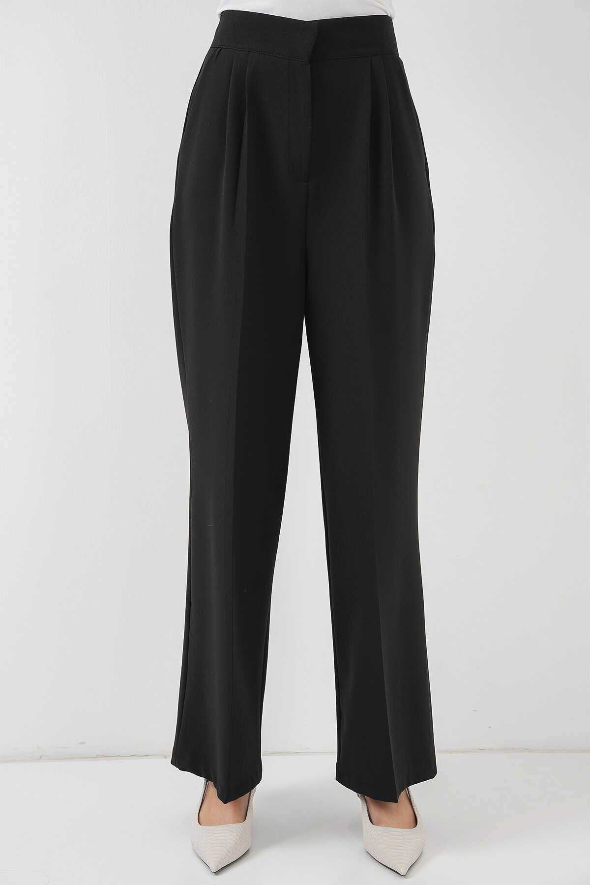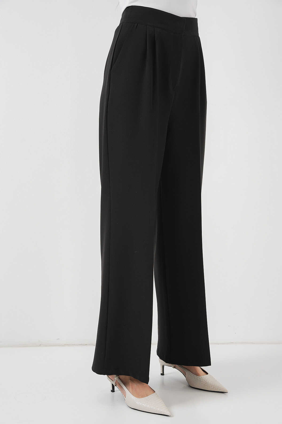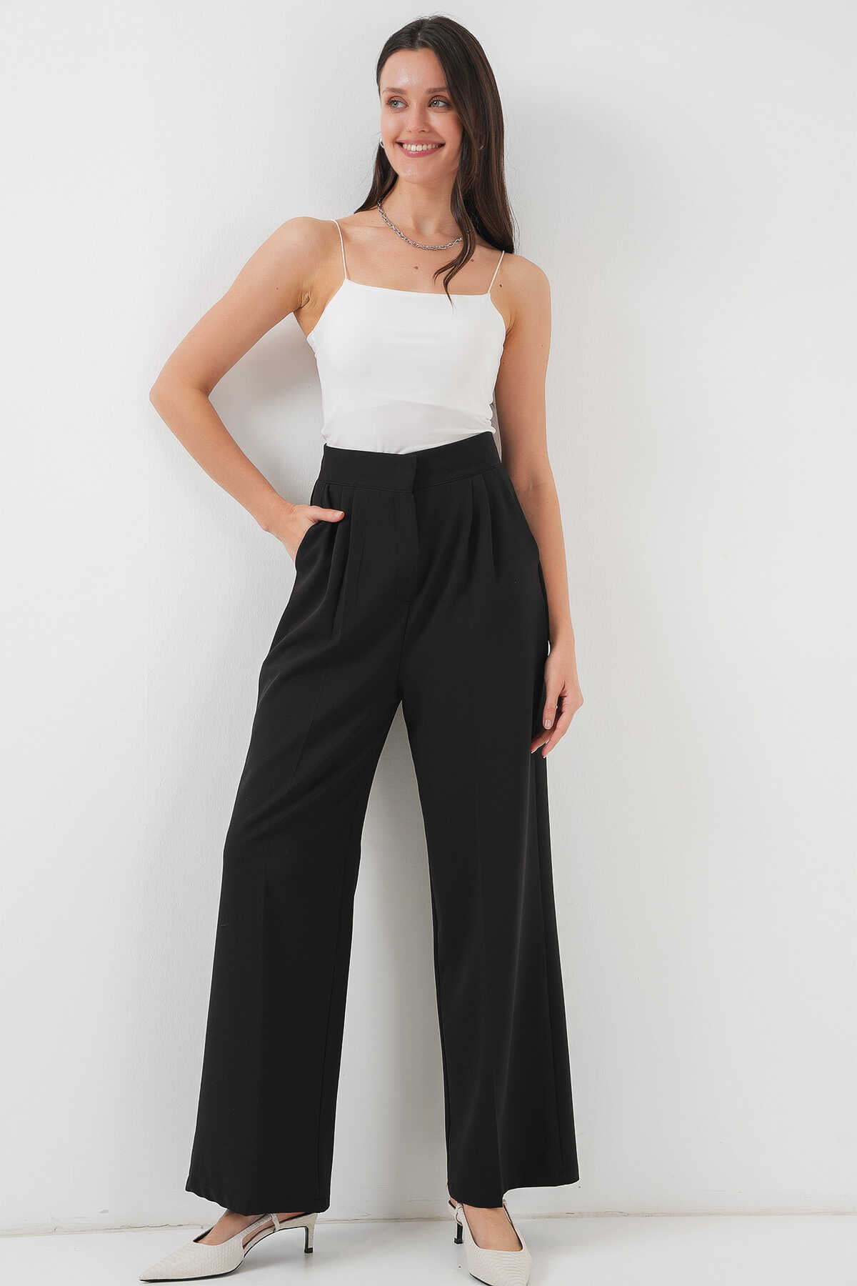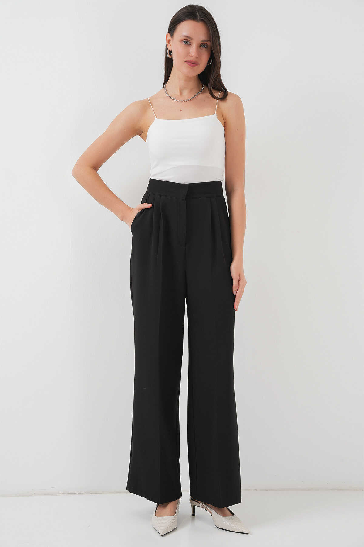 Kadın Yüksek Bel Bol Kumaş Pantolon 6697 - Siyah - Kombin