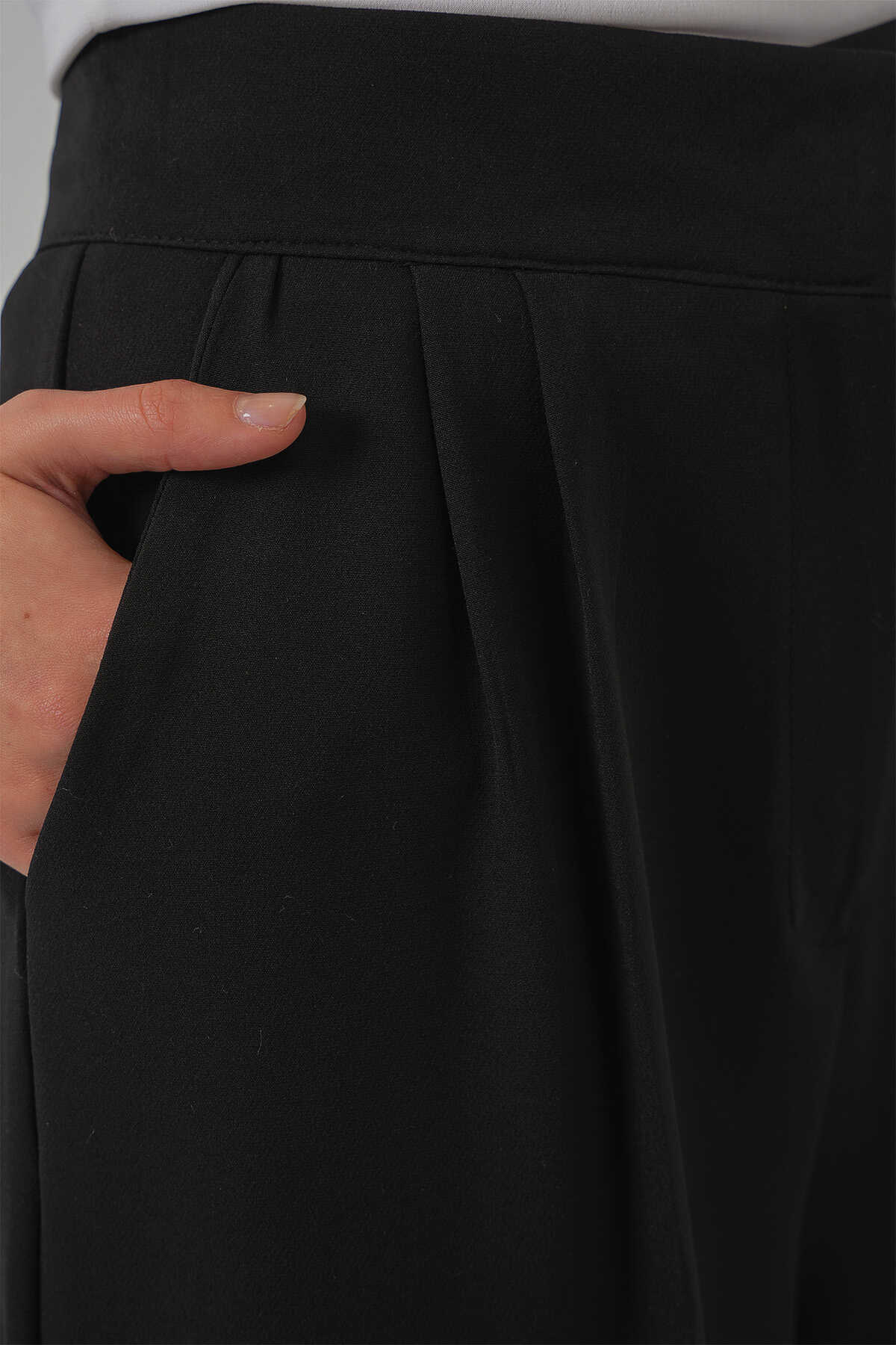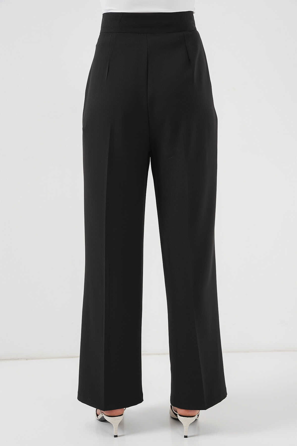 Kadın Yüksek Bel Bol Kumaş Pantolon 6697 - Siyah