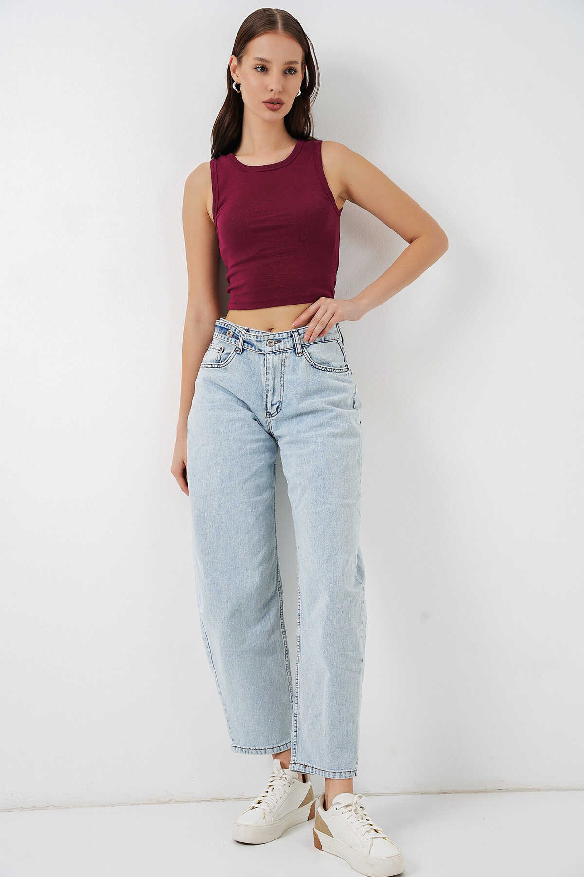 Kadın Yüksek Bel Kot Pantolon 30081 - Buz Mavi - Kombin