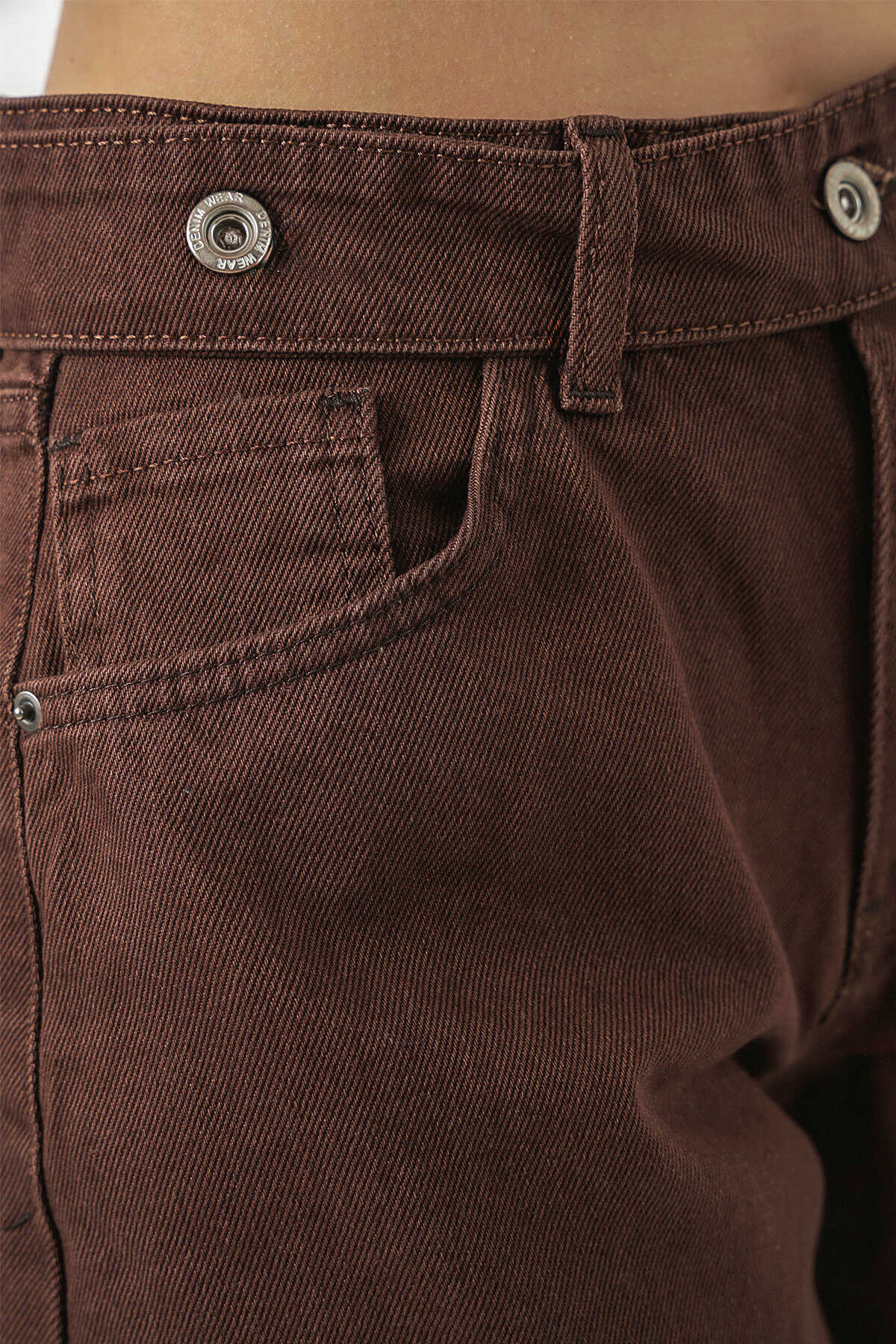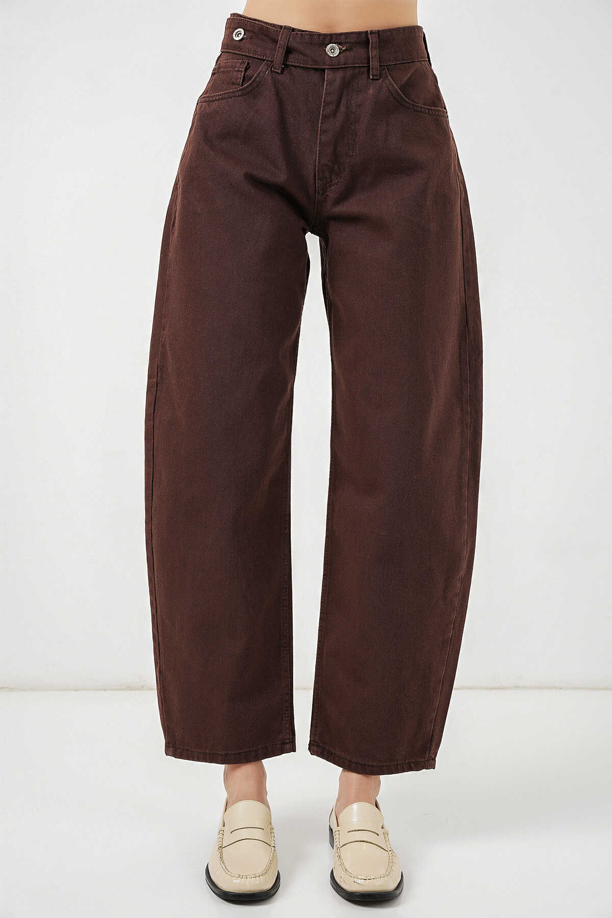 Kadın Yüksek Bel Kot Pantolon 30081 - Kahverengi - Kombin