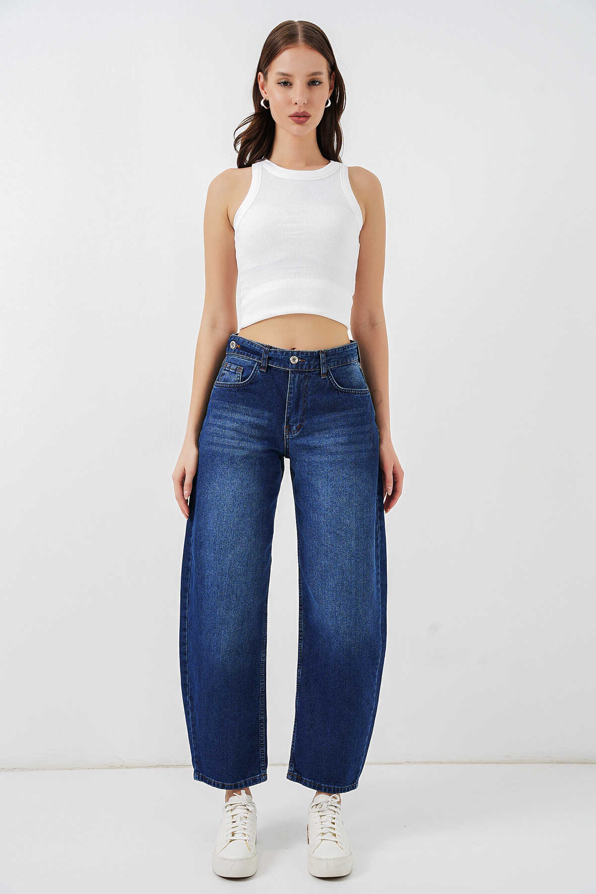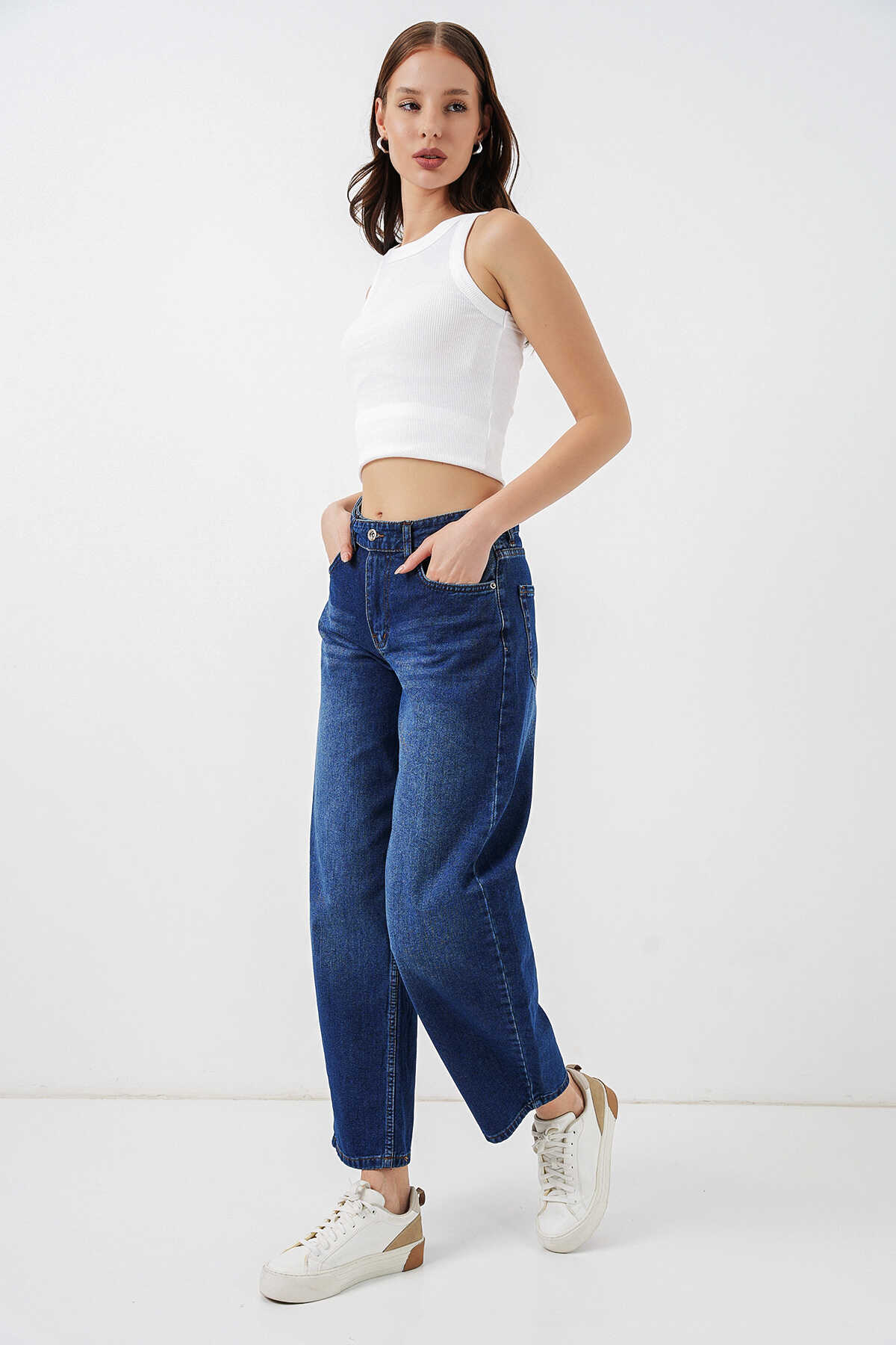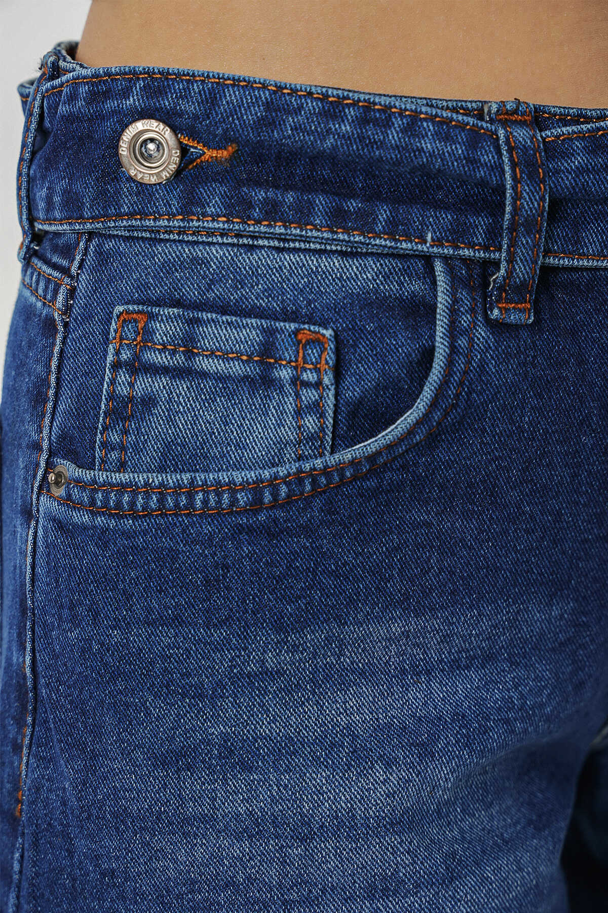 Kadın Yüksek Bel Kot Pantolon 30081 - Lacivert - Kombin