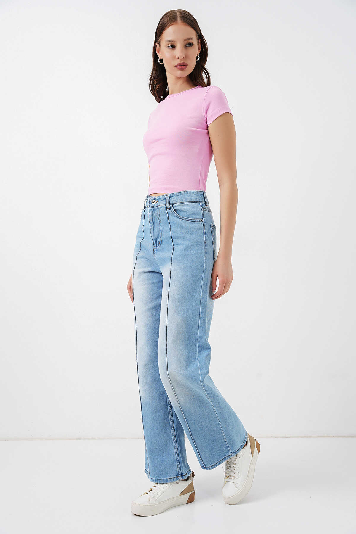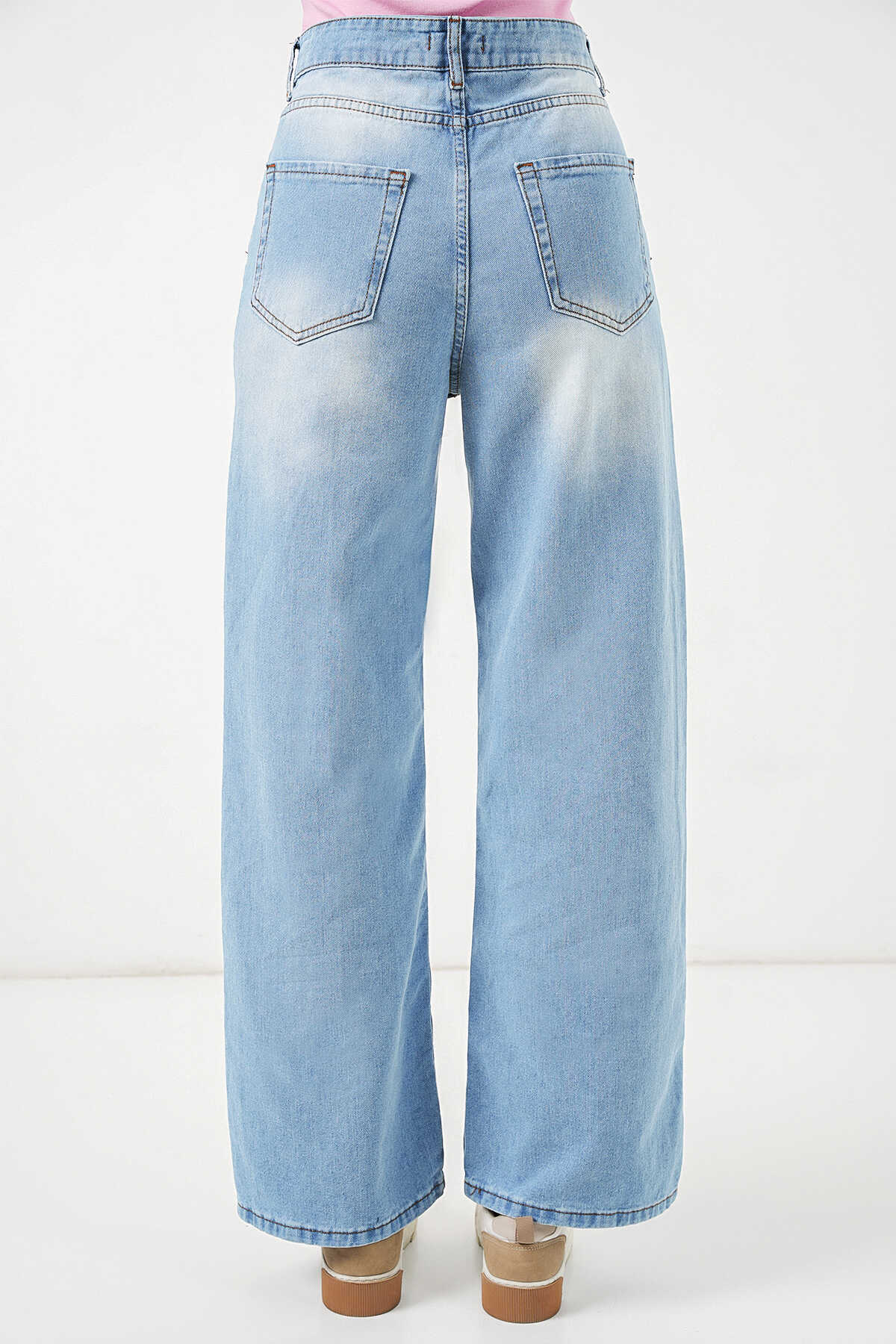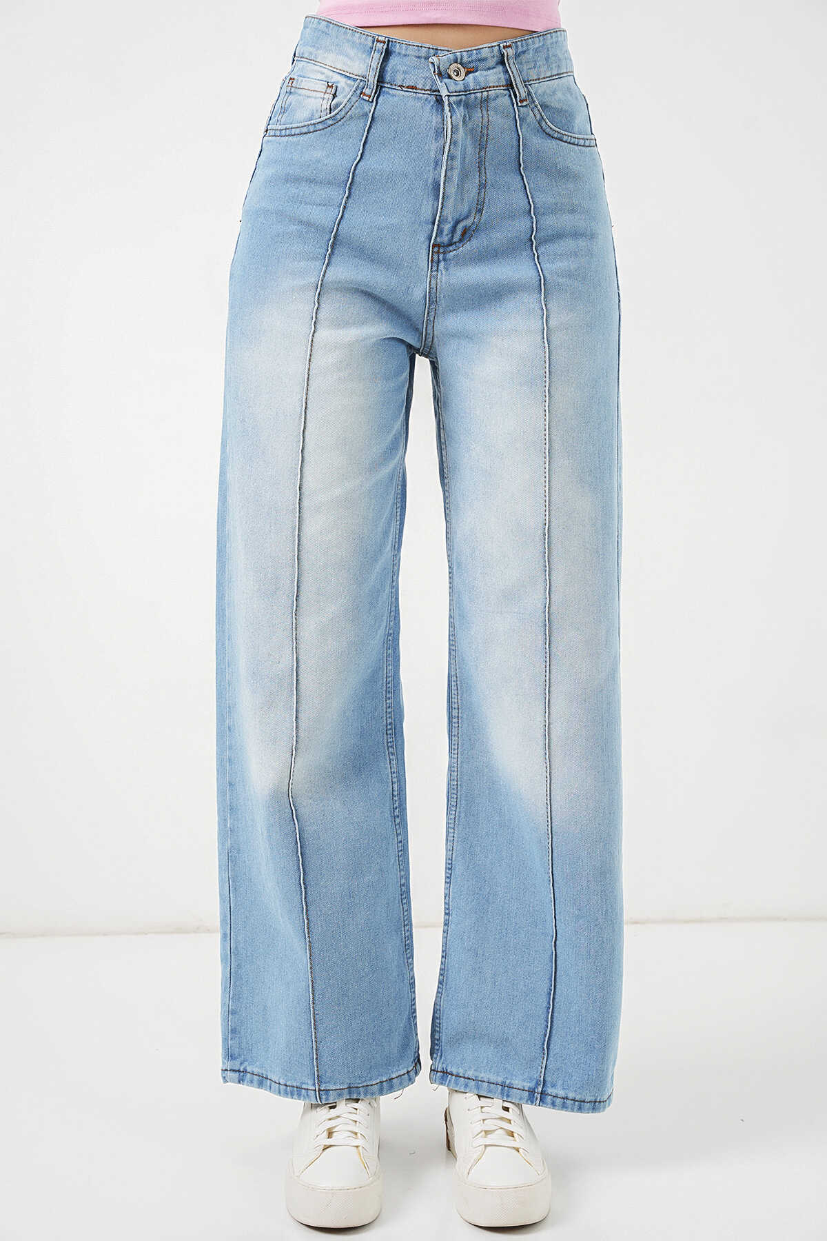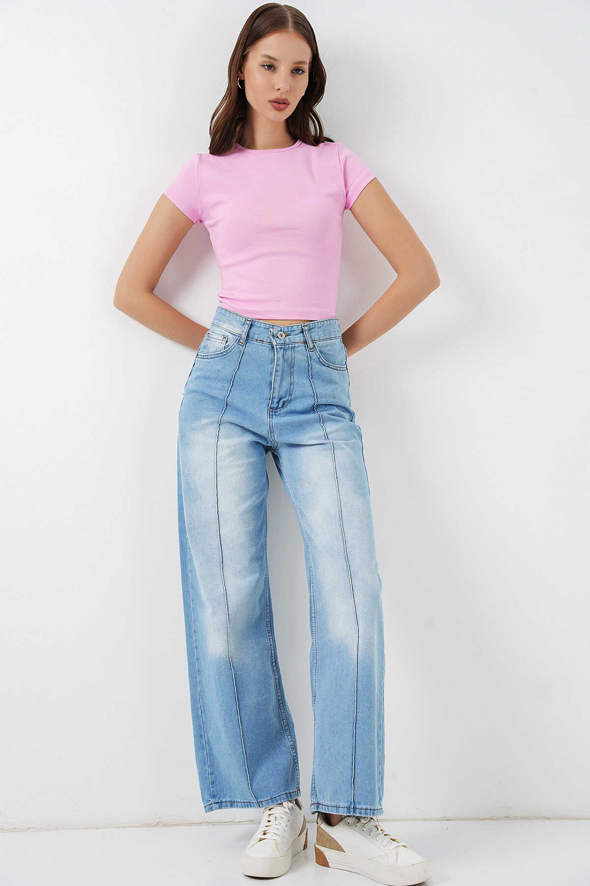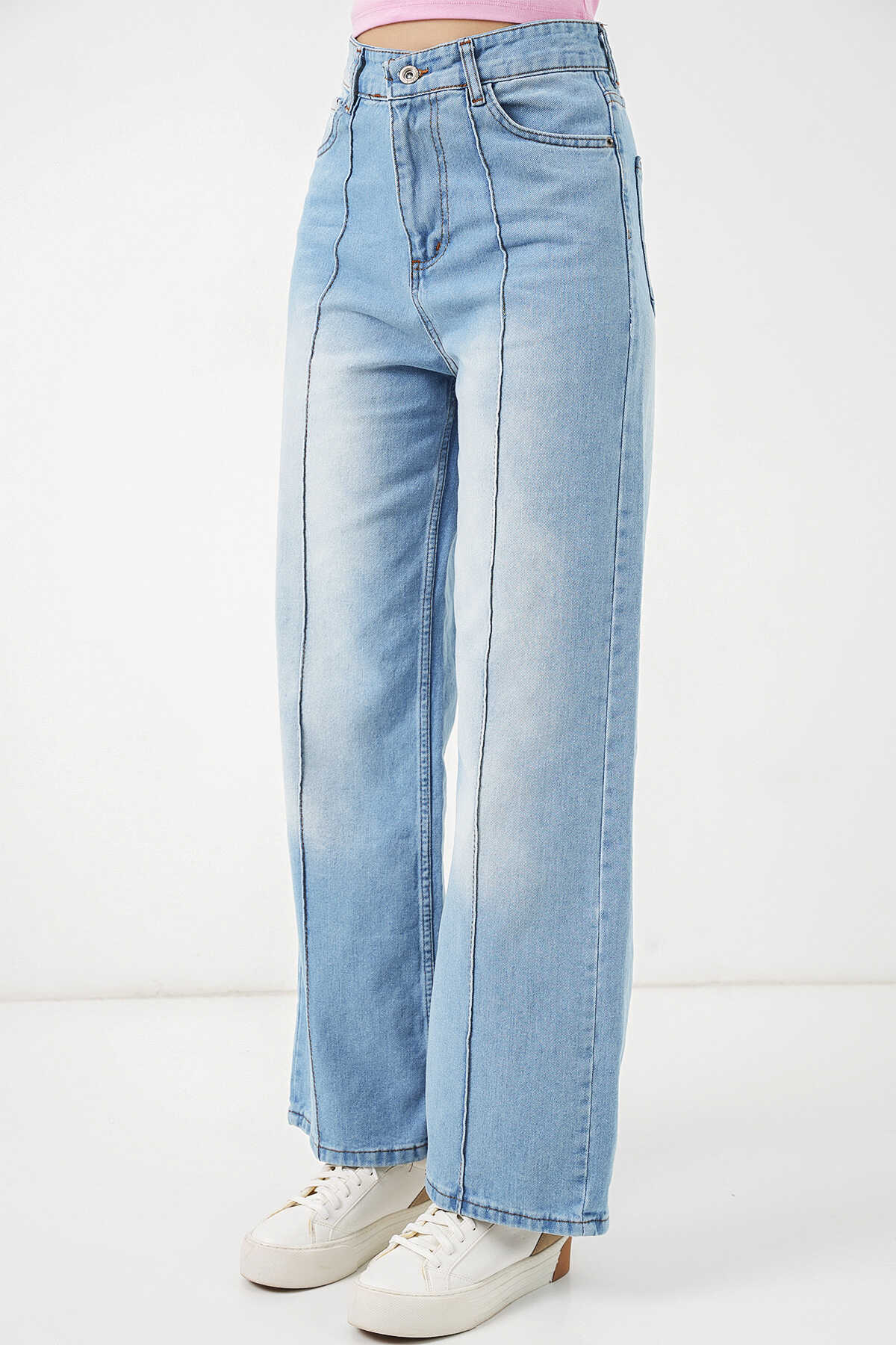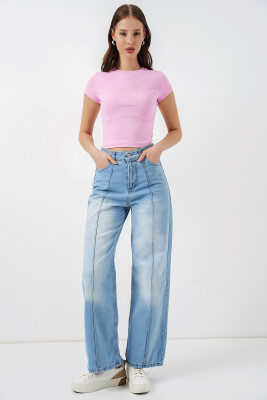 Kadın Yüksek Bel Kot Pantolon 30082 - Açık Mavi - Kombin