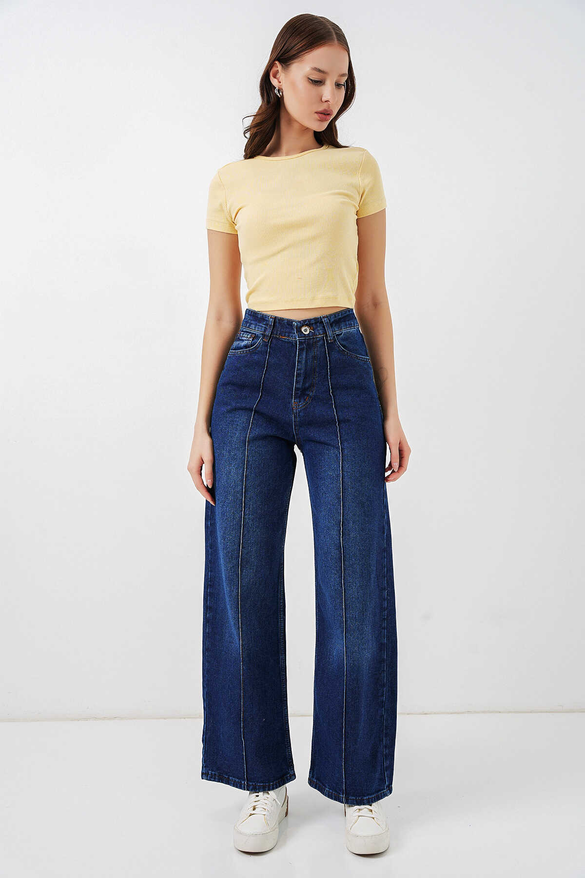 Kadın Yüksek Bel Kot Pantolon 30082 - Lacivert - Kombin