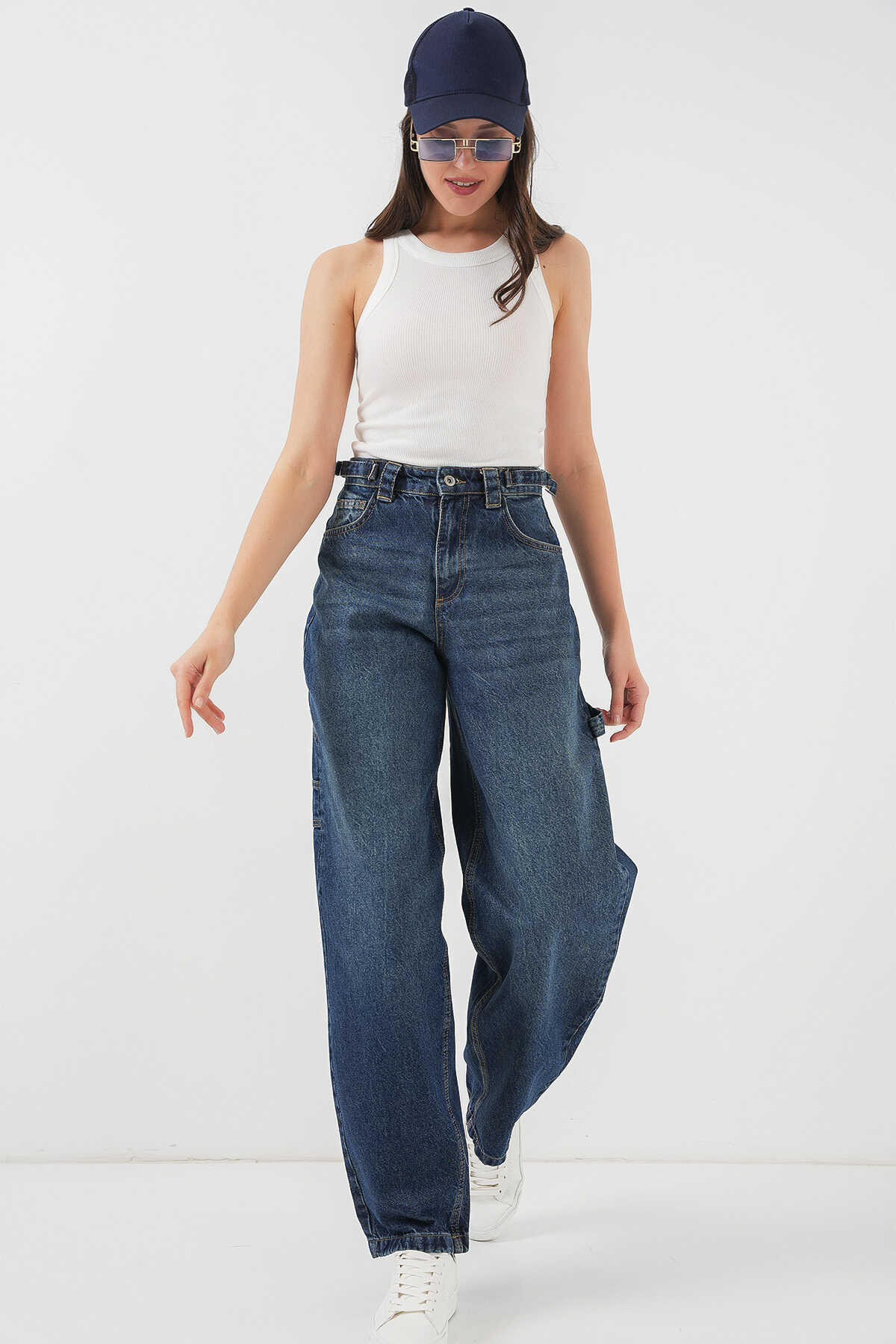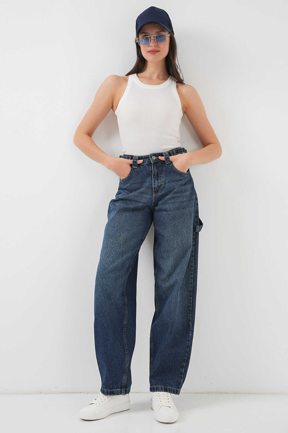 Kadın Yüksek Bel Kot Pantolon 6701 - Lacivert - Kombin