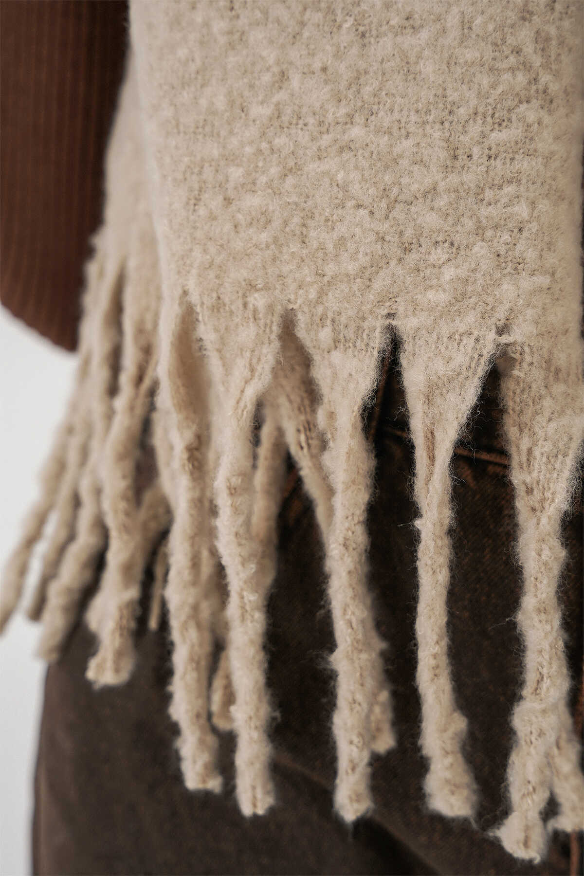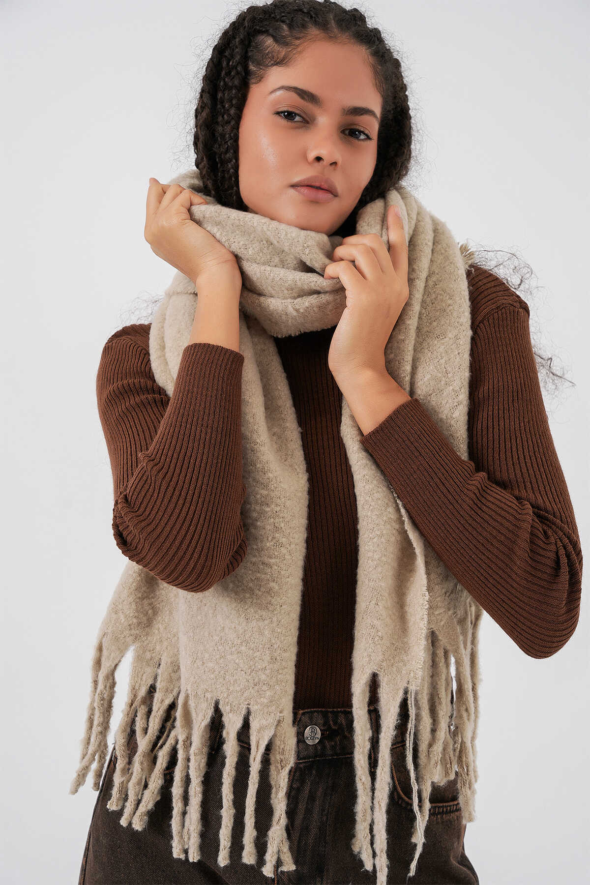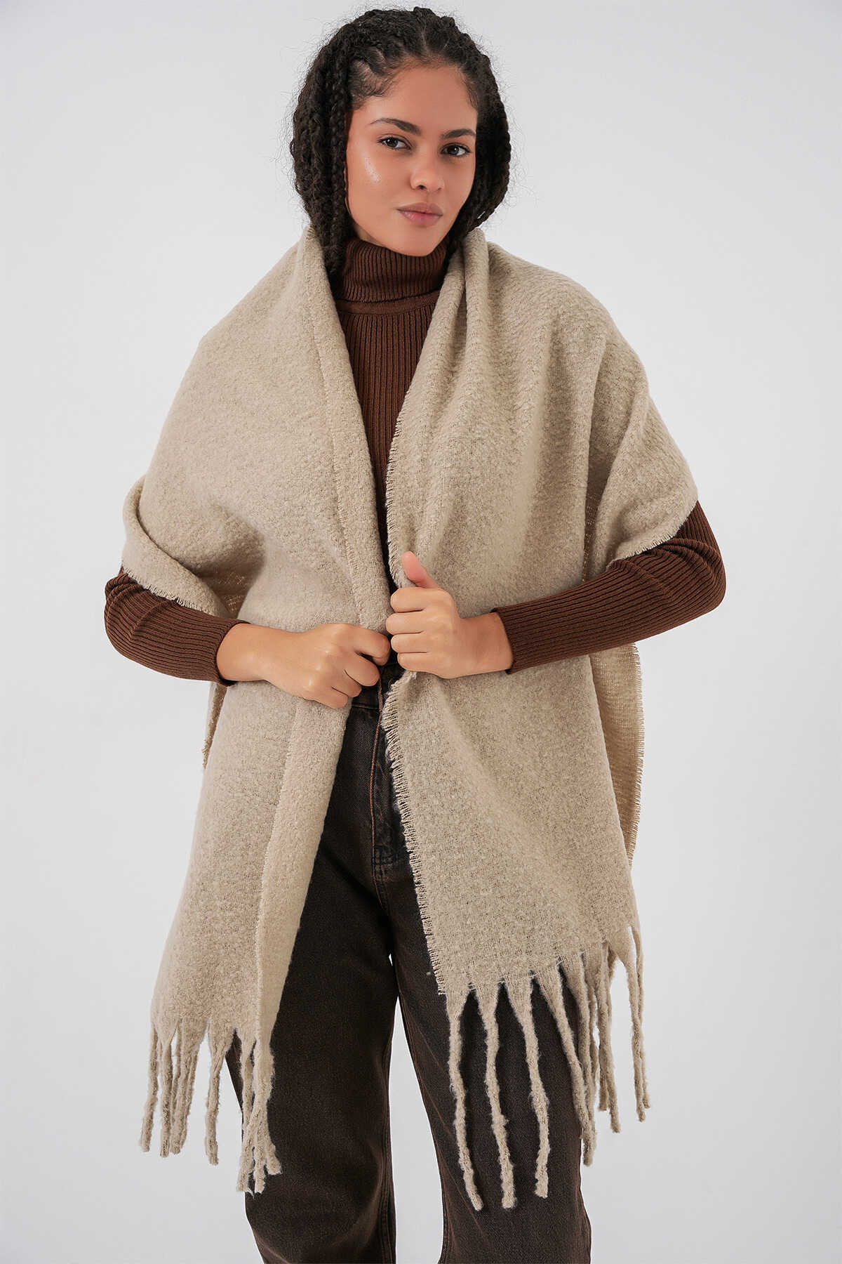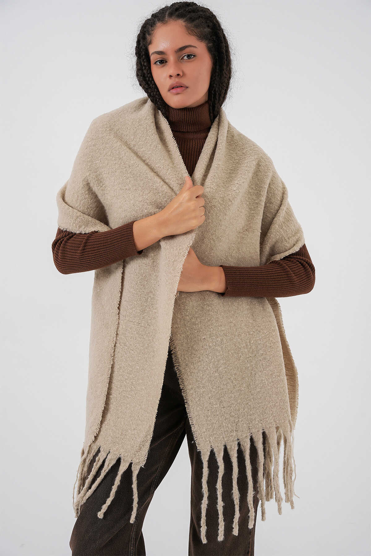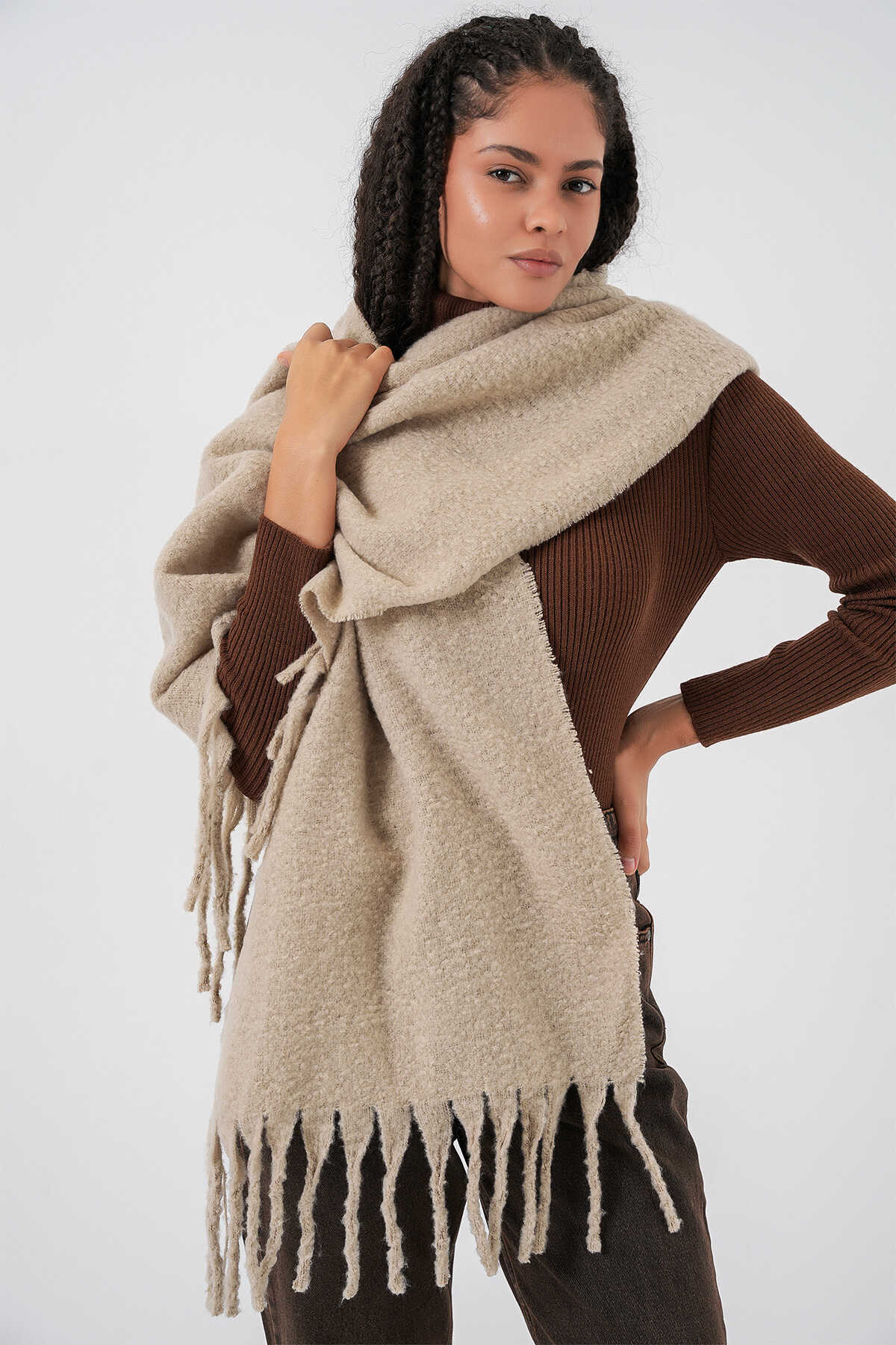 Kadın Yumuşak Dokulu Kalın Şal Atkı 15951 - A.Bej - Kombin