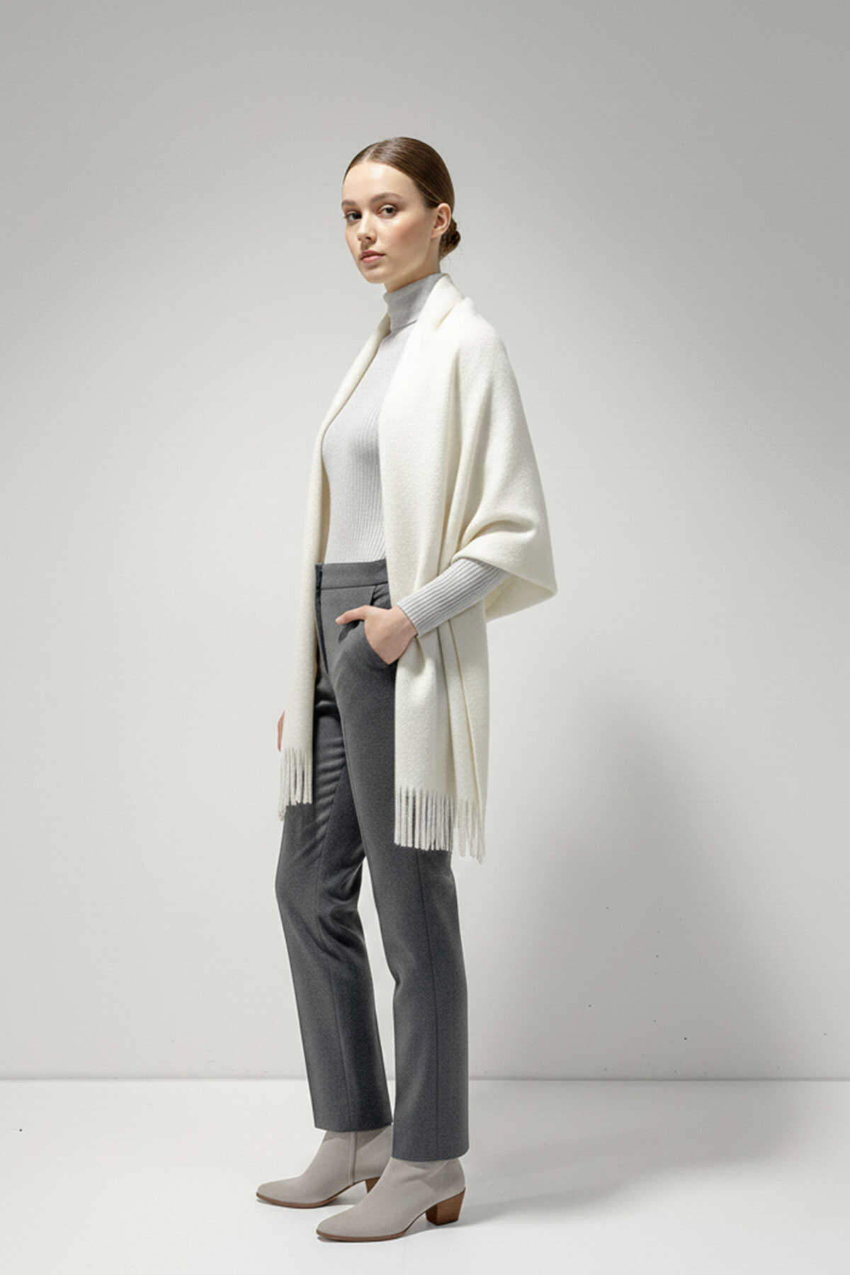 Kadın Yumuşak Dokulu Kalın Şal Atkı 15951 - B.Beyaz - Kombin