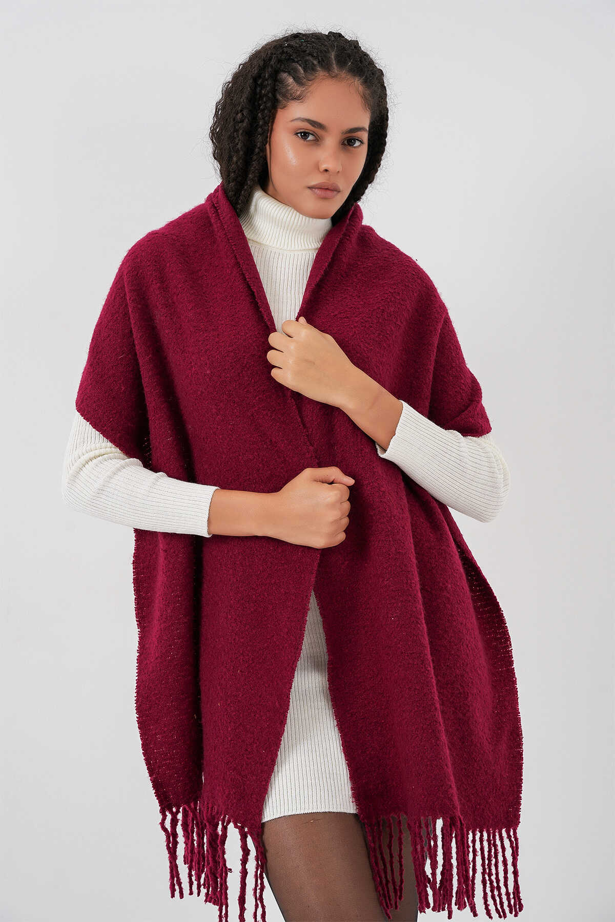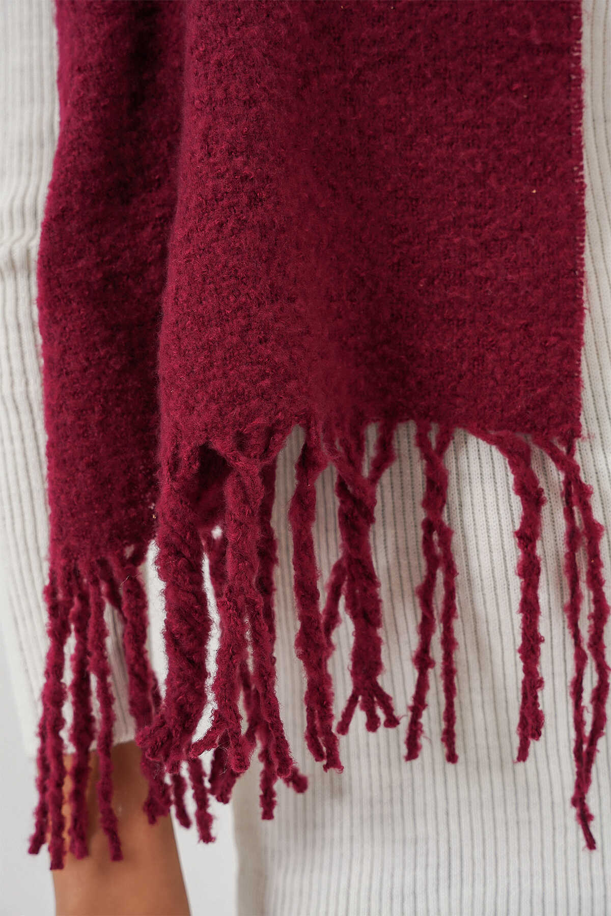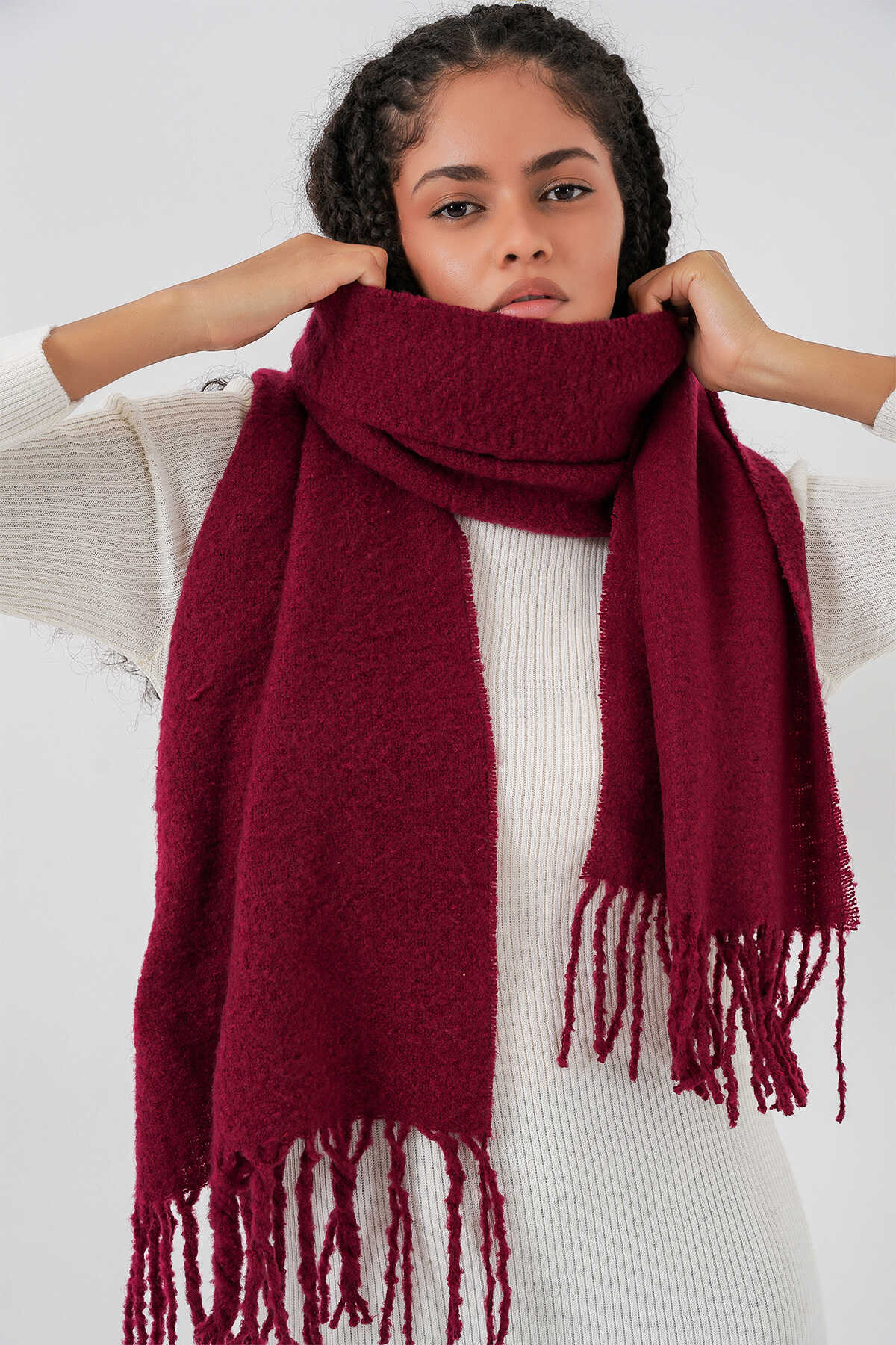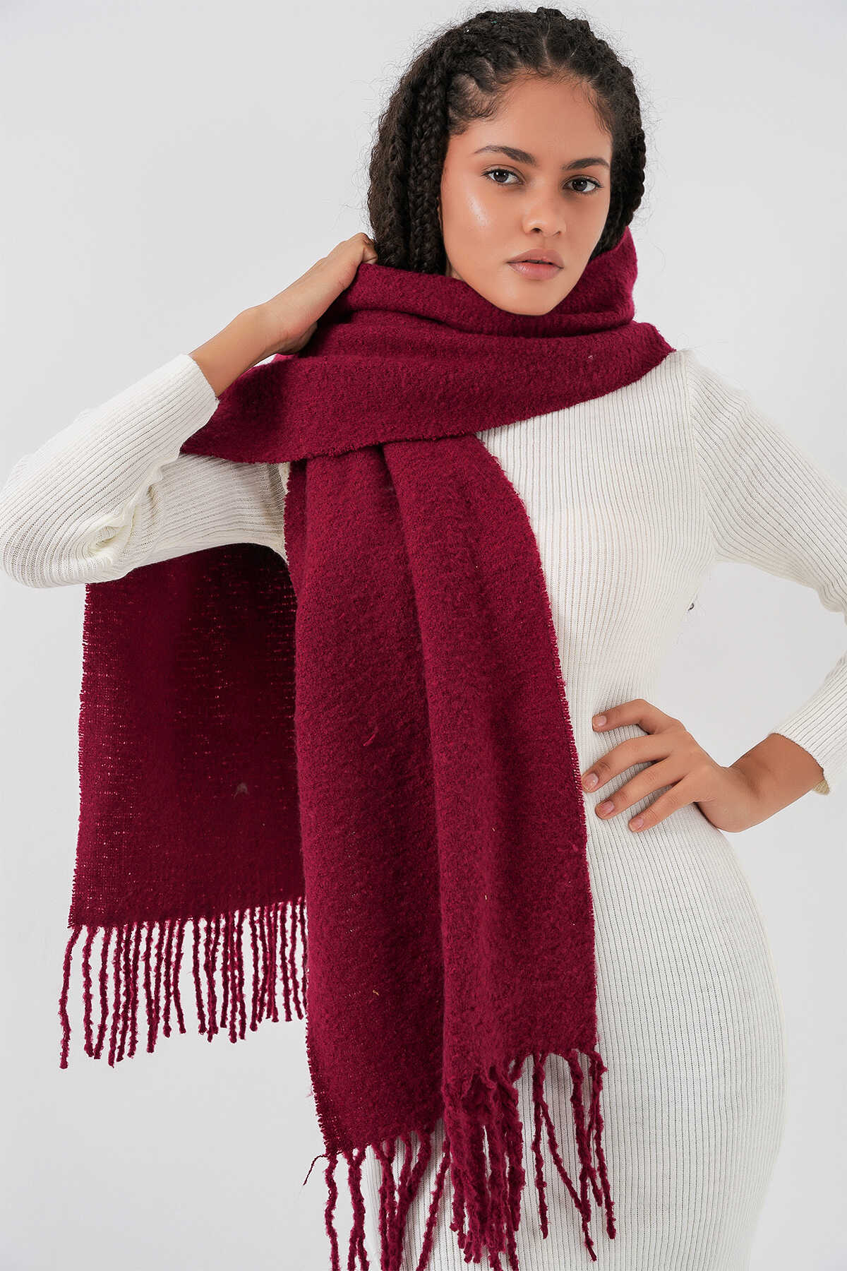 Kadın Yumuşak Dokulu Kalın Şal Atkı 15951 - Bordo - Kombin