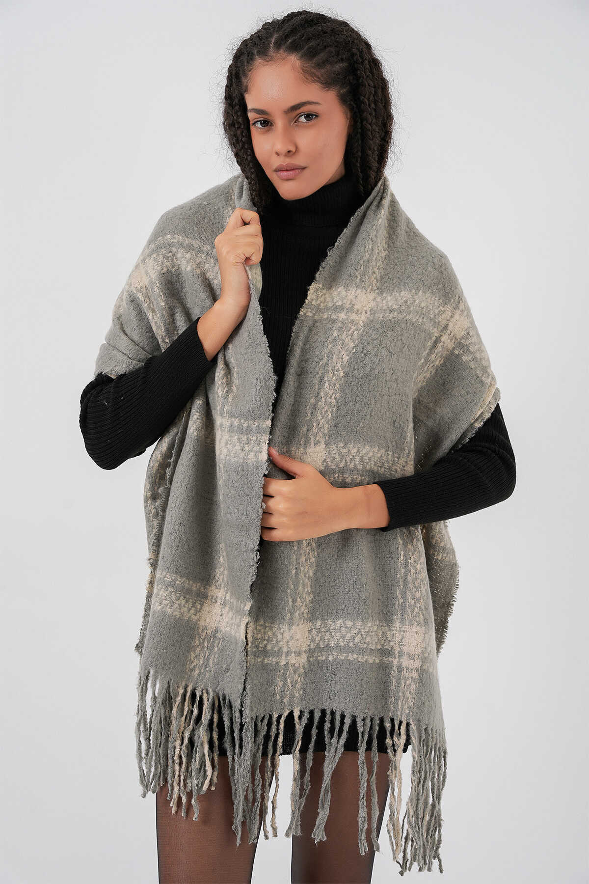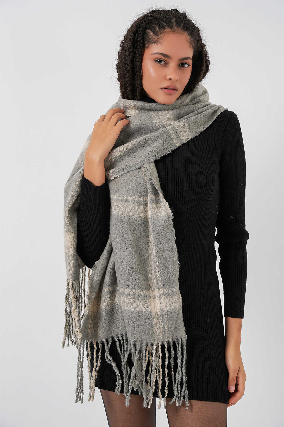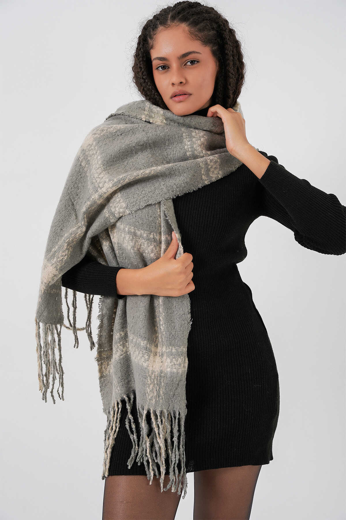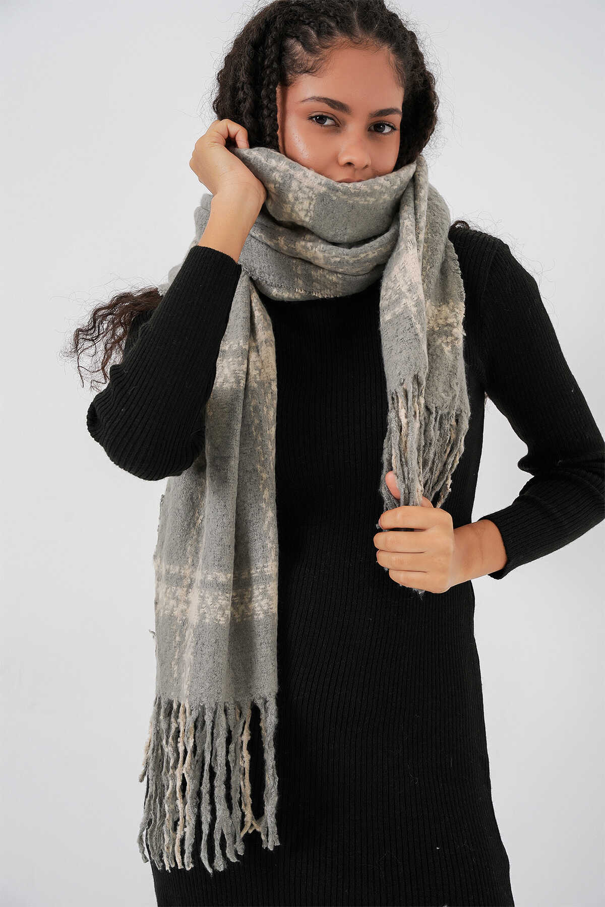Kadın Yumuşak Dokulu Kalın Şal Atkı 15951 - F.Gri - Kombin