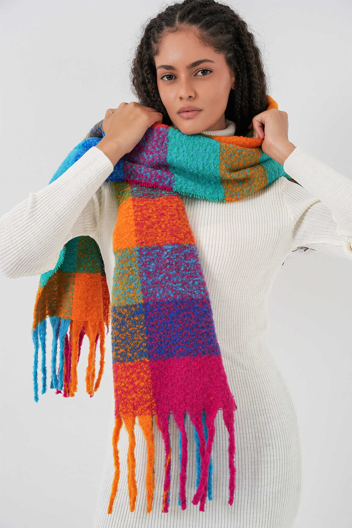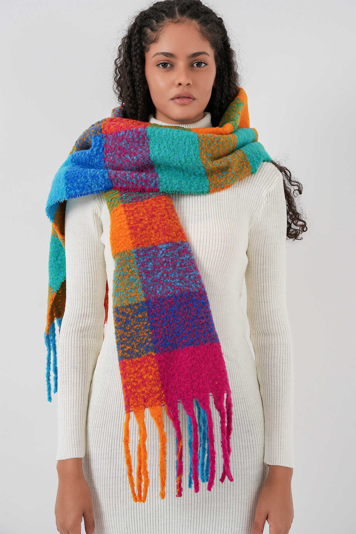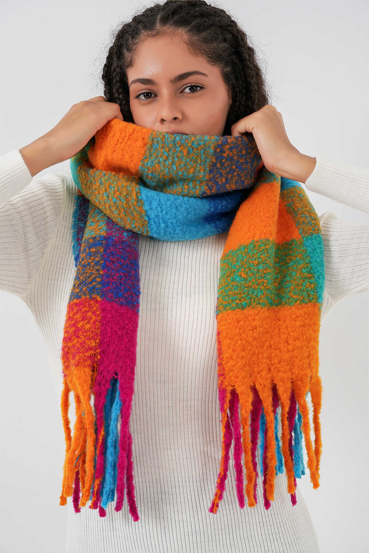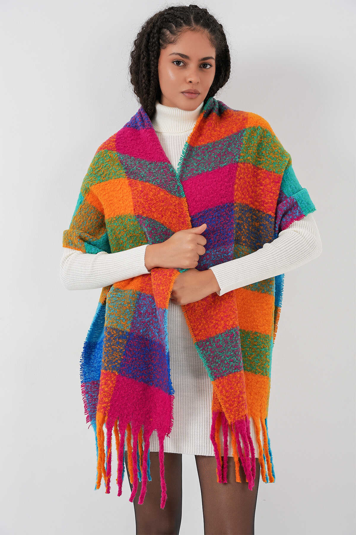 Kadın Yumuşak Dokulu Kalın Şal Atkı 15951 - Fuşya - Kombin