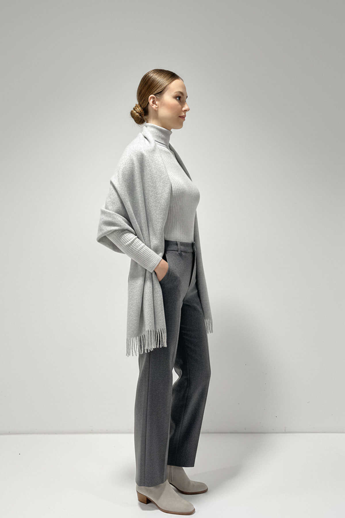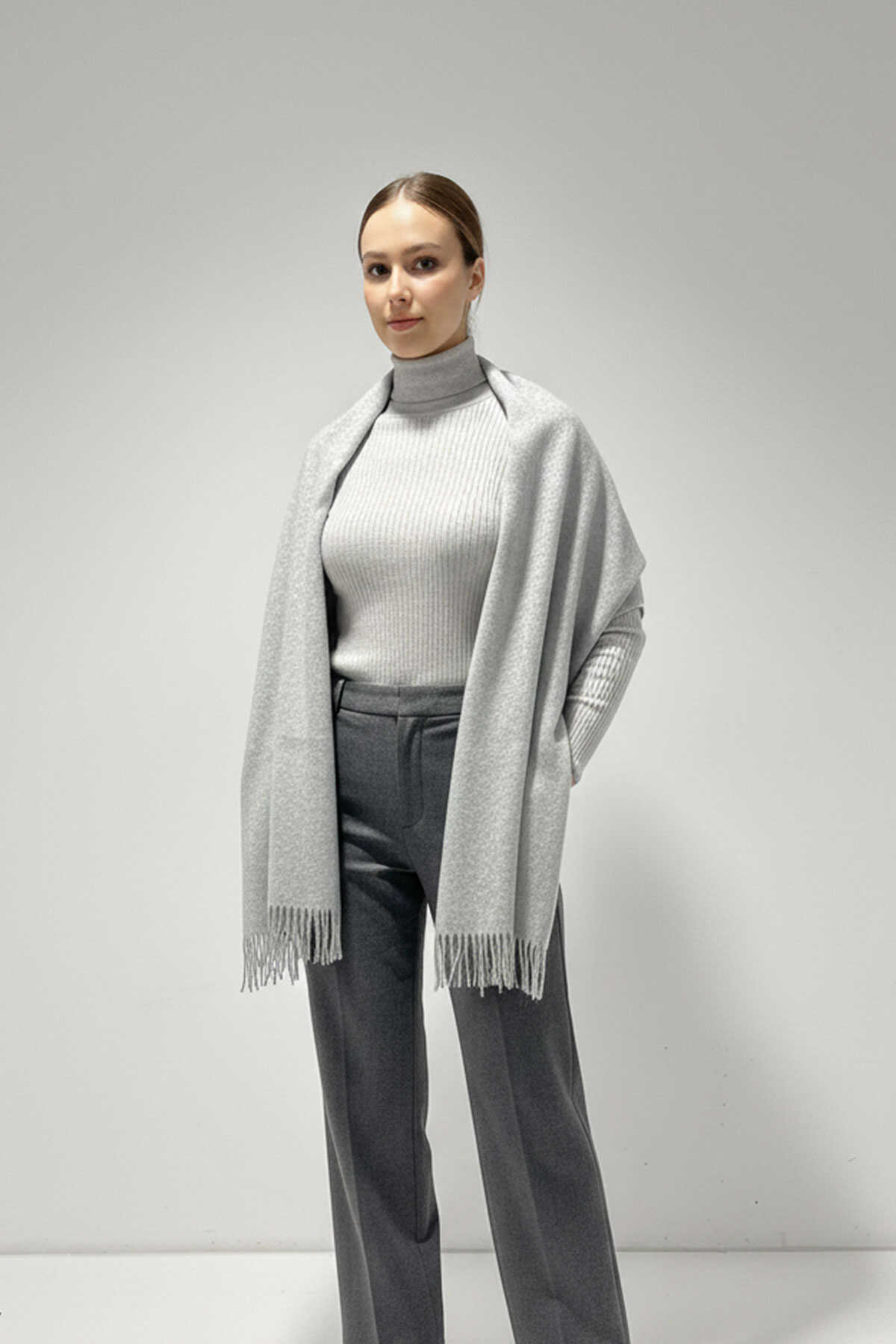 Kadın Yumuşak Dokulu Kalın Şal Atkı 15951 - Gri - Kombin