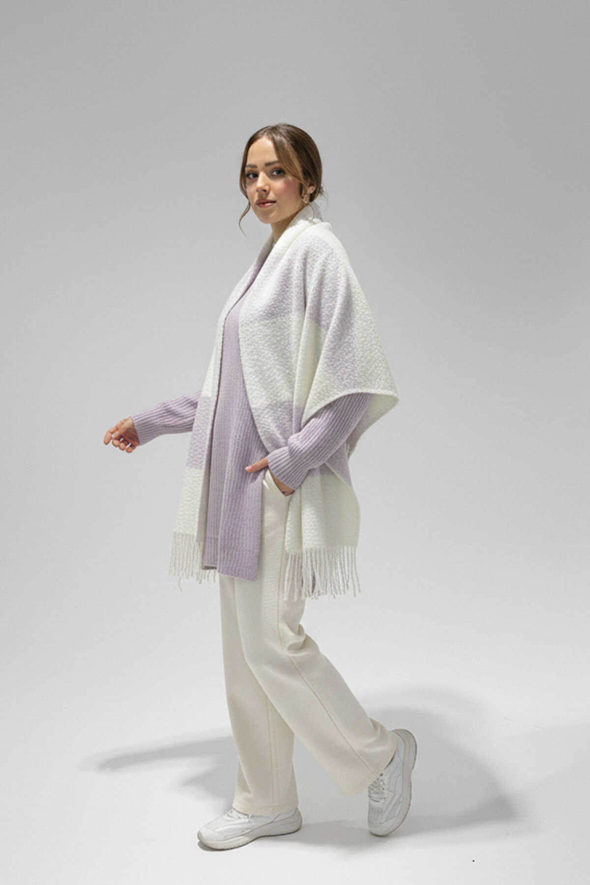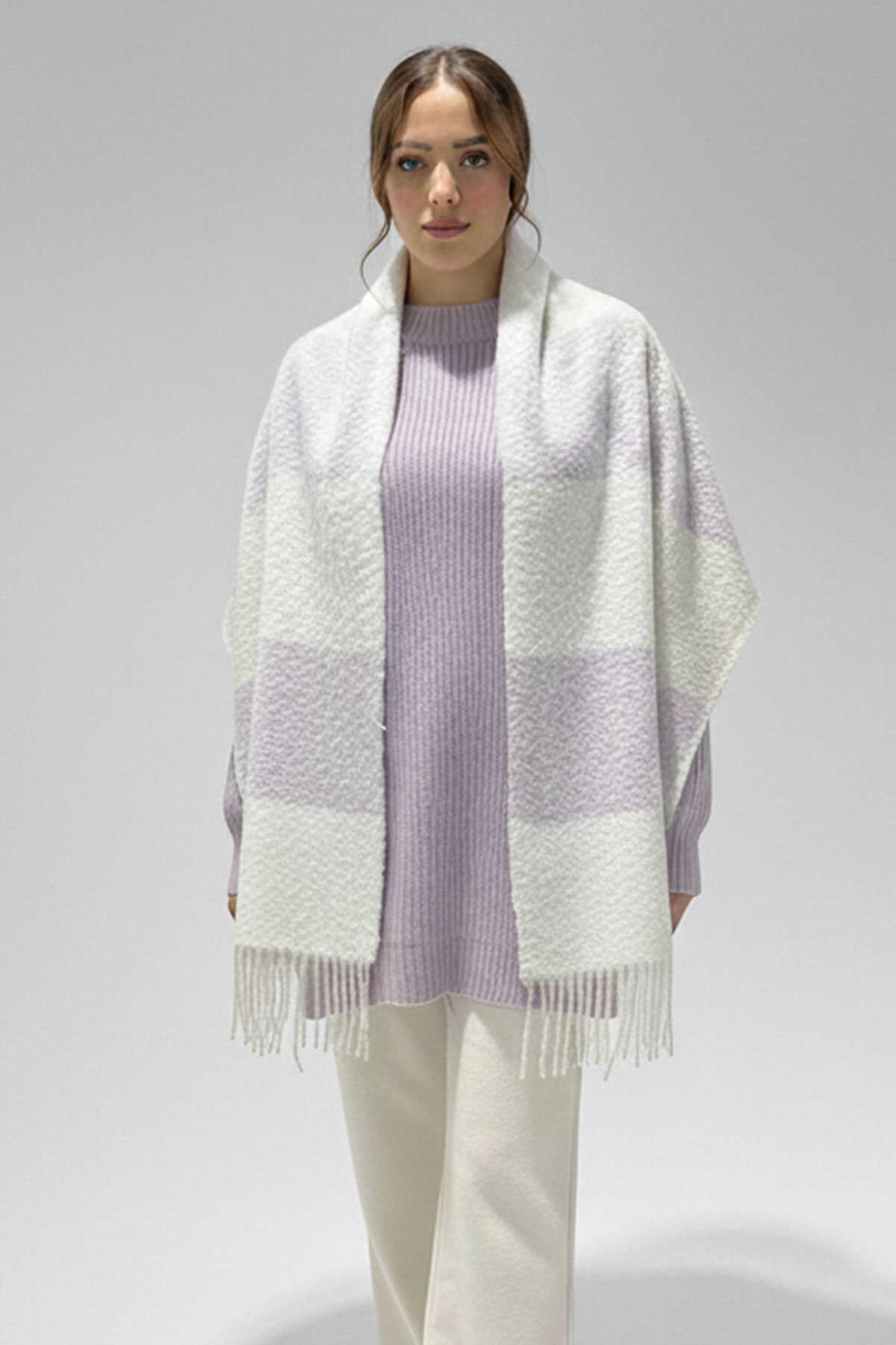 Kadın Yumuşak Dokulu Kalın Şal Atkı 15951 - Lila - Kombin