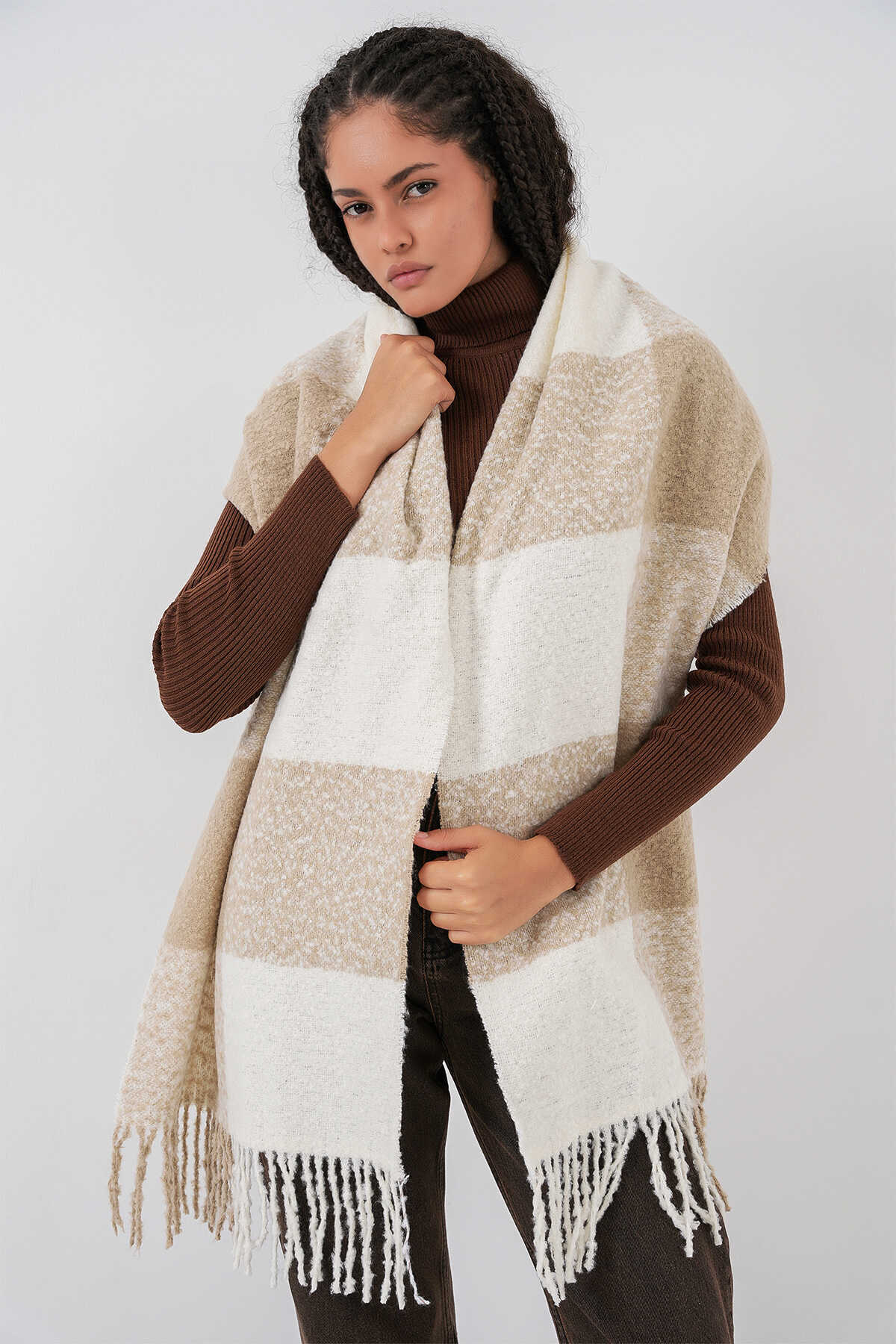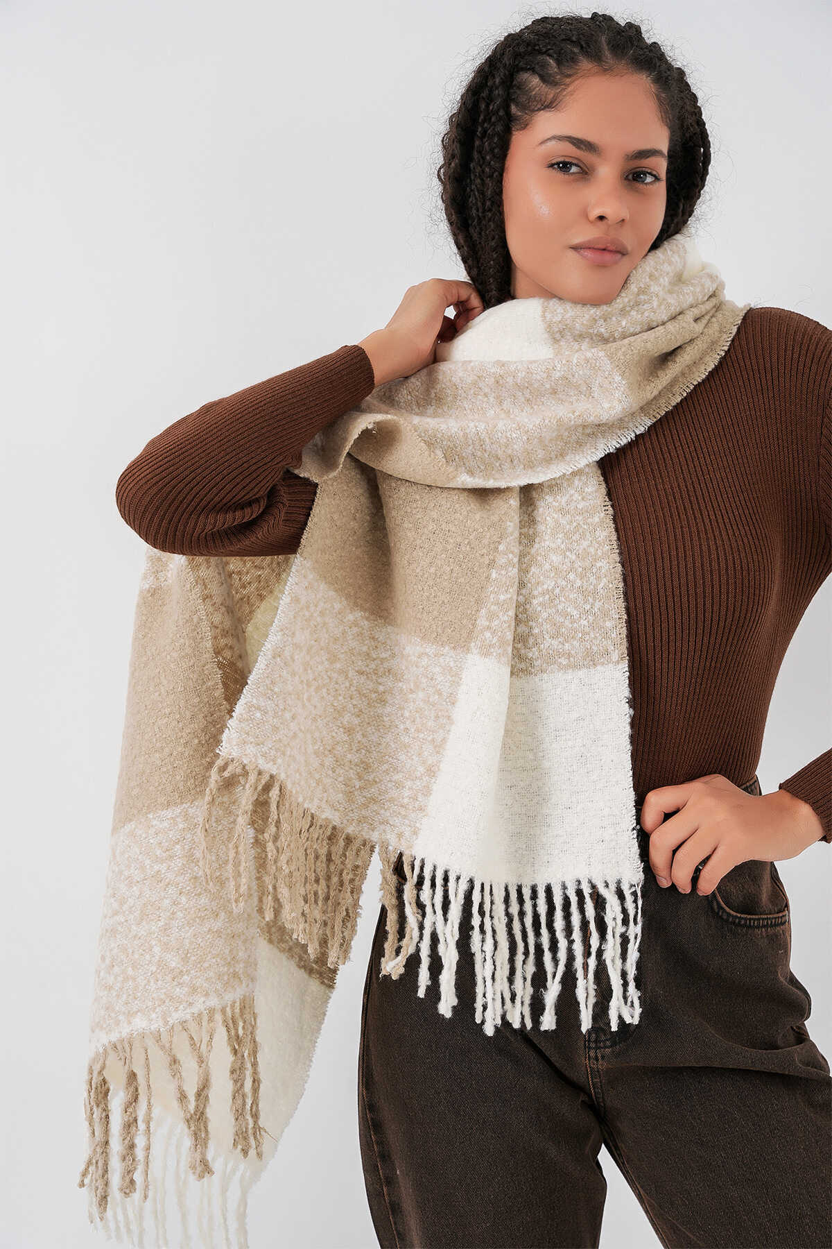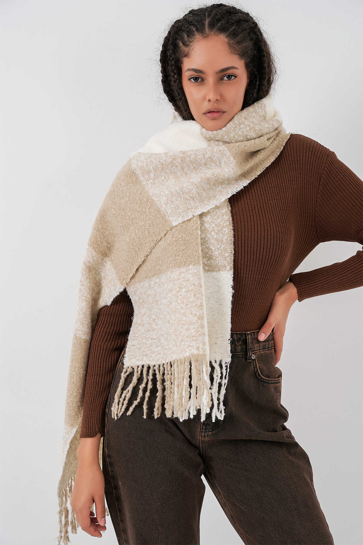 Kadın Yumuşak Dokulu Kalın Şal Atkı 15951 - Vizon - Kombin